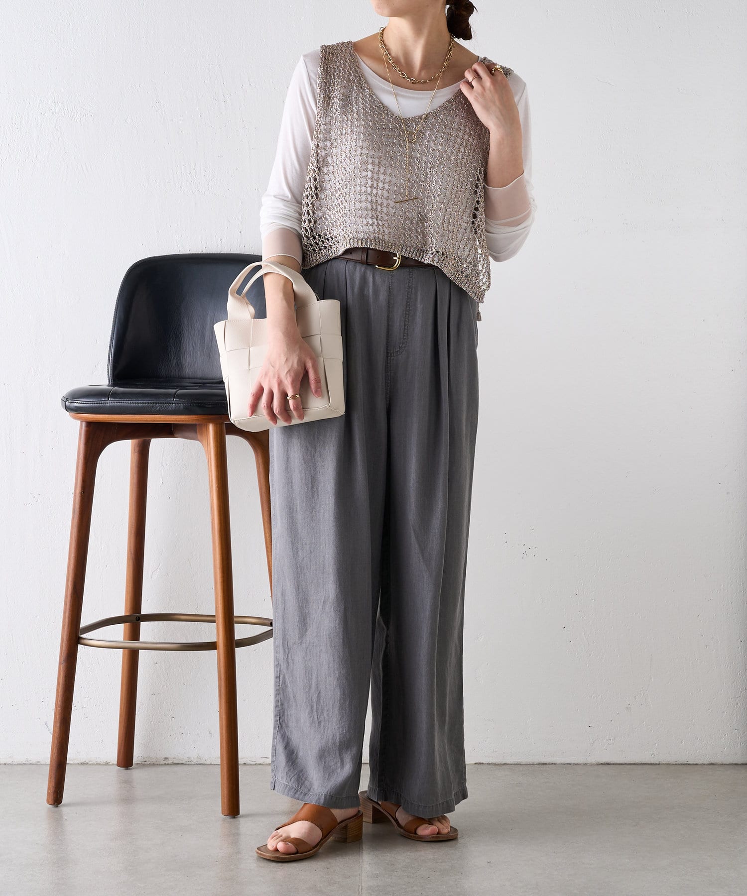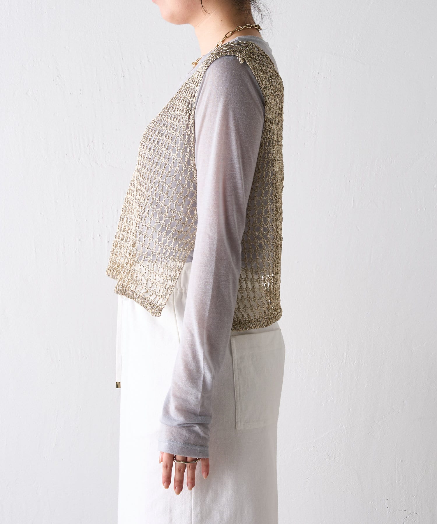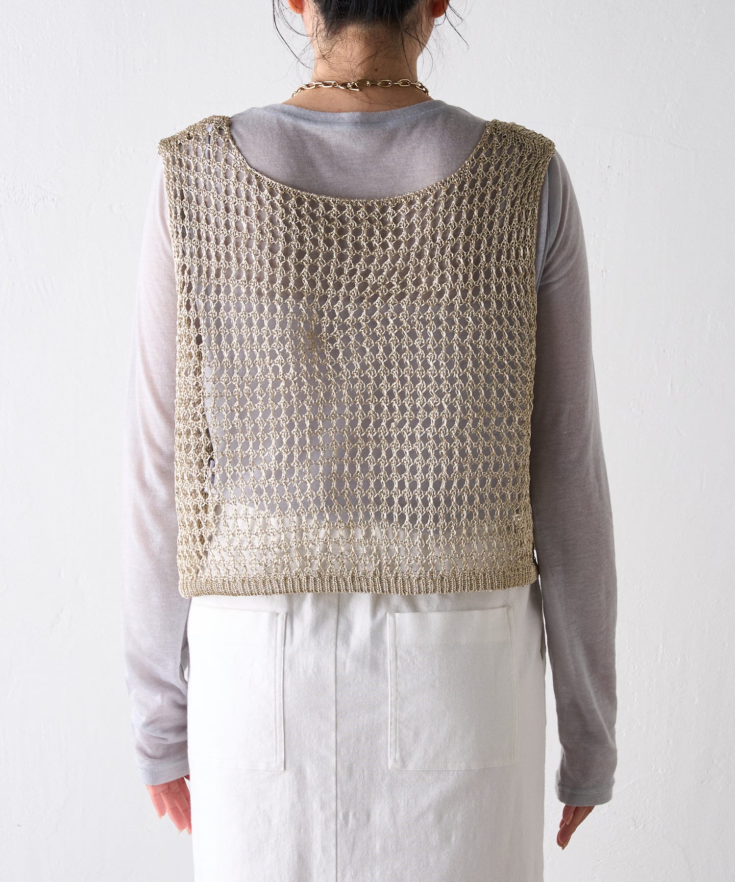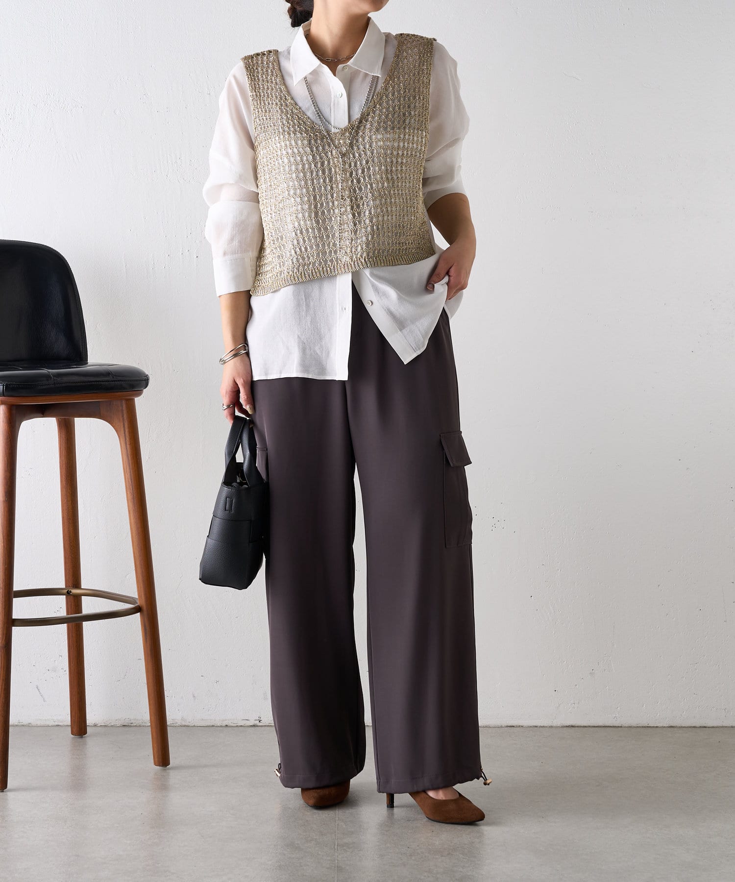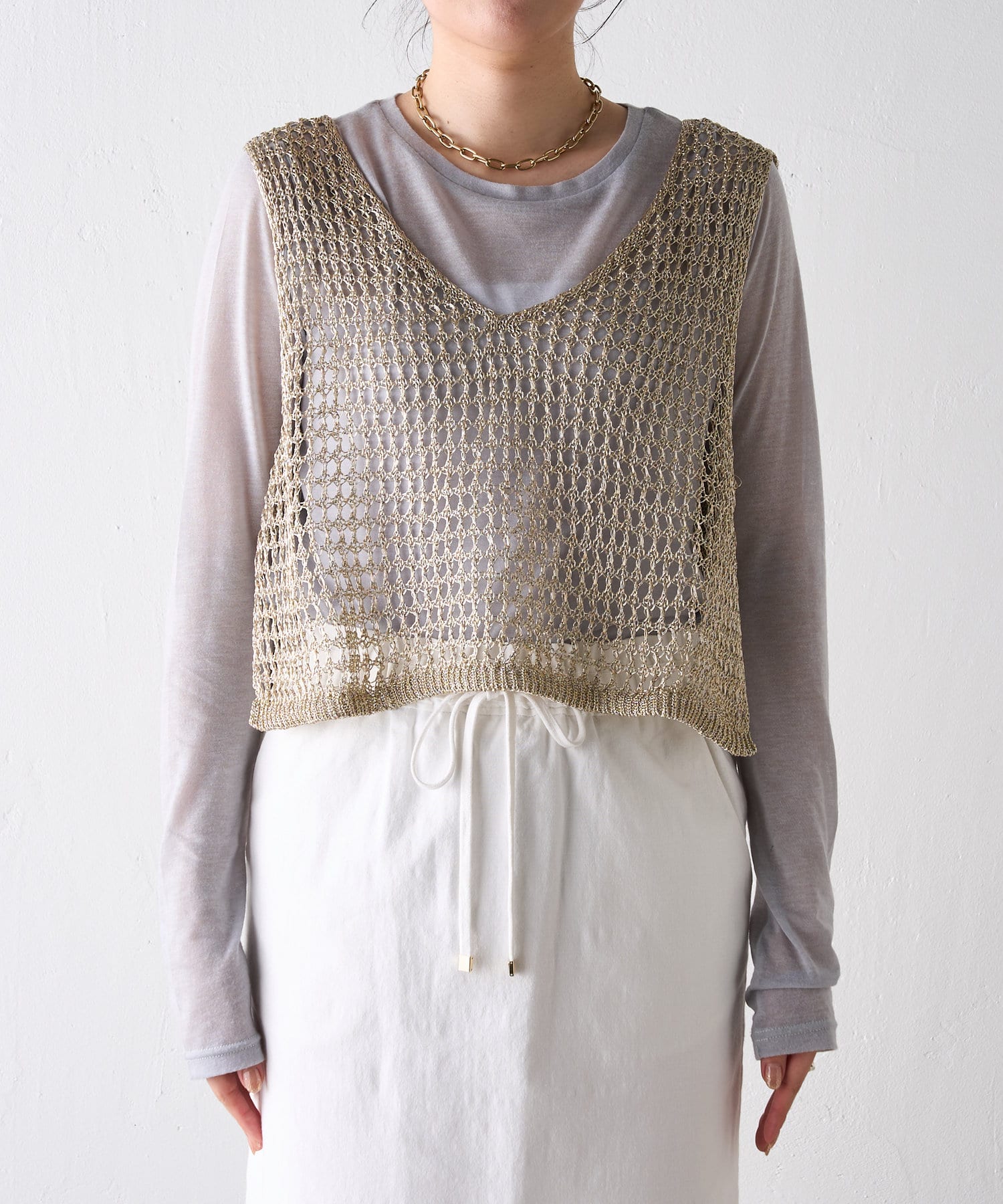 ・いつものコーデを華やかに彩る、メタリックヤーンベスト。