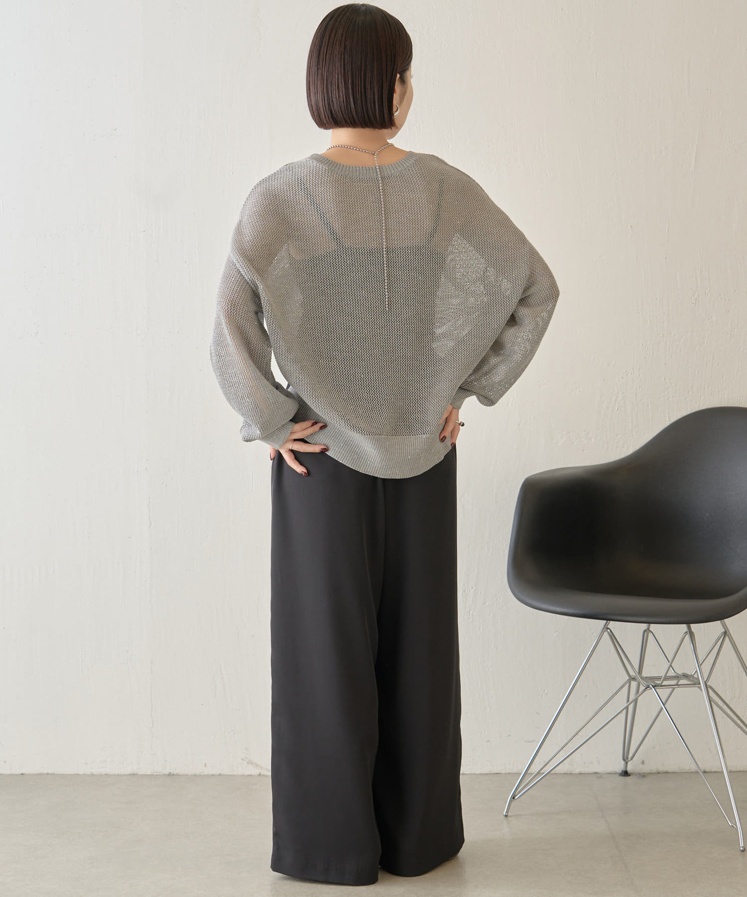 ・涼しげな透かし編みのスパンコールメッシュニット。
