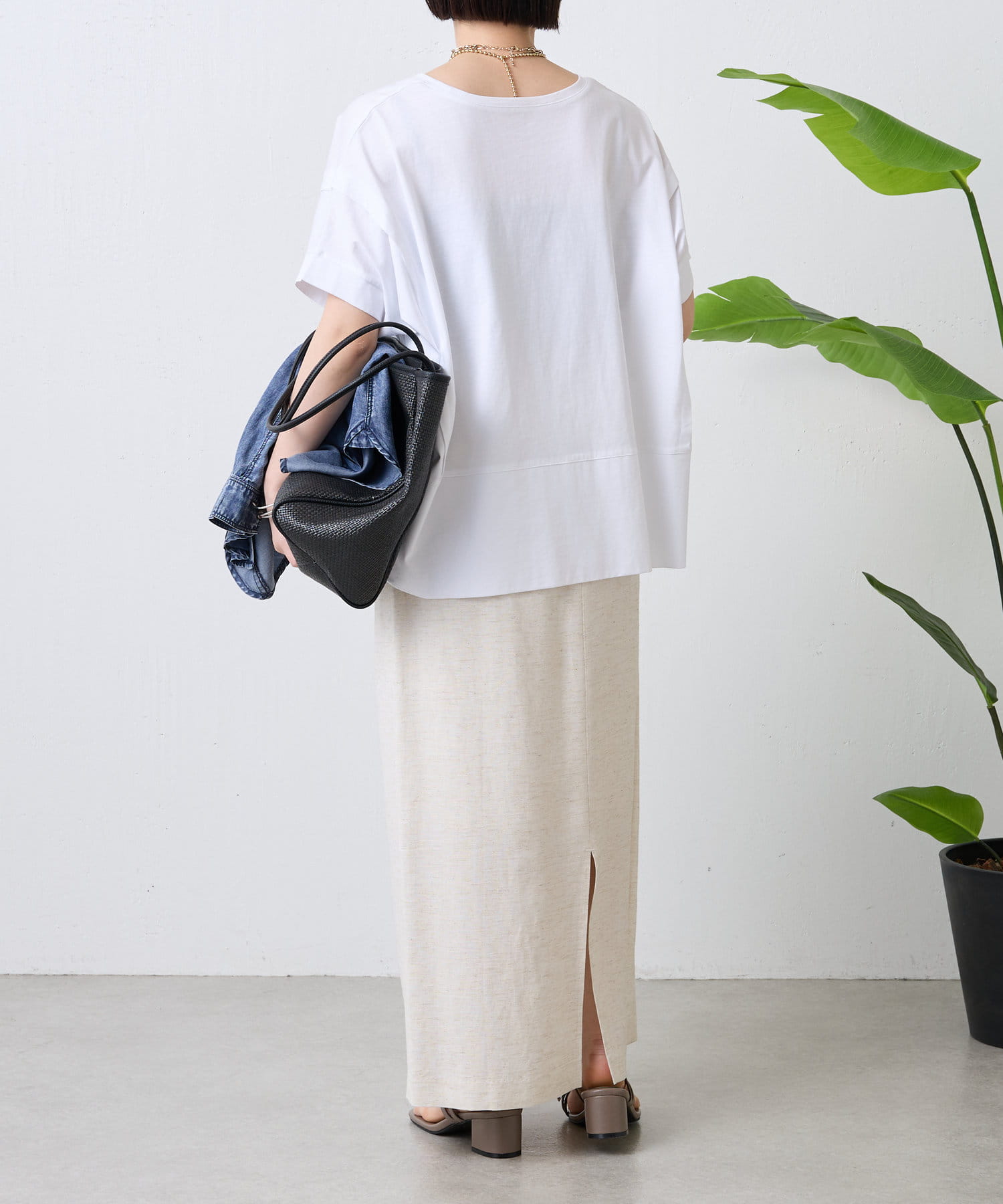 ・大胆な前後差デザインやスリットで、ベーシックながらも抜け感のある1枚。