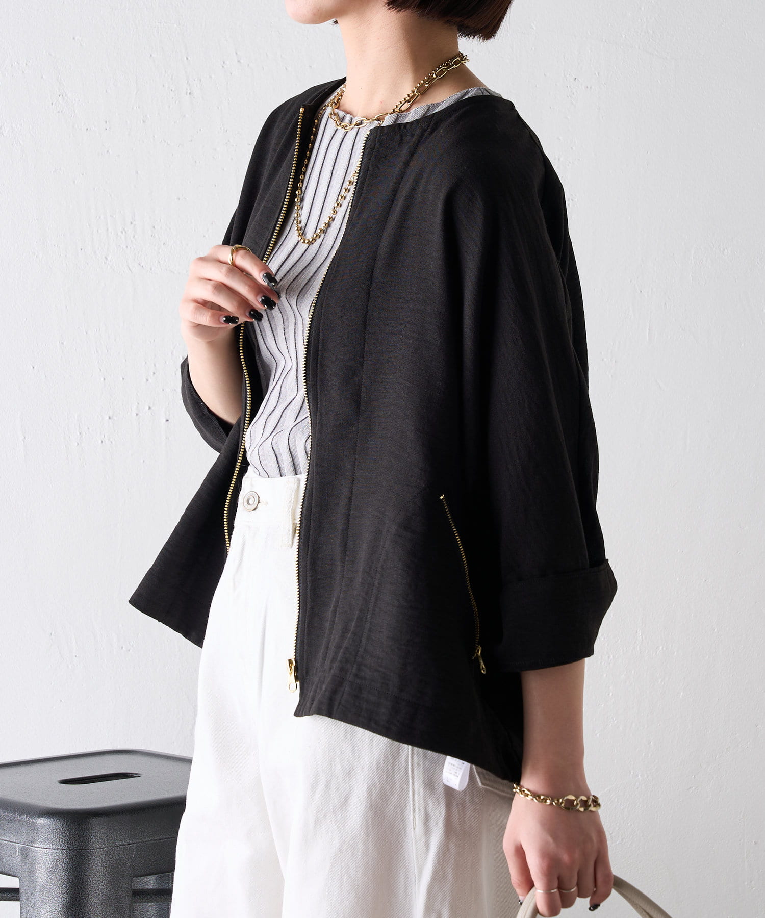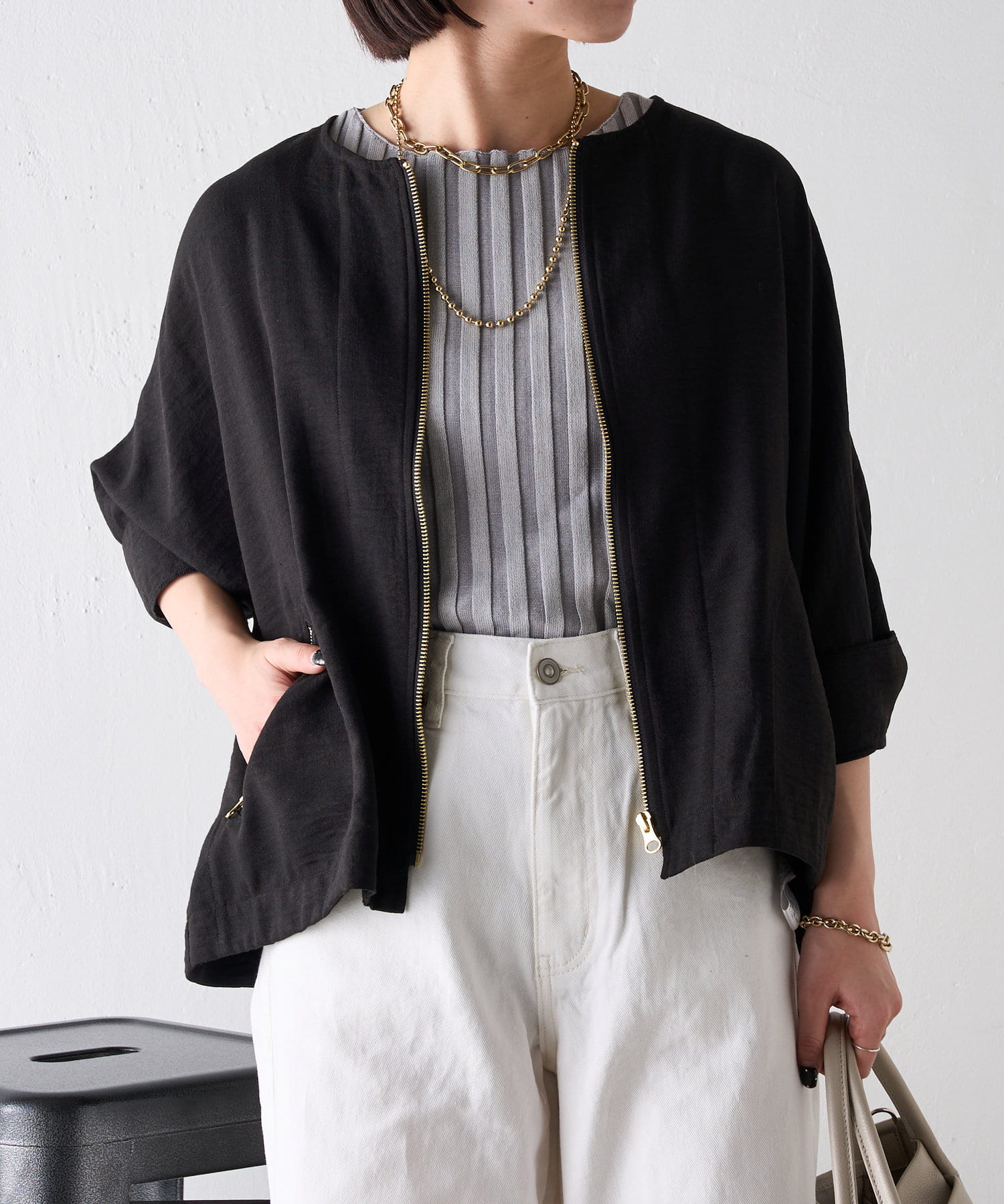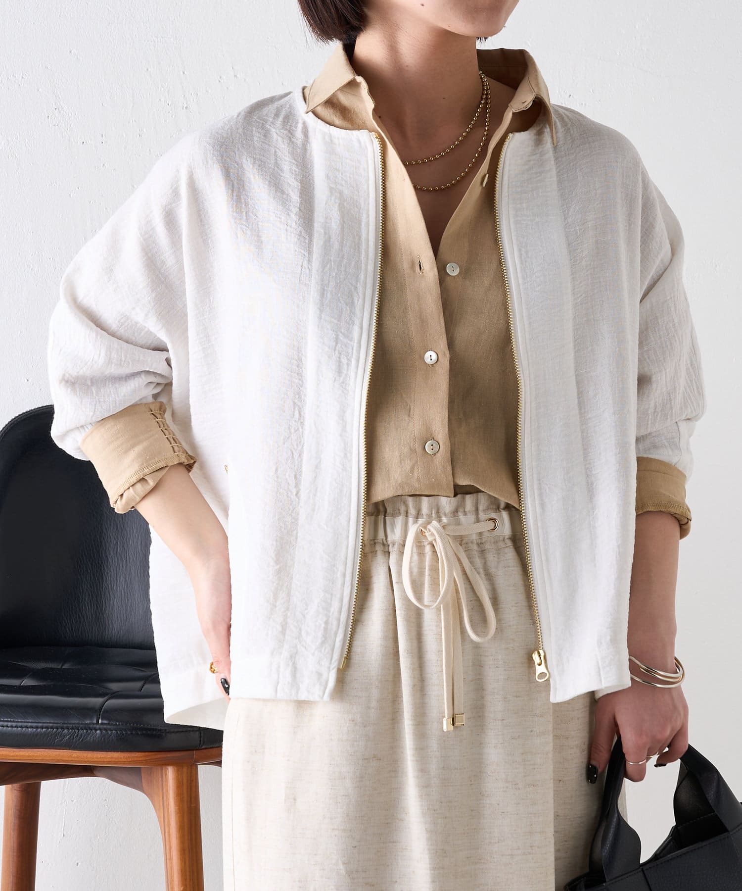 ・清涼感のある素材なので、夏でも着用可能。オールシーズン着回しの効く一枚です。
