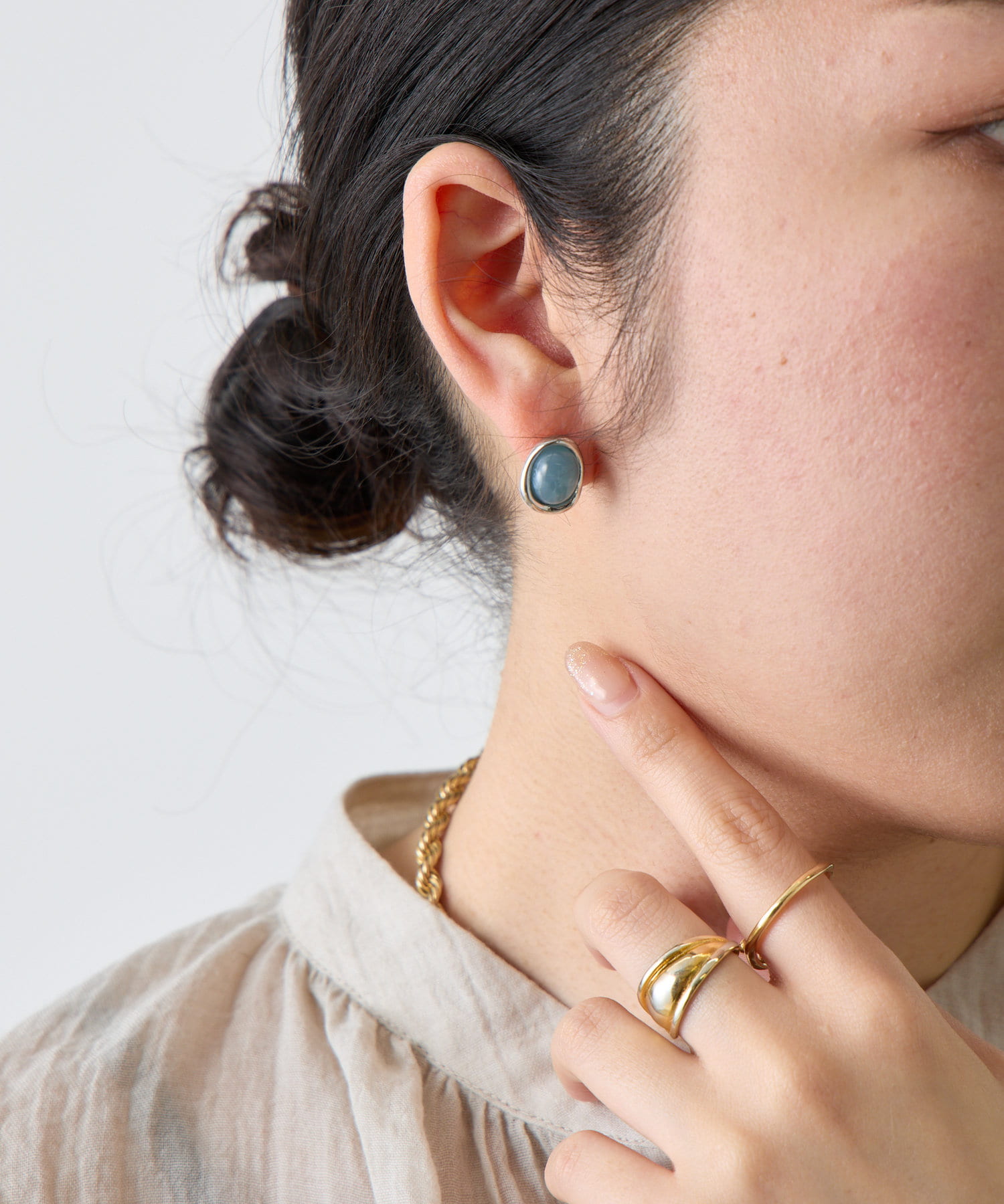 ・ストーンとシルバーのコンビがお顔周りに華やかさをプラスしてくれます。