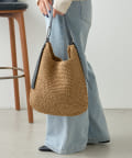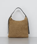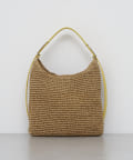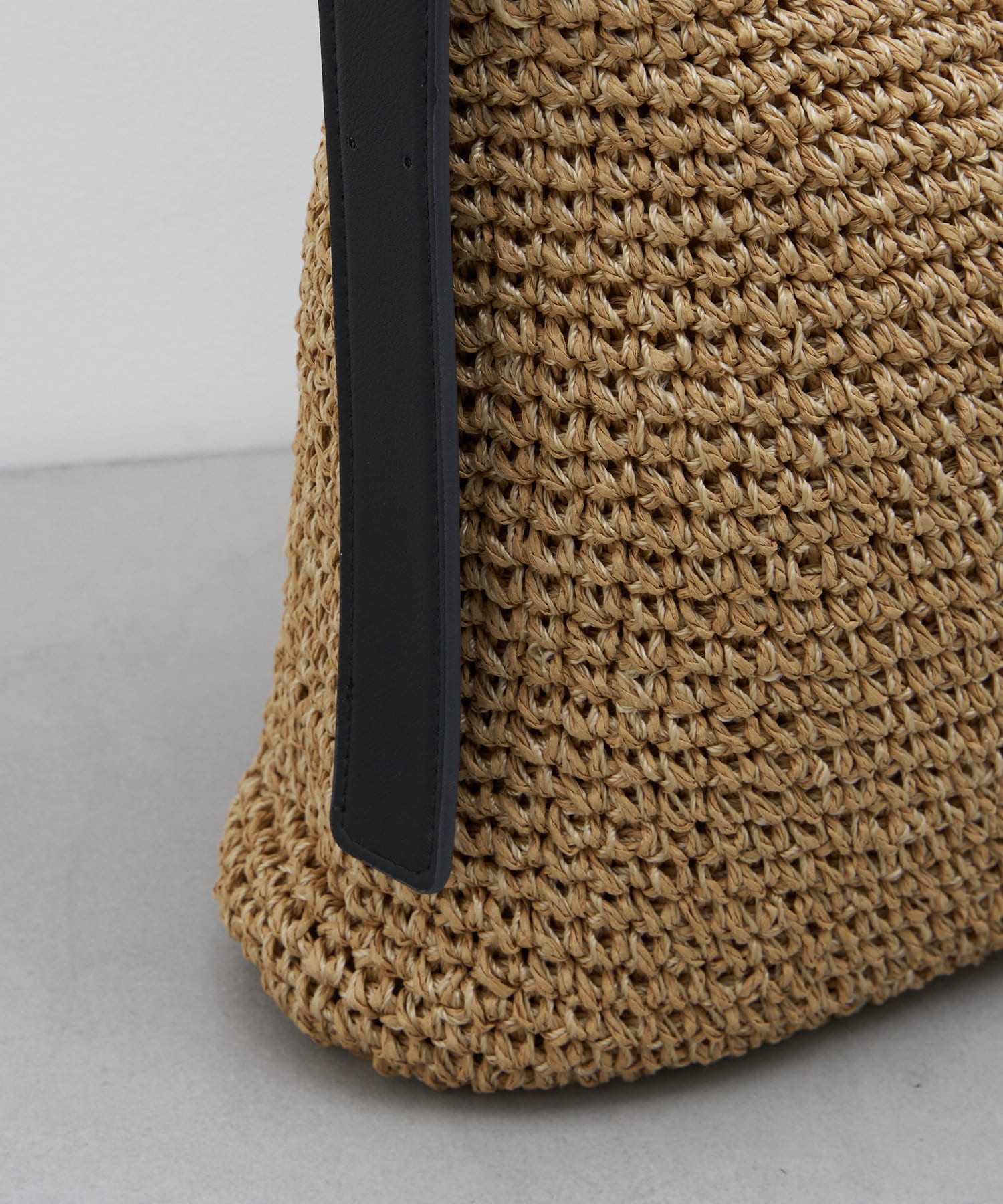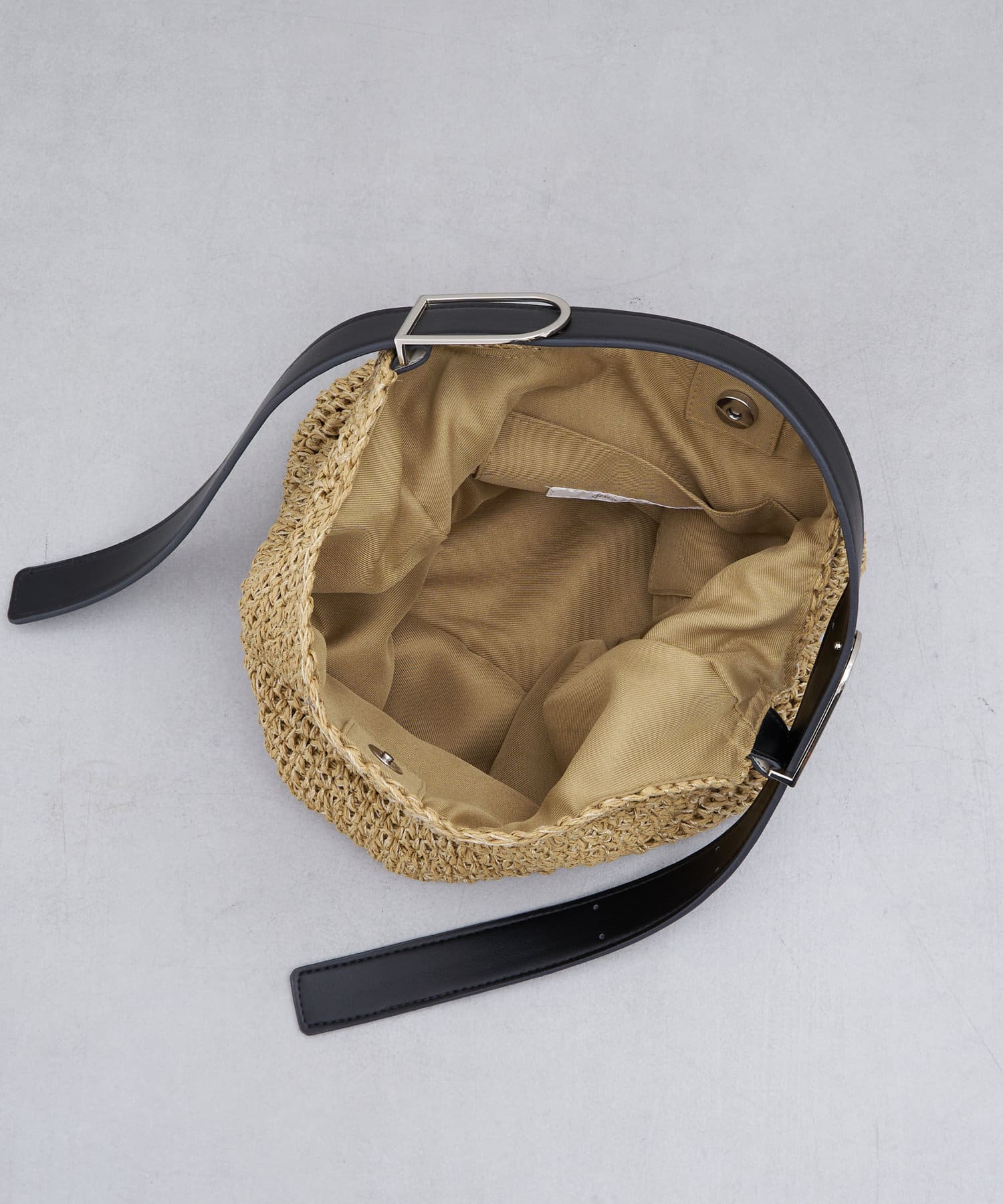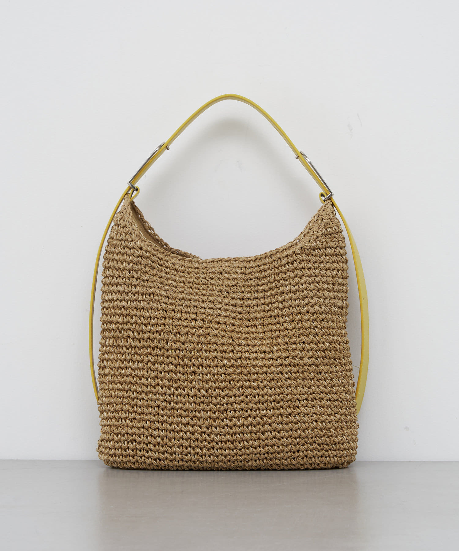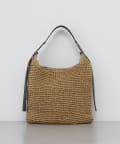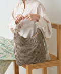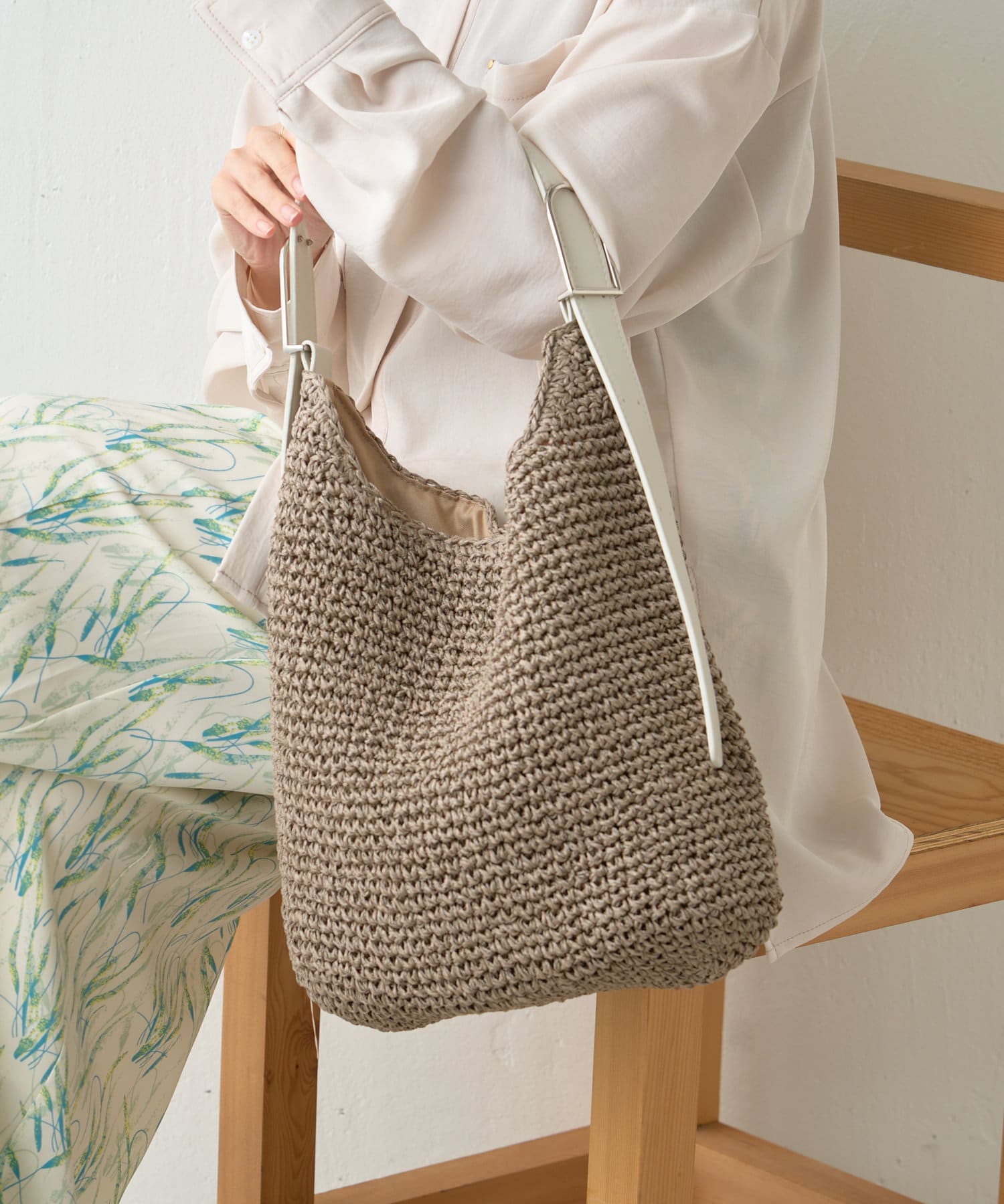 ・持ち手のレザー生地の上質な風合いが魅力的なバッグ。
