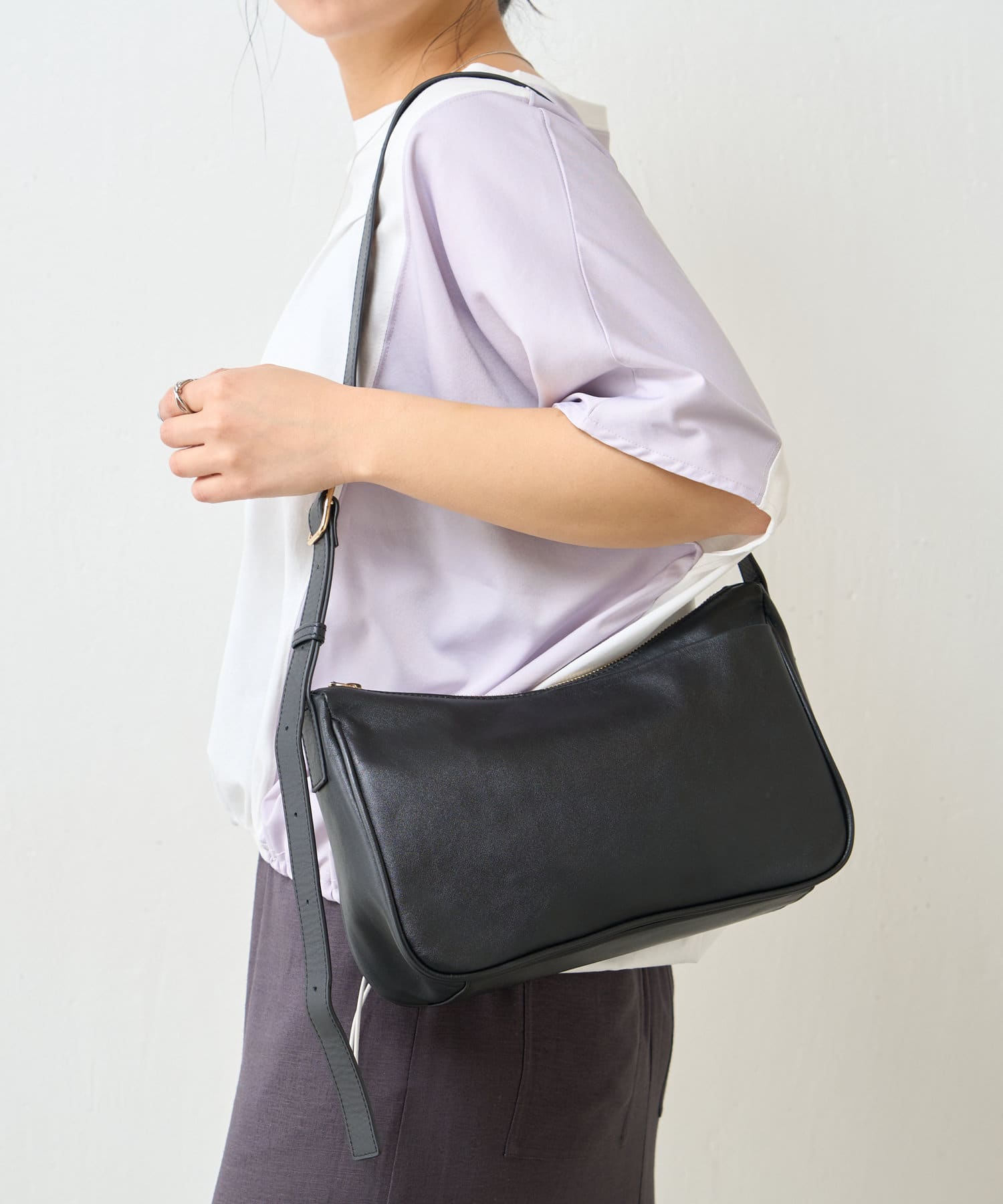 ・コンパクトなサイズ感が特徴的で、柔らかなフォルムが上品な印象を与えてくれる本革バッグ。