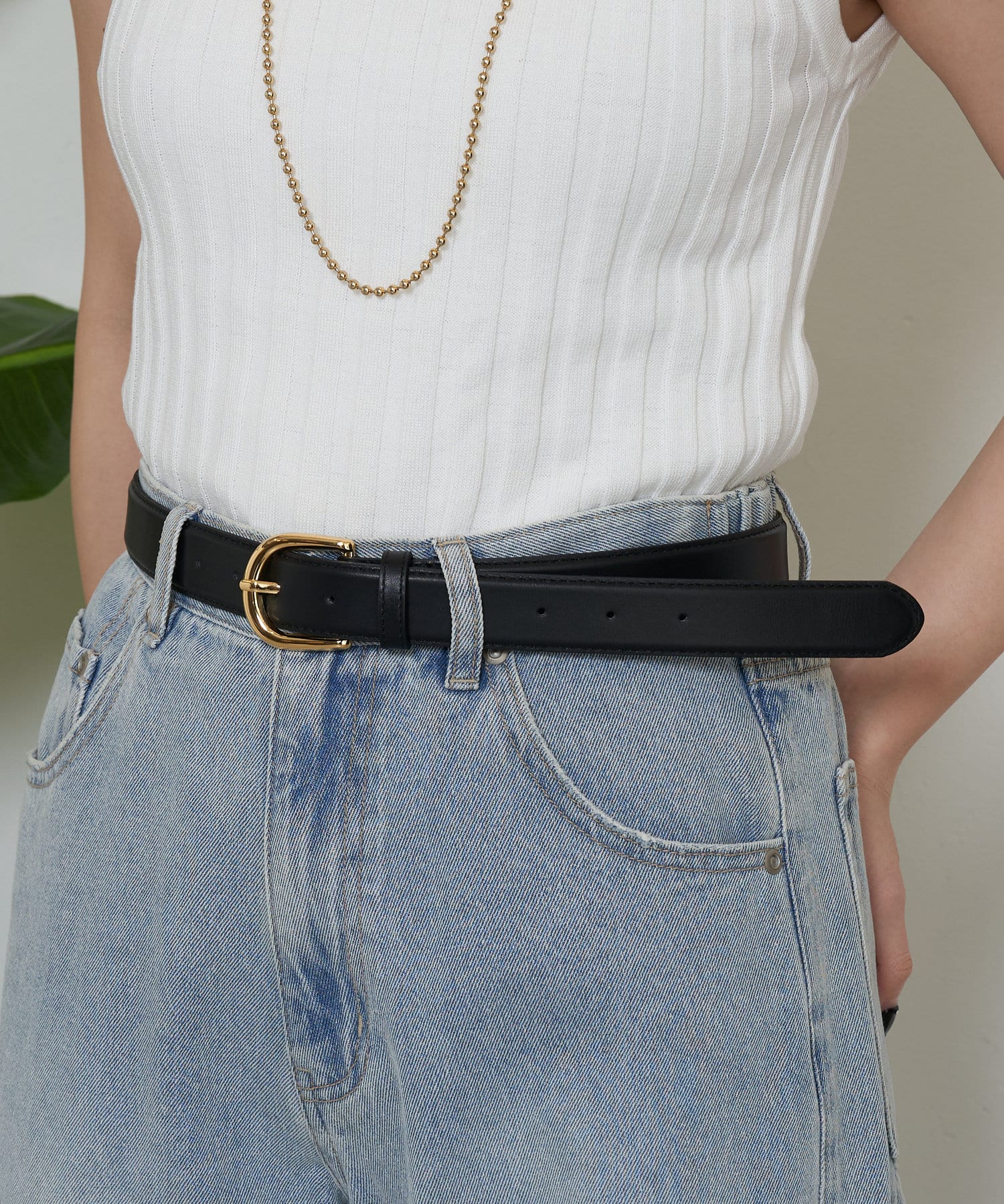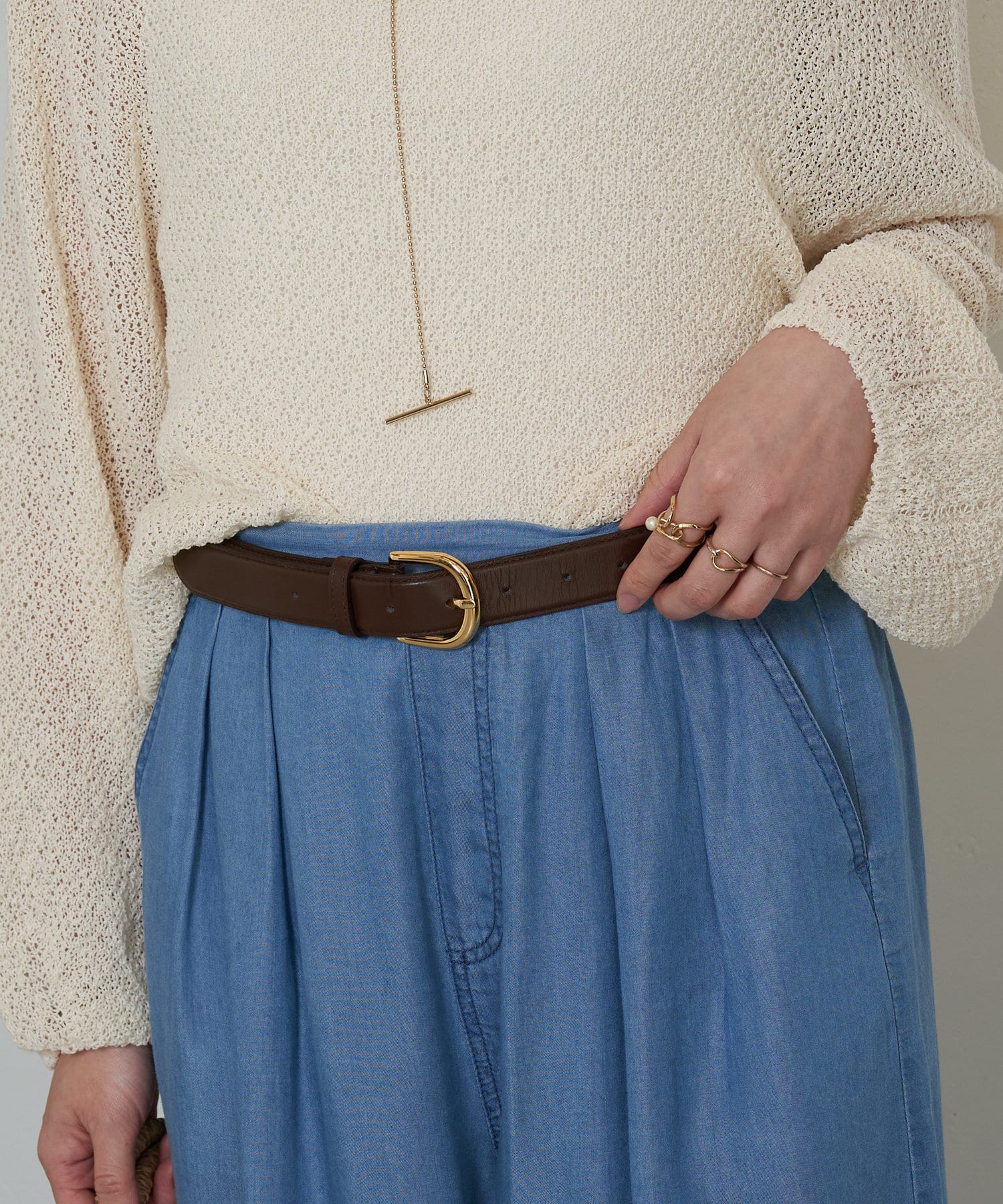 ・ゴールドのバックルが上品な印象のプレーンベルト。