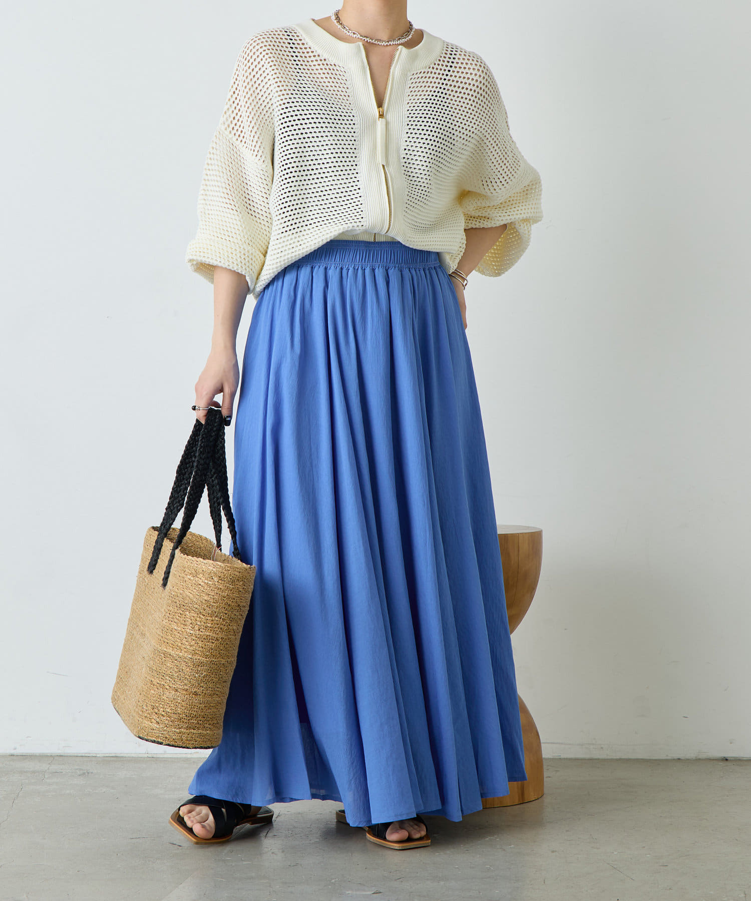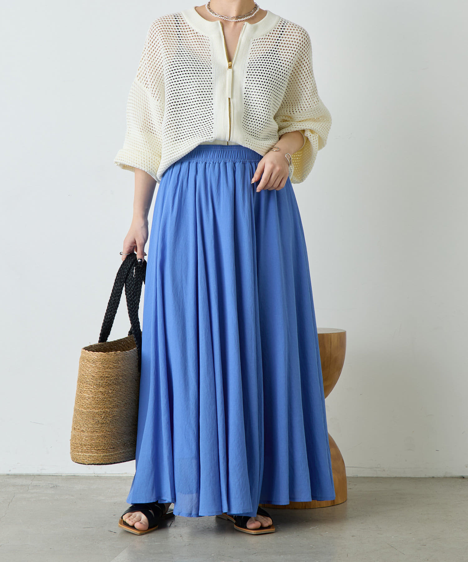 ・華やかなカラーが夏のコーディネートを彩る大人のロングスカート。