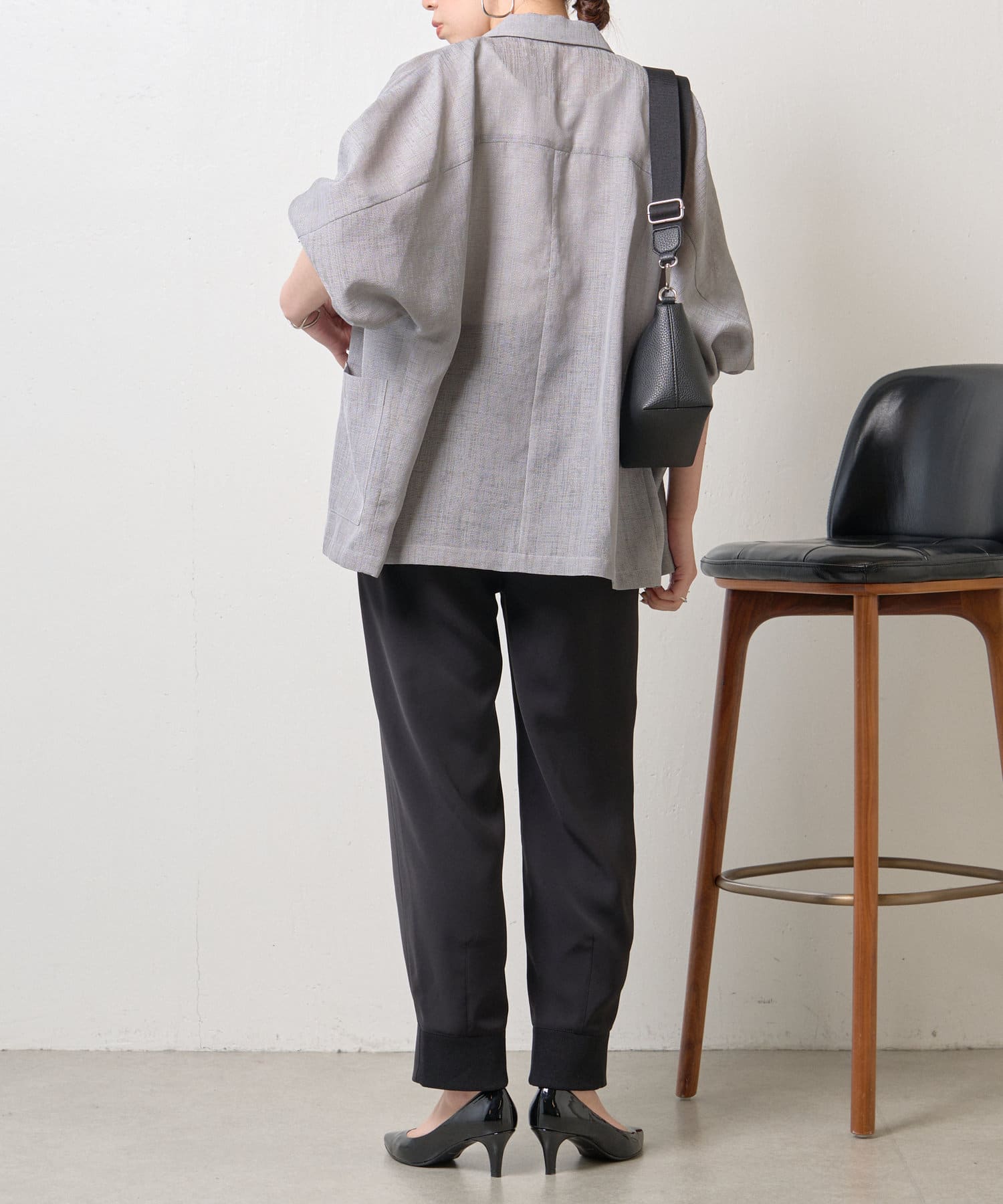 ・トロミ感ある素材と裾部分のタックデザインがカジュアル見えしすぎず、上品な印象を叶えてくれます。