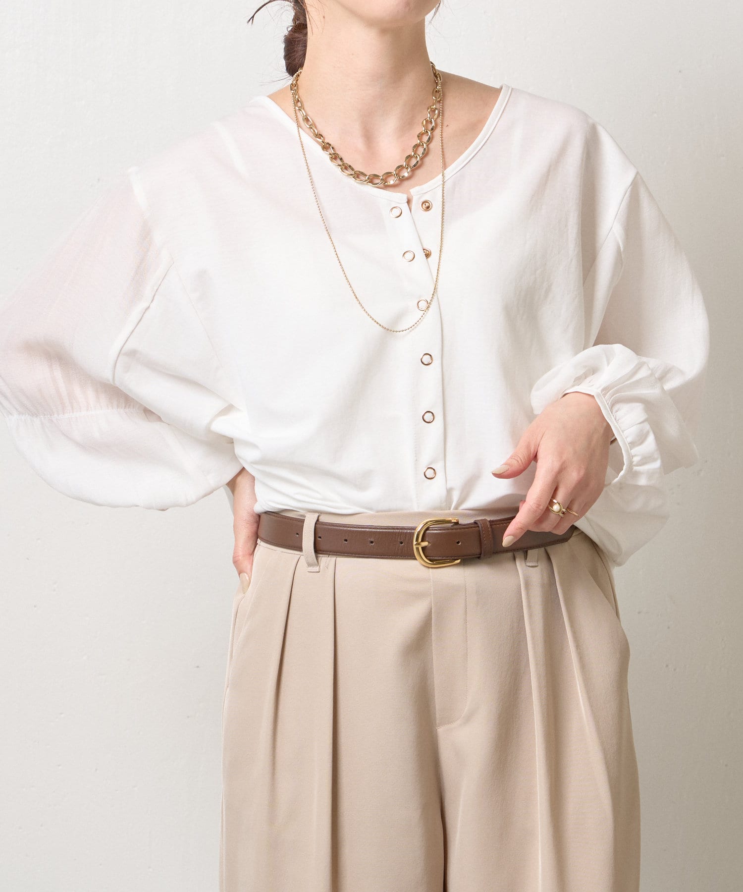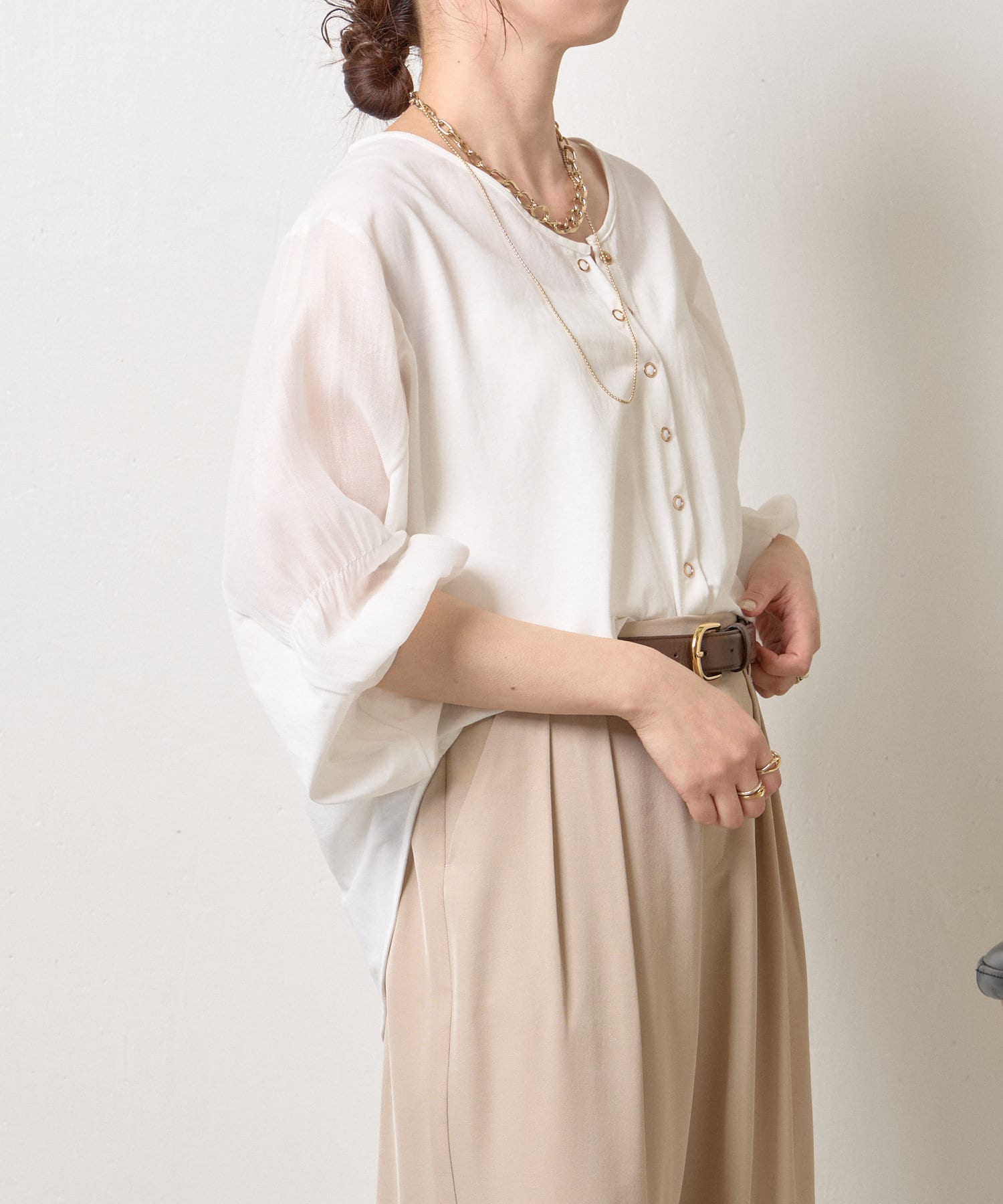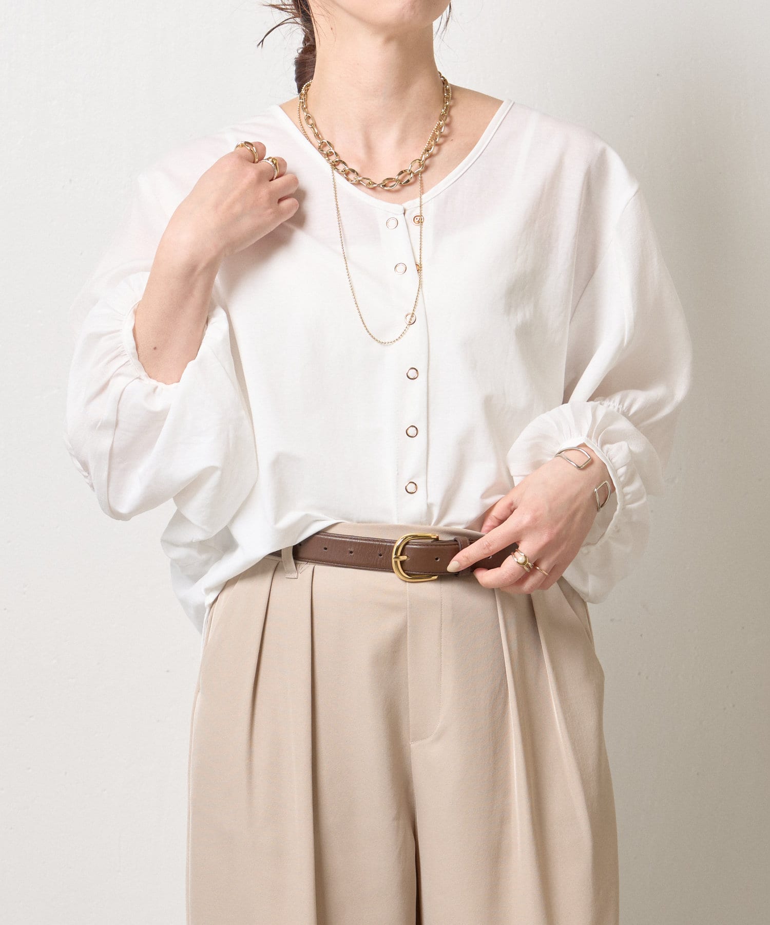 ・程よくゆとりのあるシルエットで、体型カバーもバッチリ。  気になる二の腕も、パフスリーブが自然にカバーしてくれるので安心です。