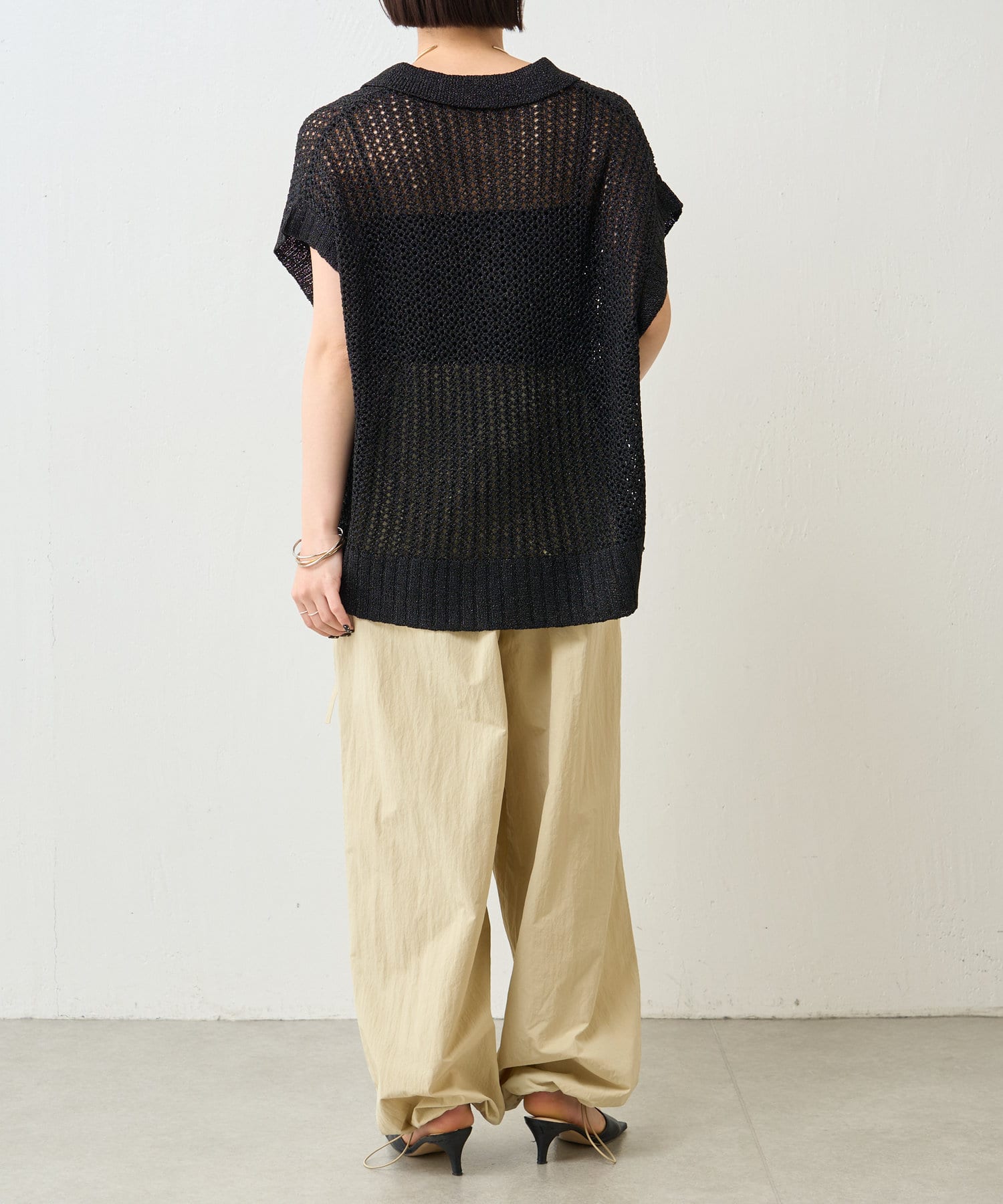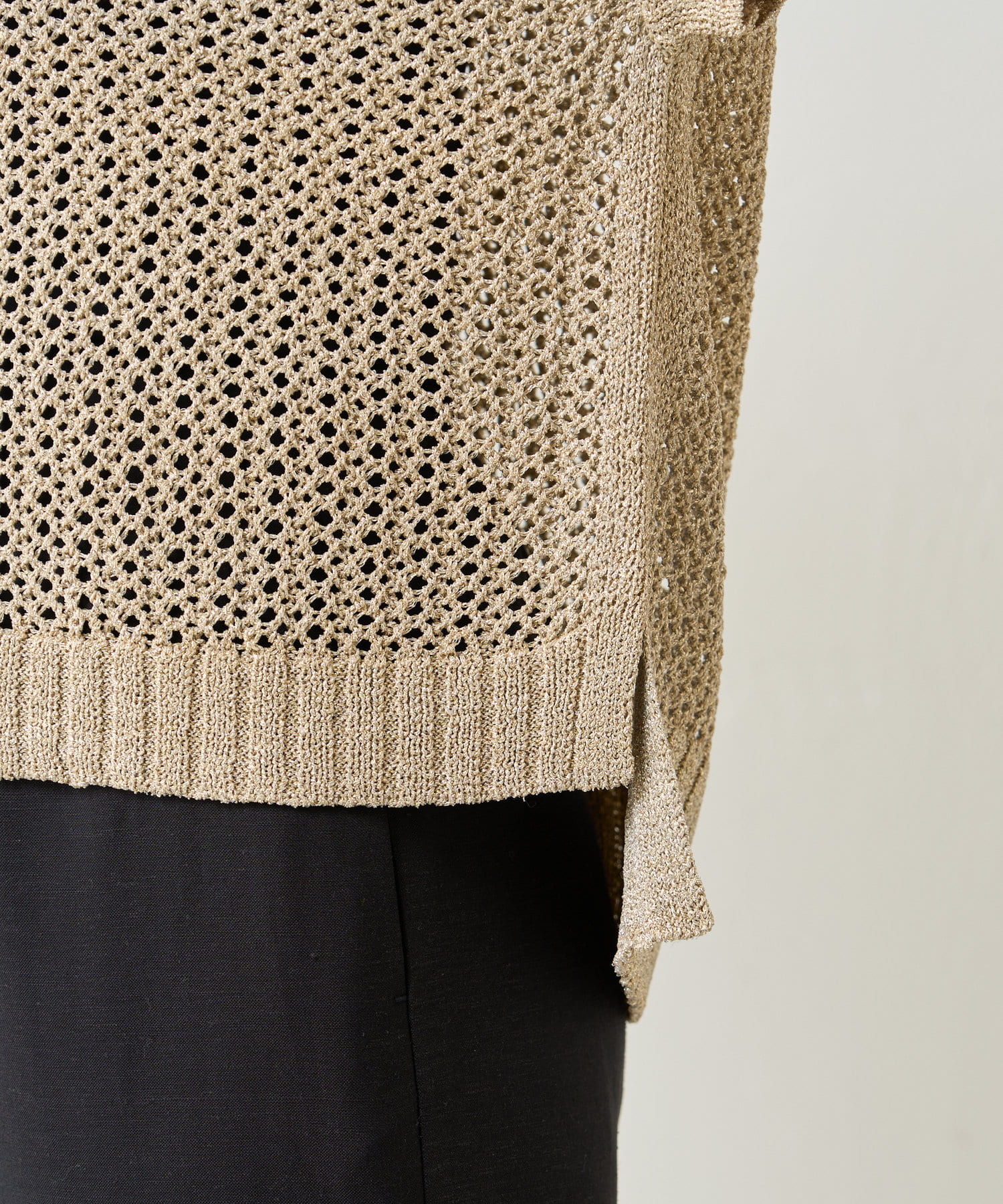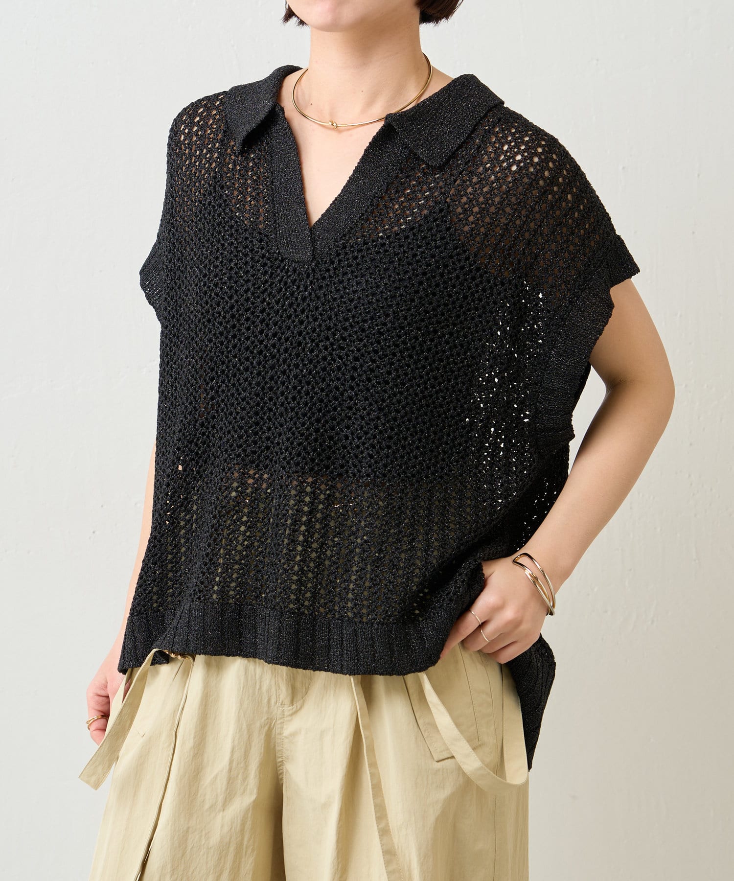 ・上質なニット素材は、肌触りの良さだけでなく、適度な透け感も持ち合わせており、夏の装いを軽やかに彩ります。