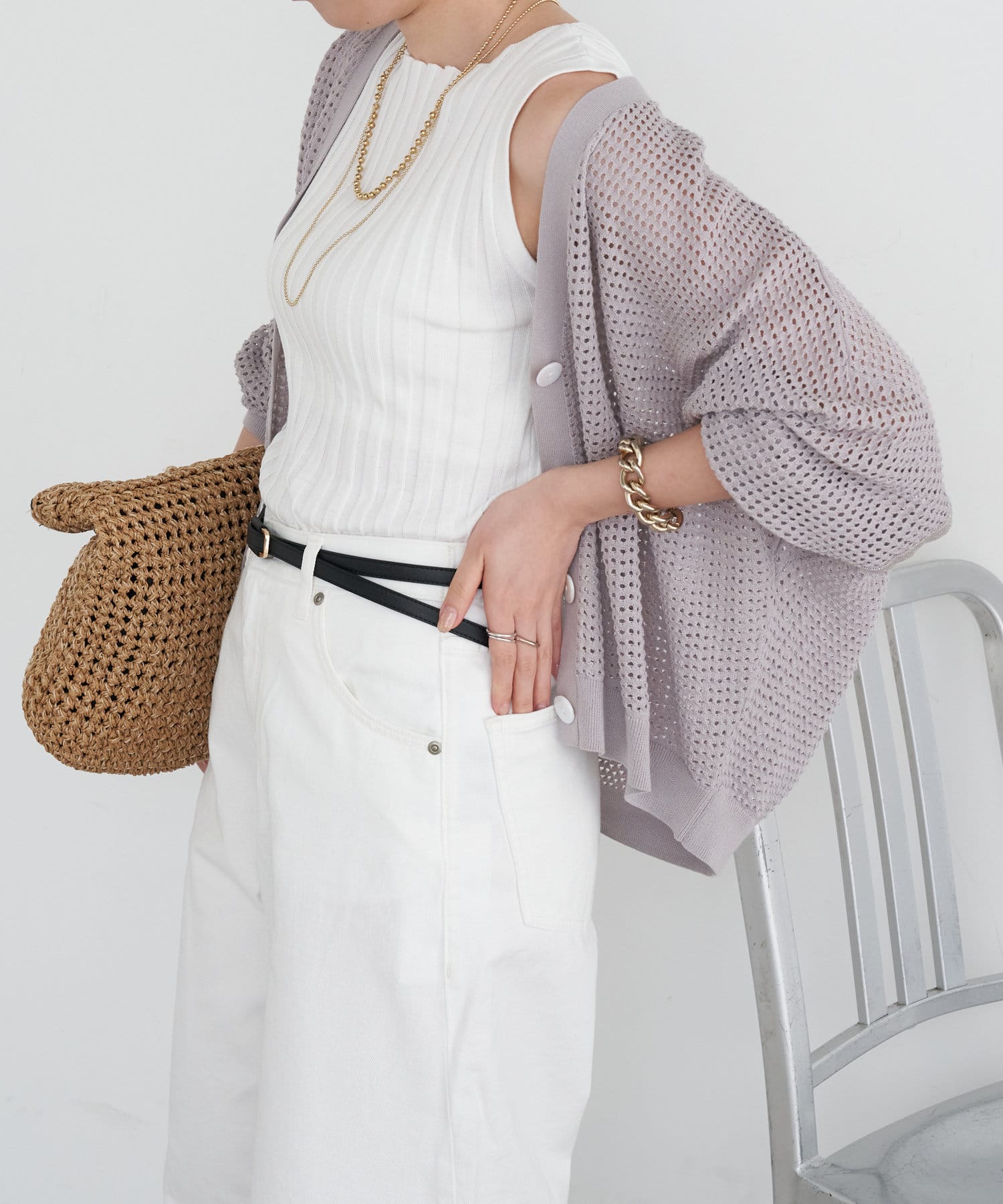 この春夏欠かせない、着回し力抜群のメッシュカーディガン。