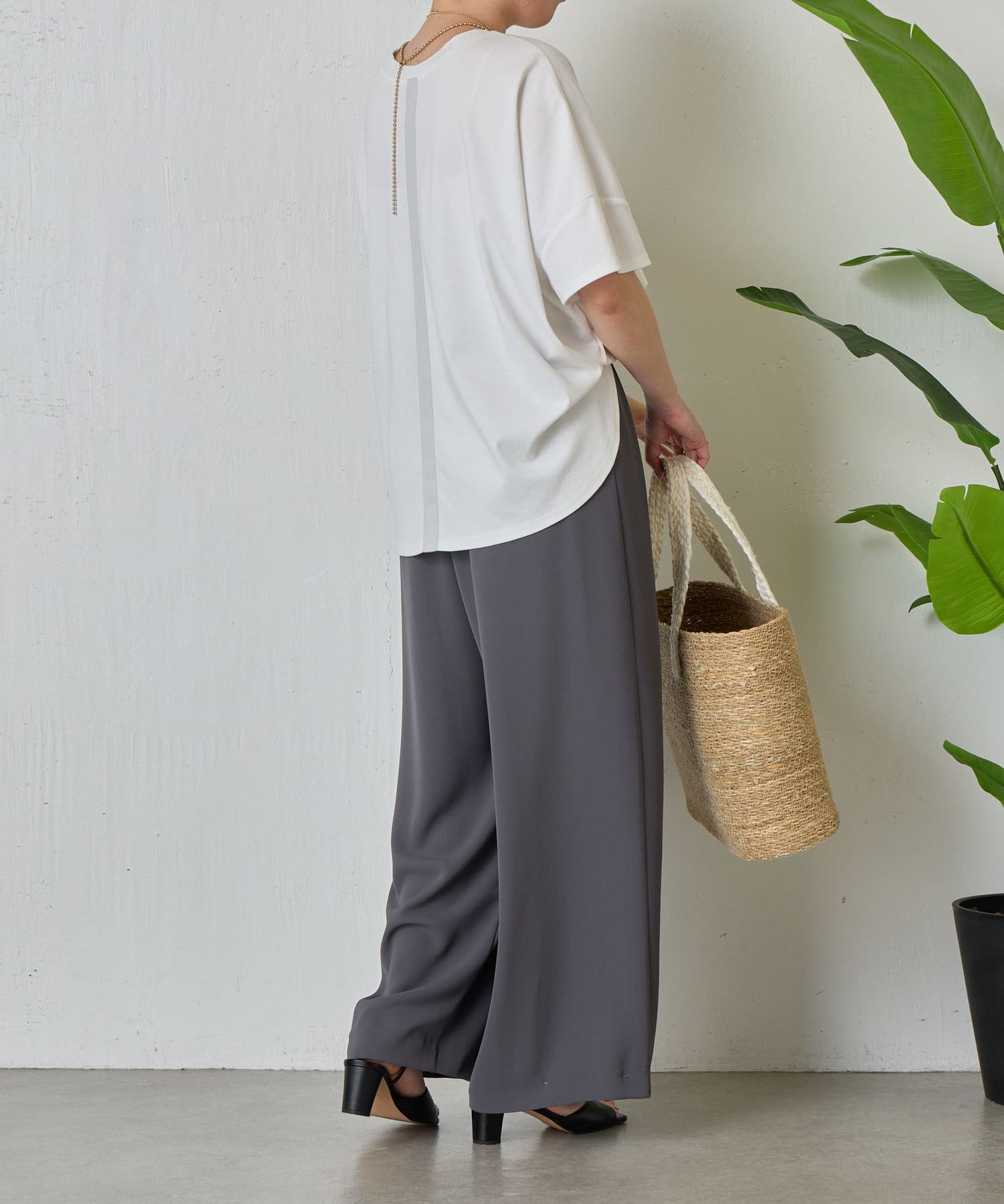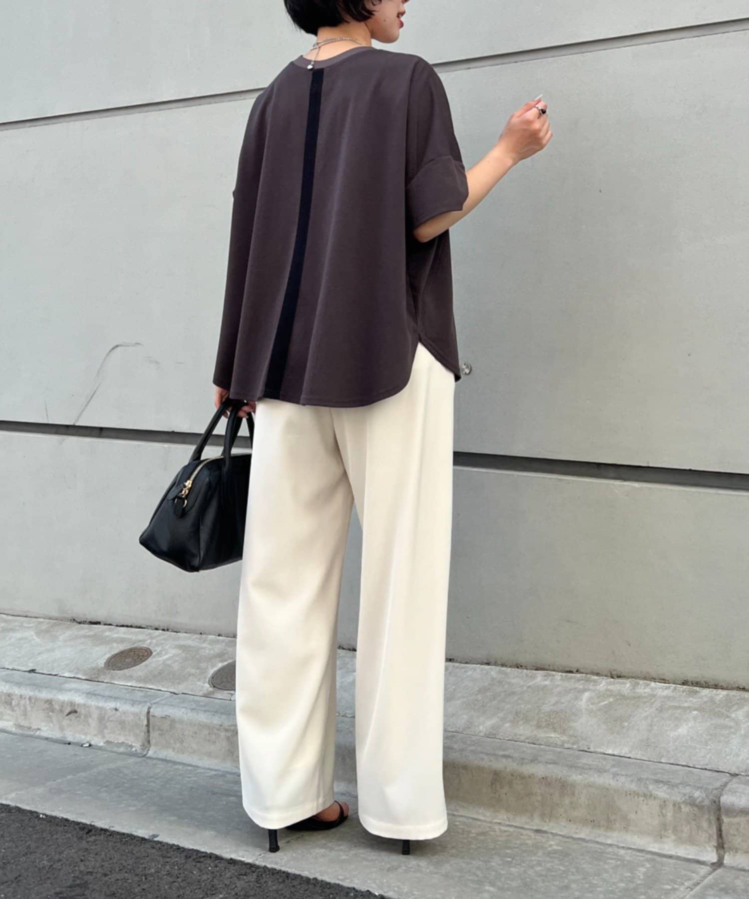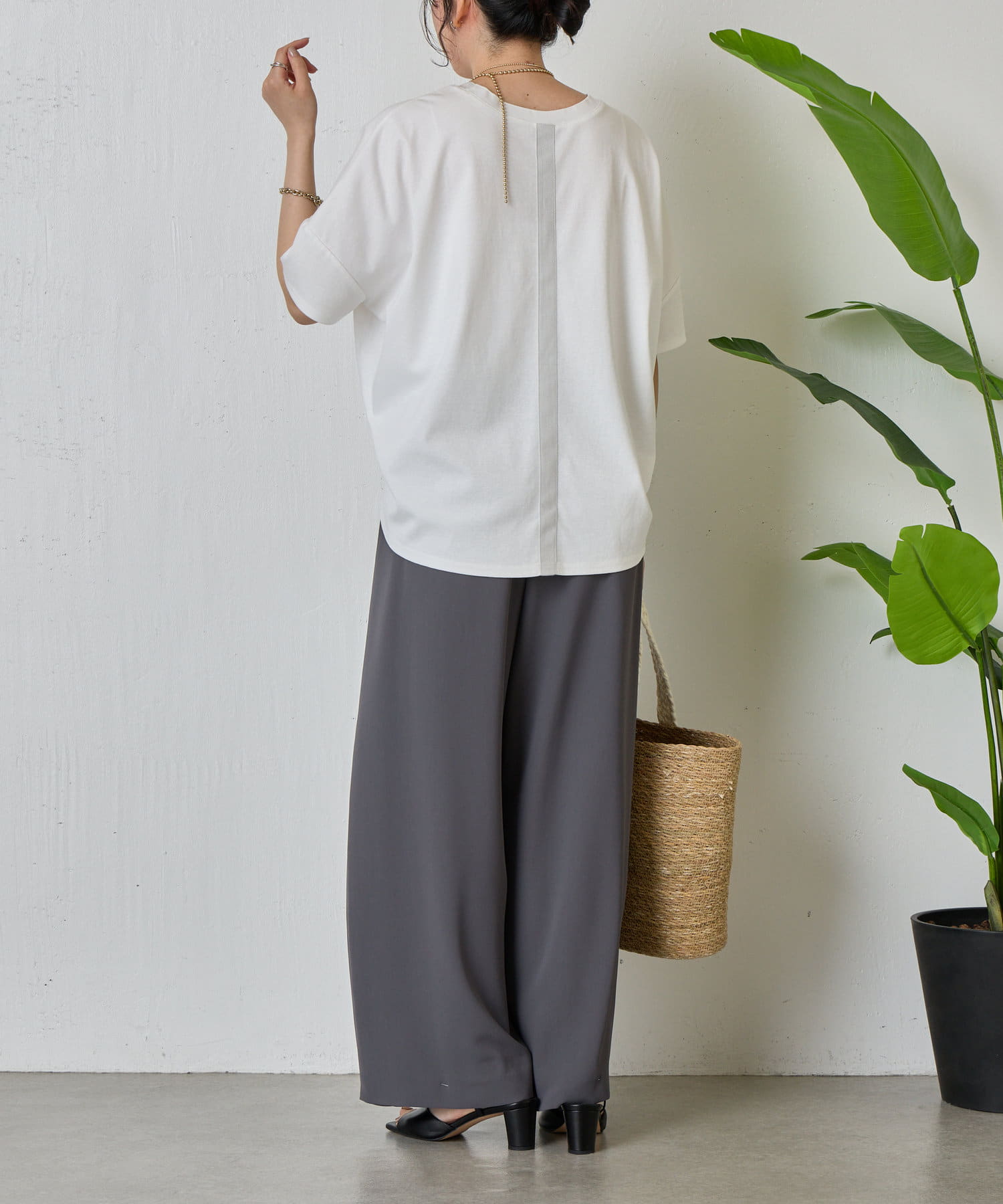 ・さりげなくおしゃれなバックデザインが魅力の、大人なデザインカットソー。