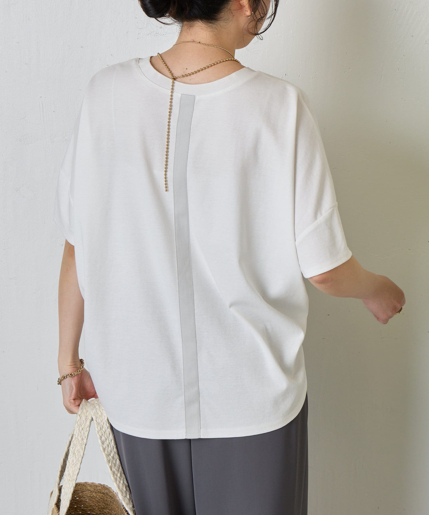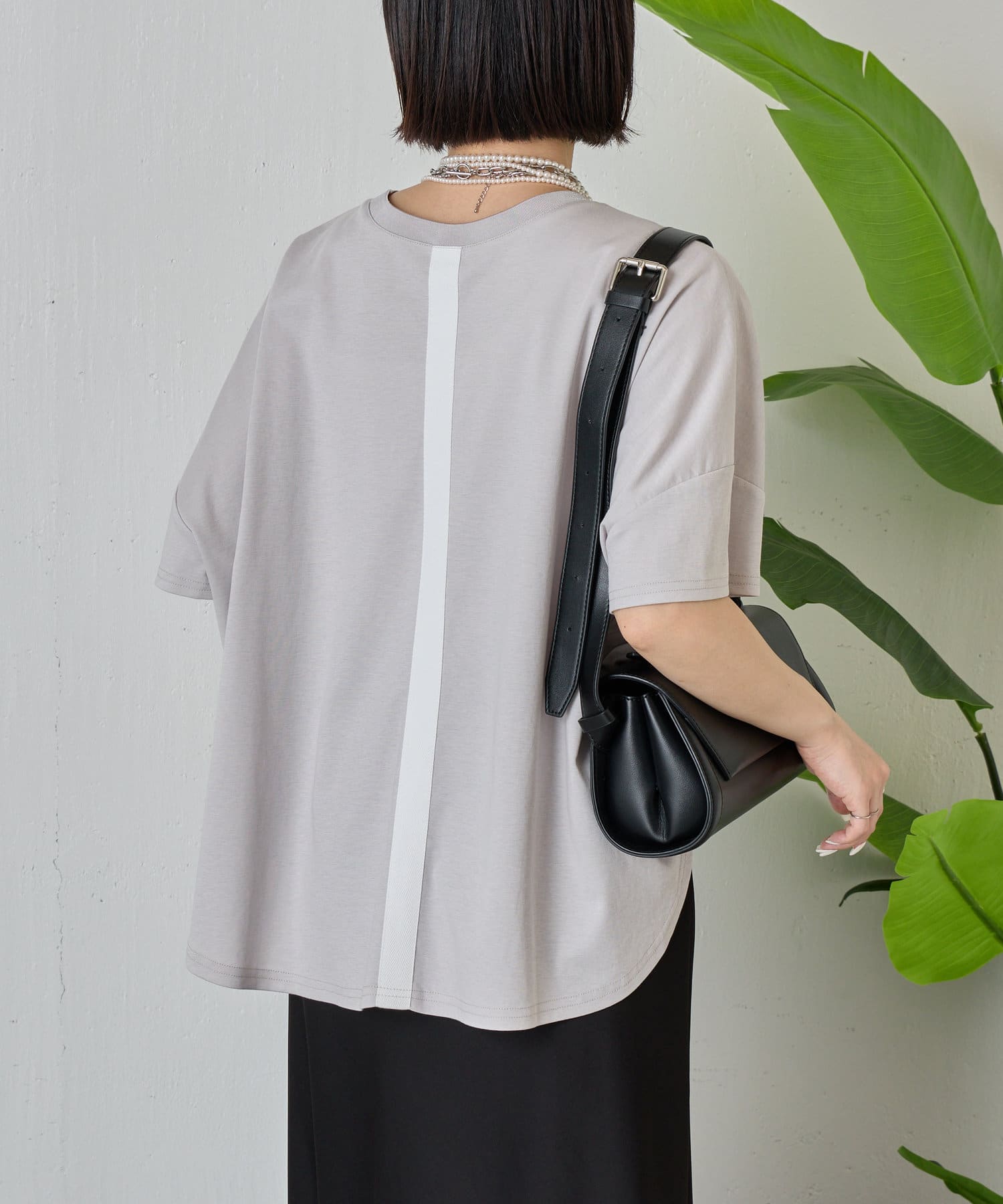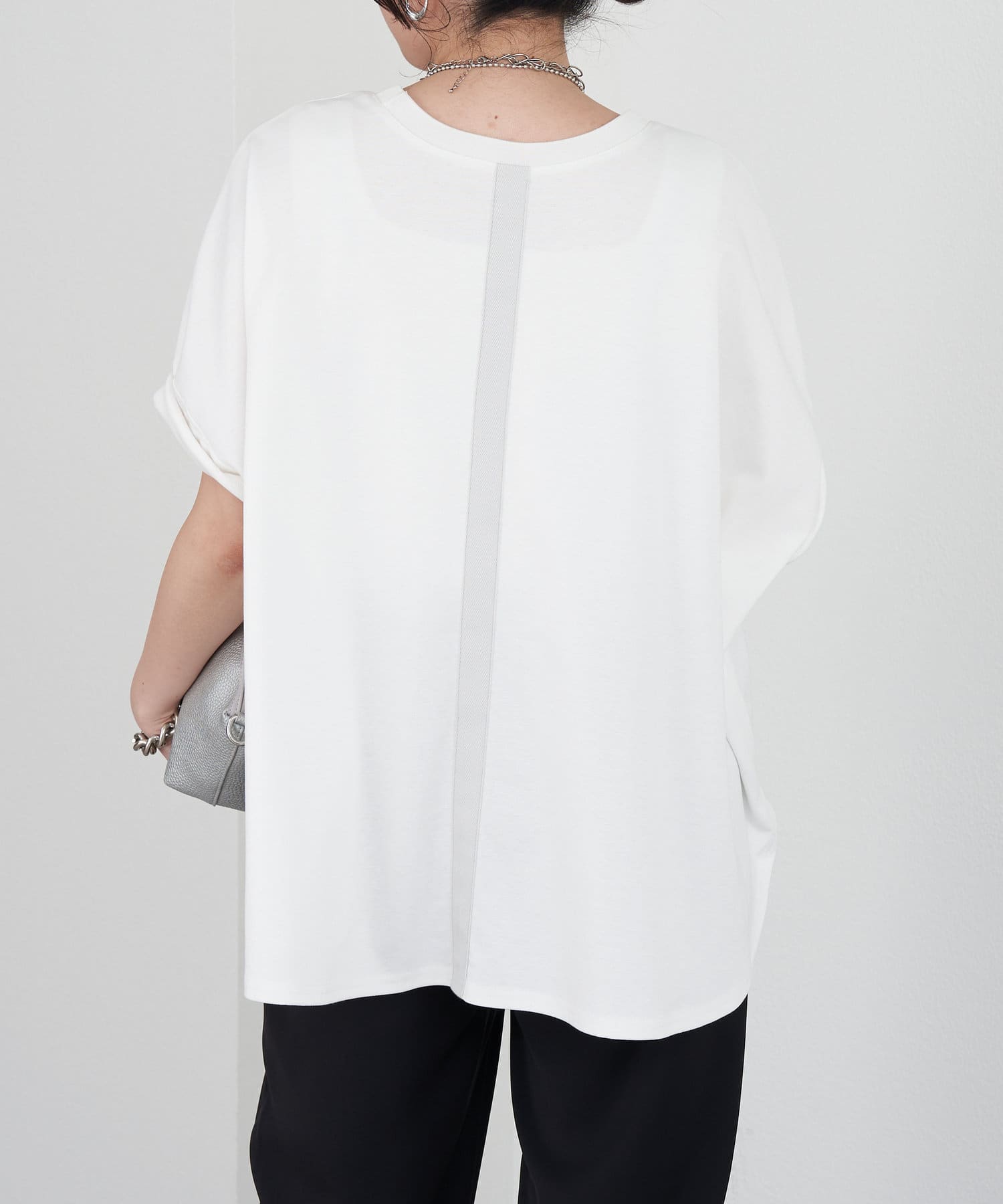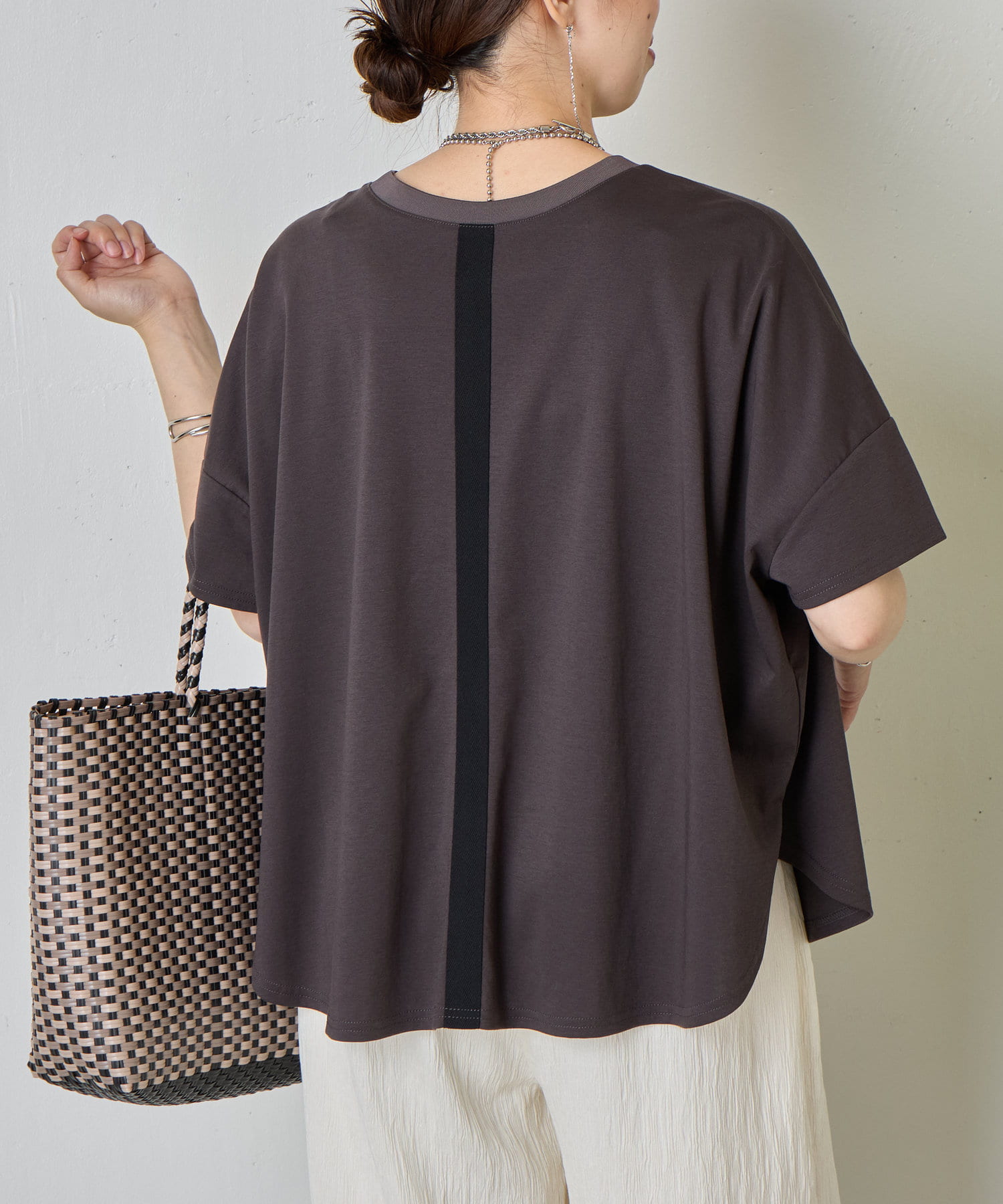 【ポンチョシルエットで可愛い/大人Tシャツ】バックテープカットソー