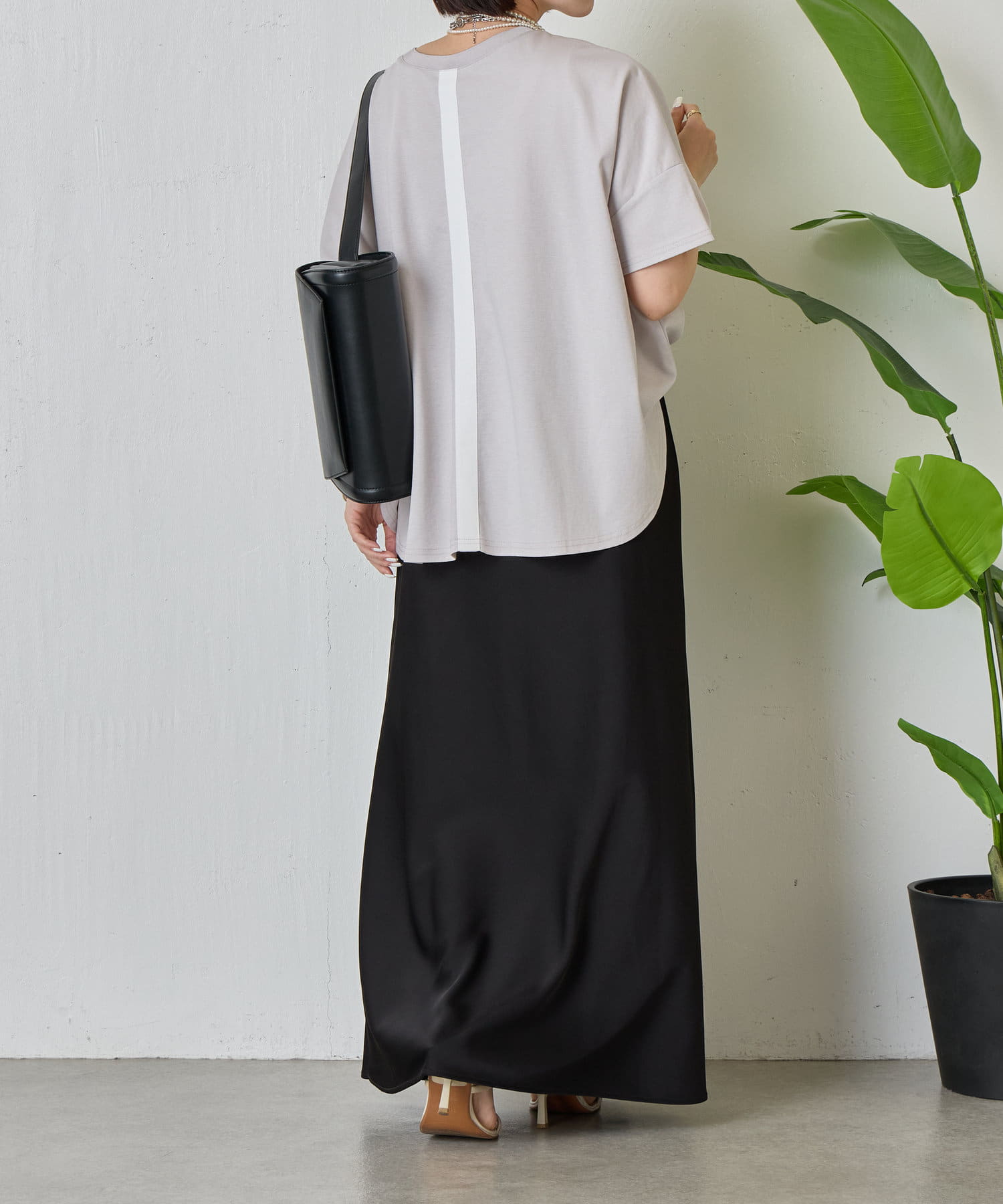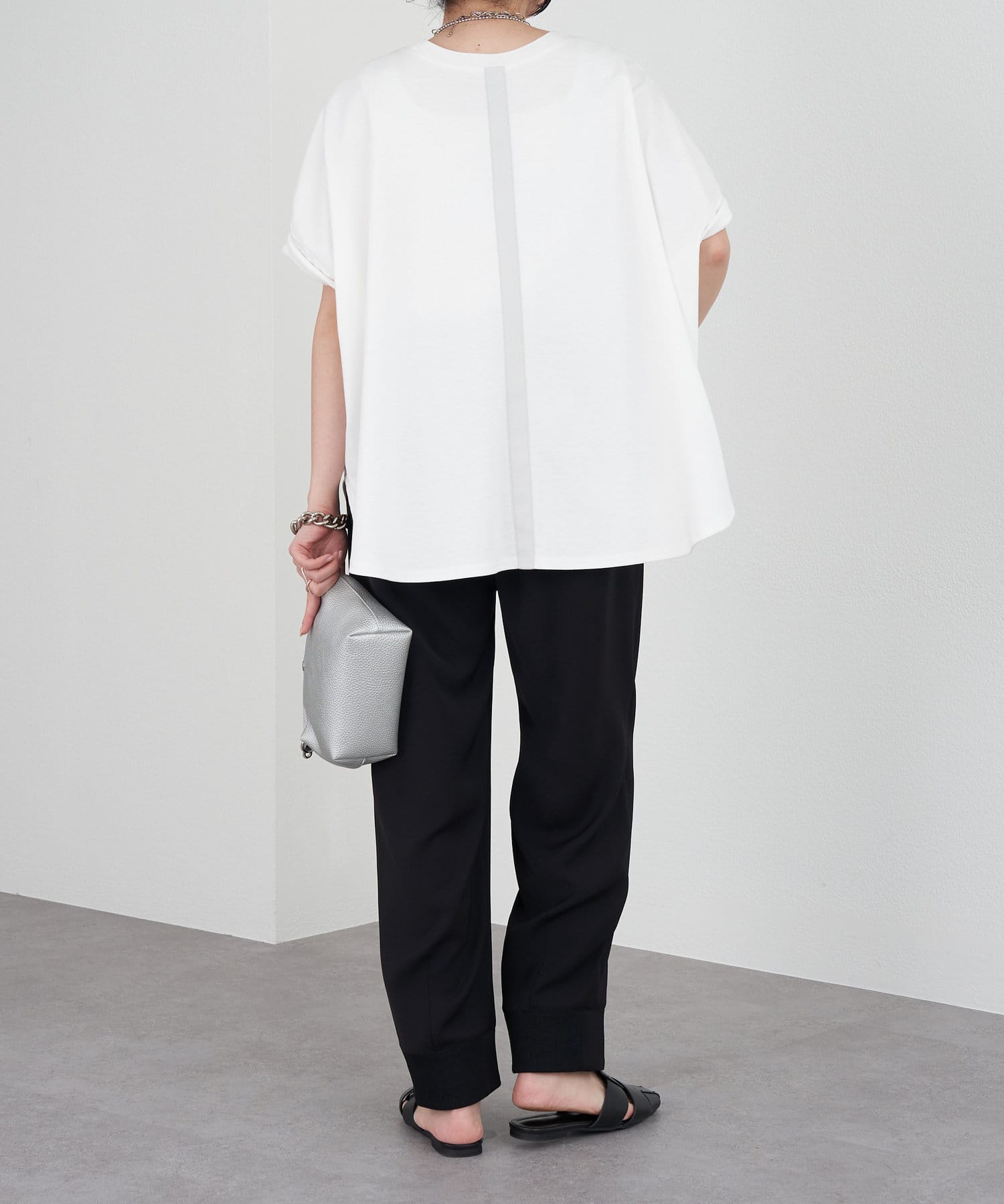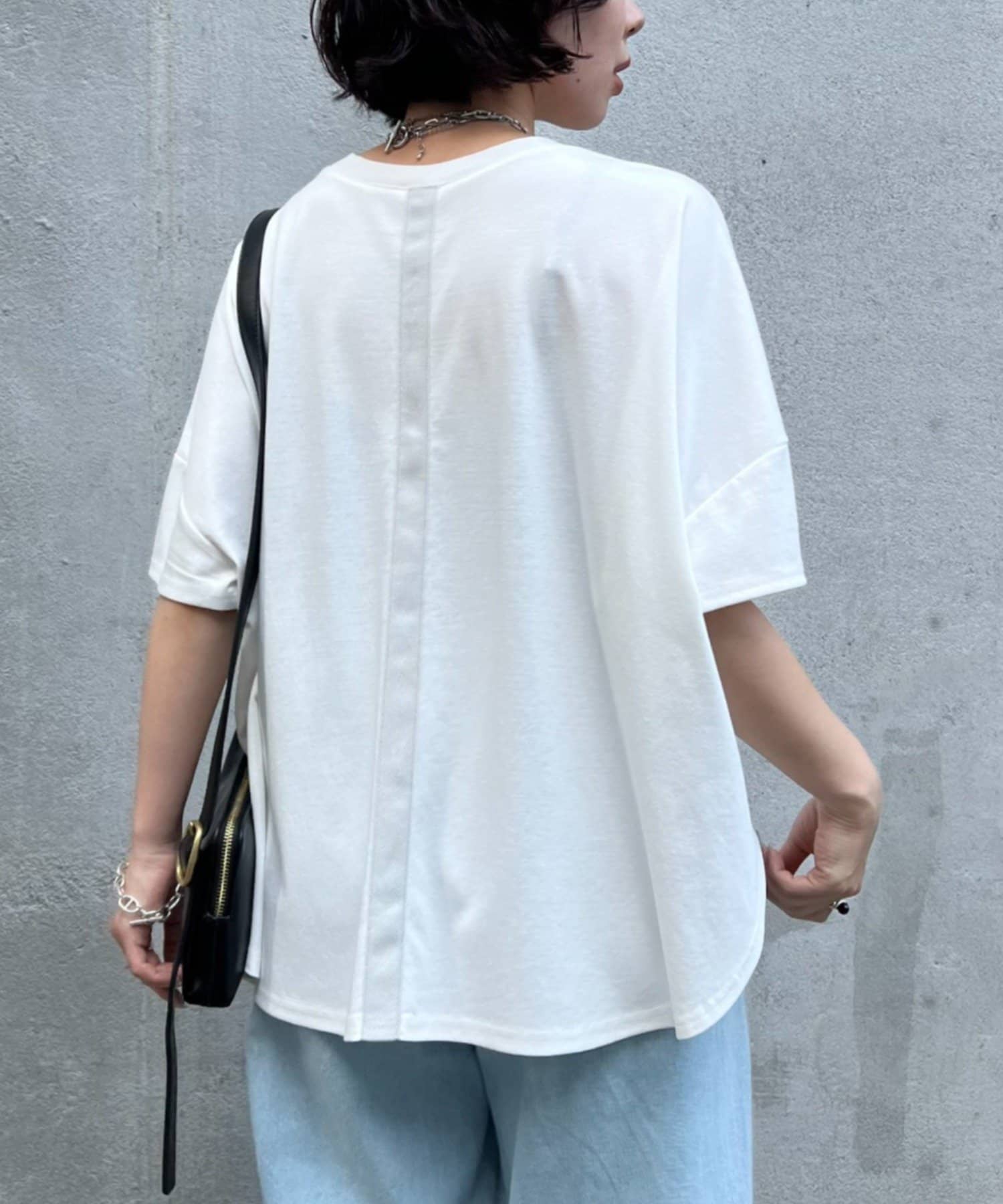 【ポンチョシルエットで可愛い/大人Tシャツ】バックテープカットソー
