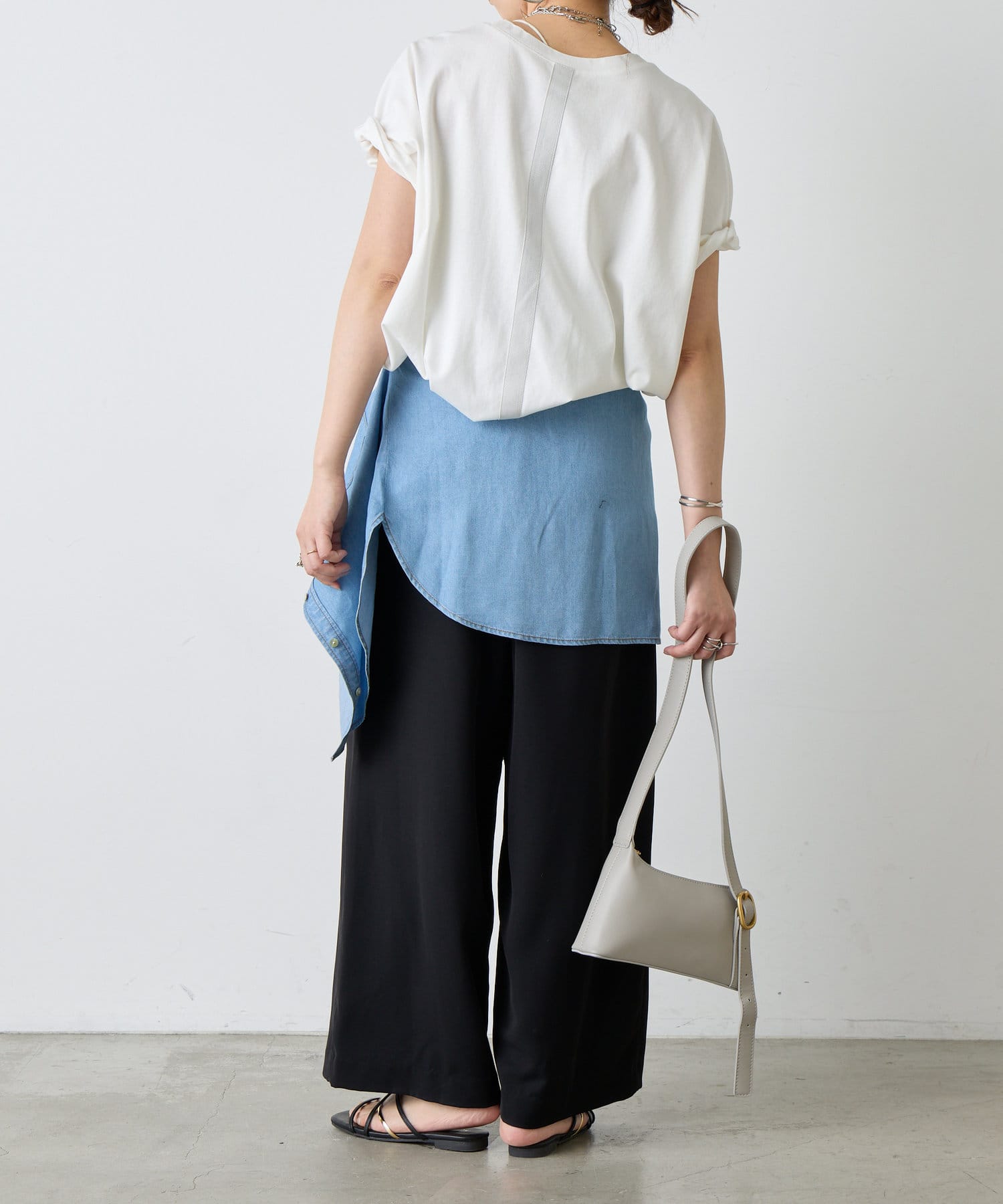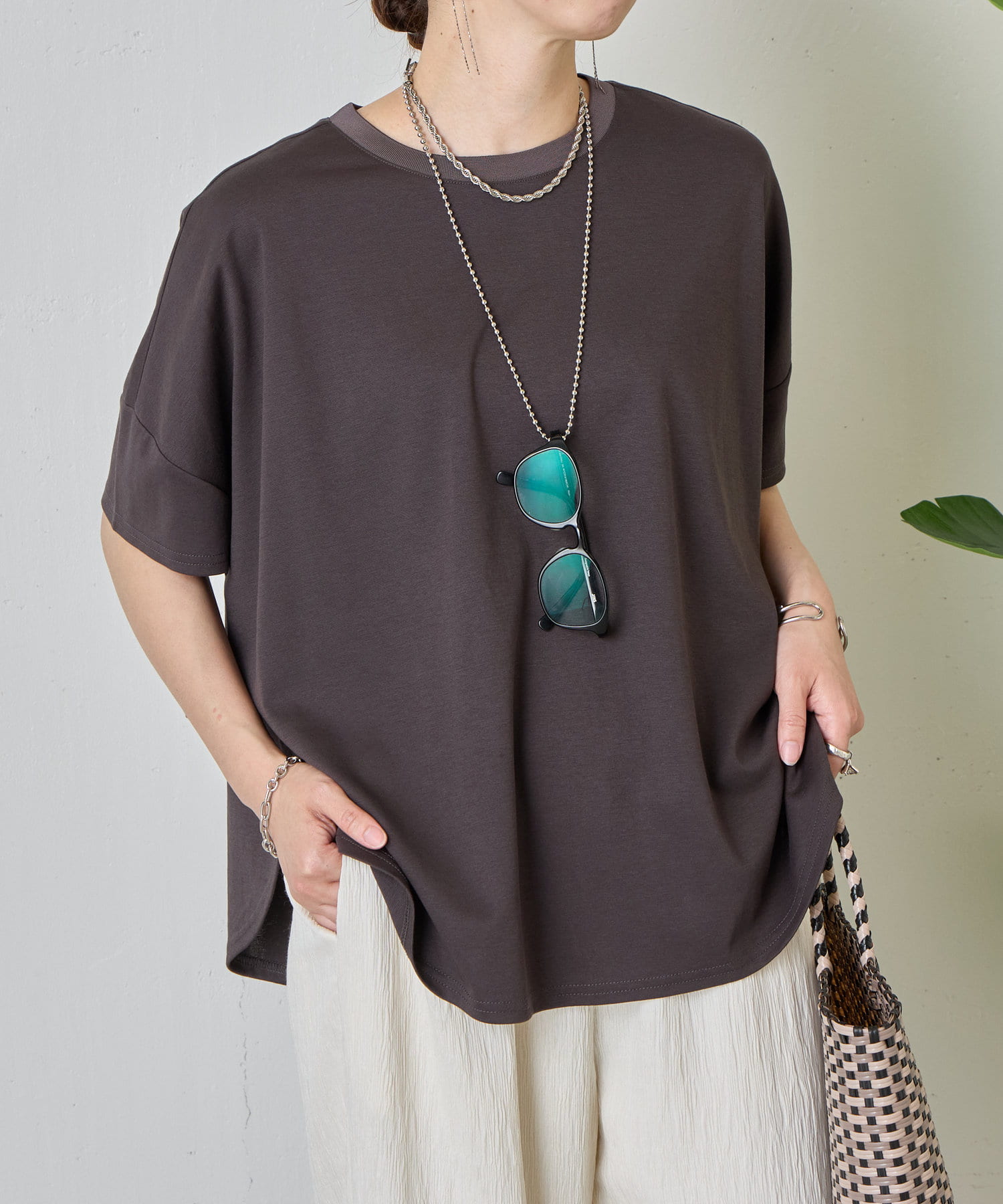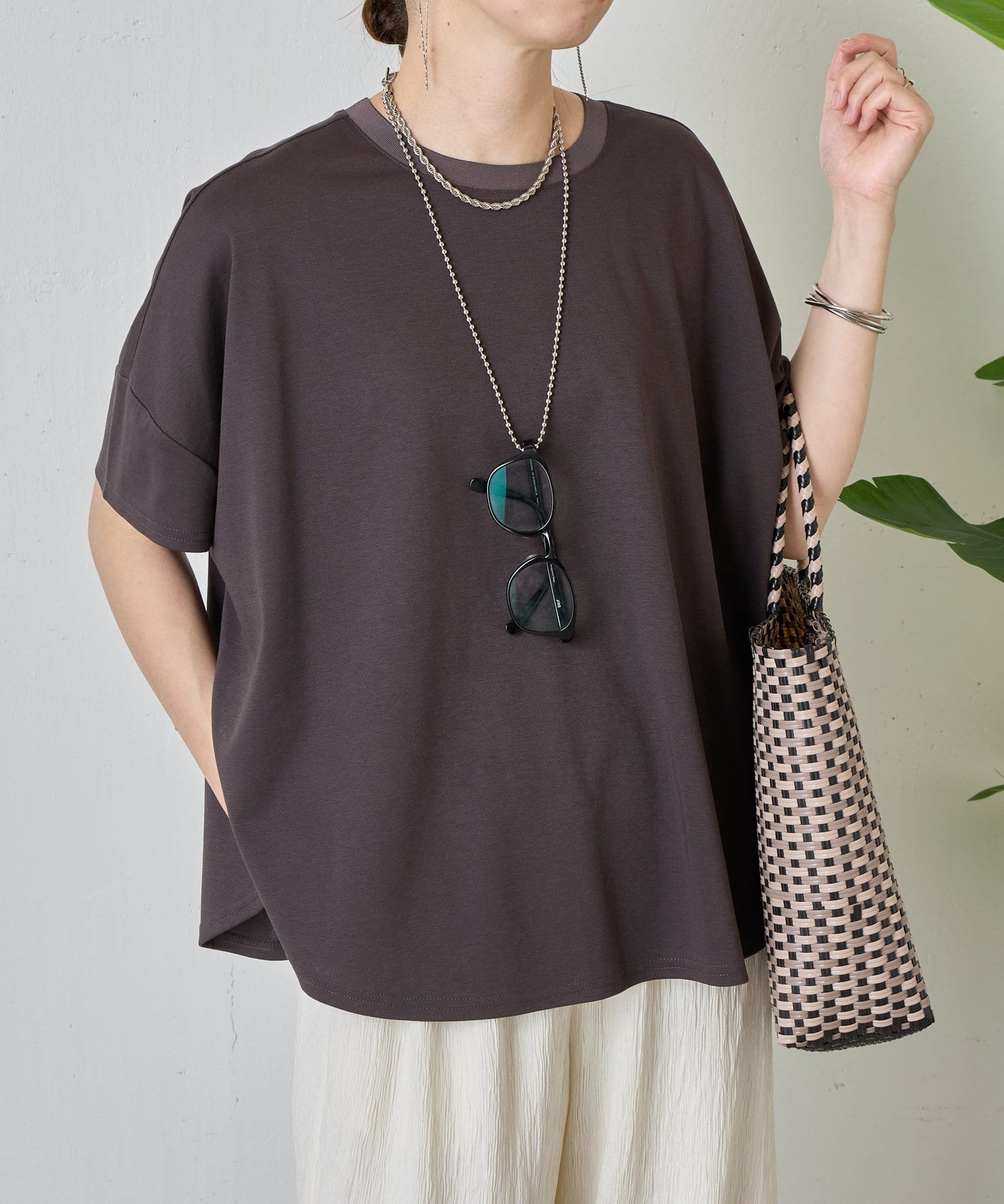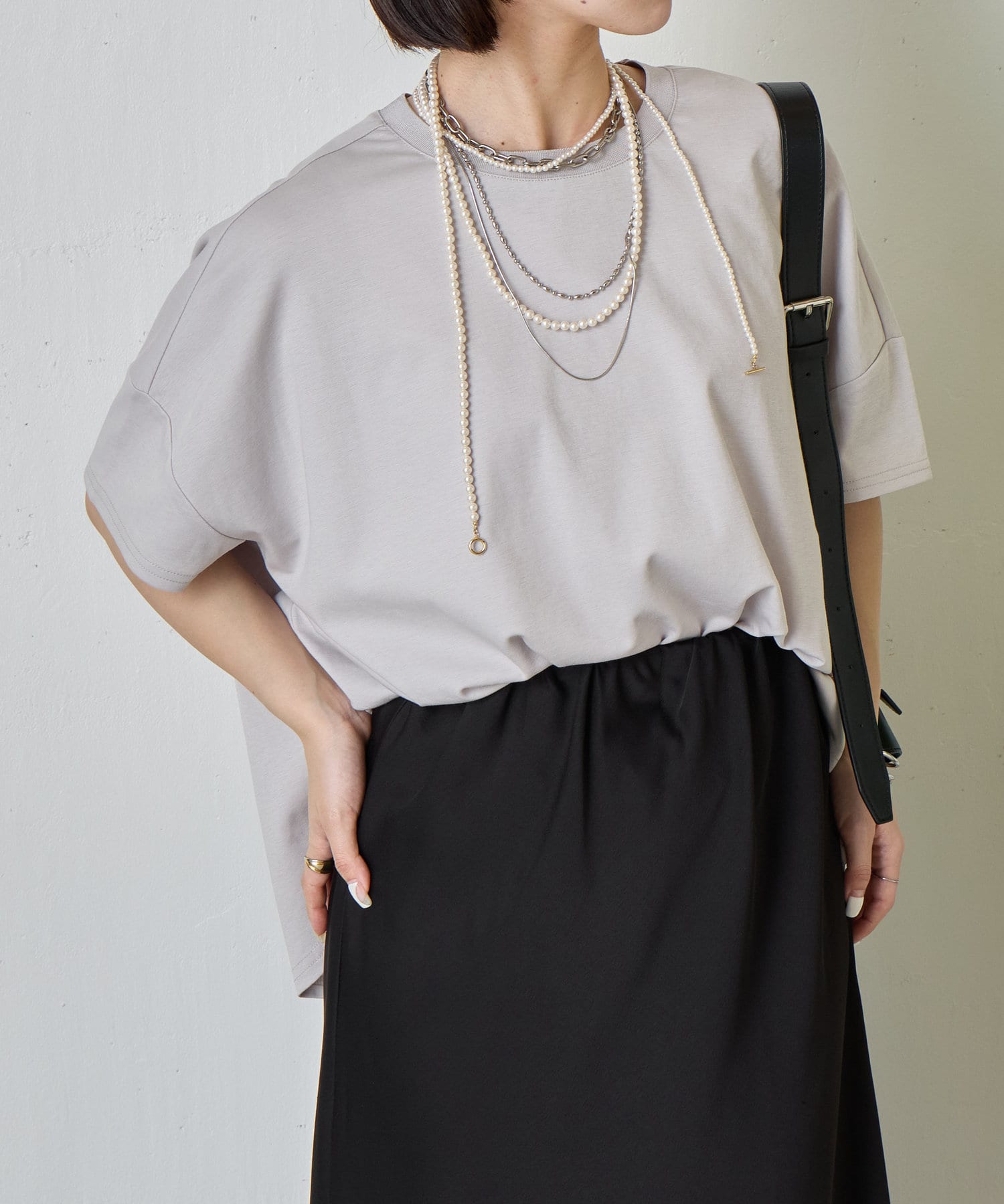【ポンチョシルエットで可愛い/大人Tシャツ】バックテープカットソー