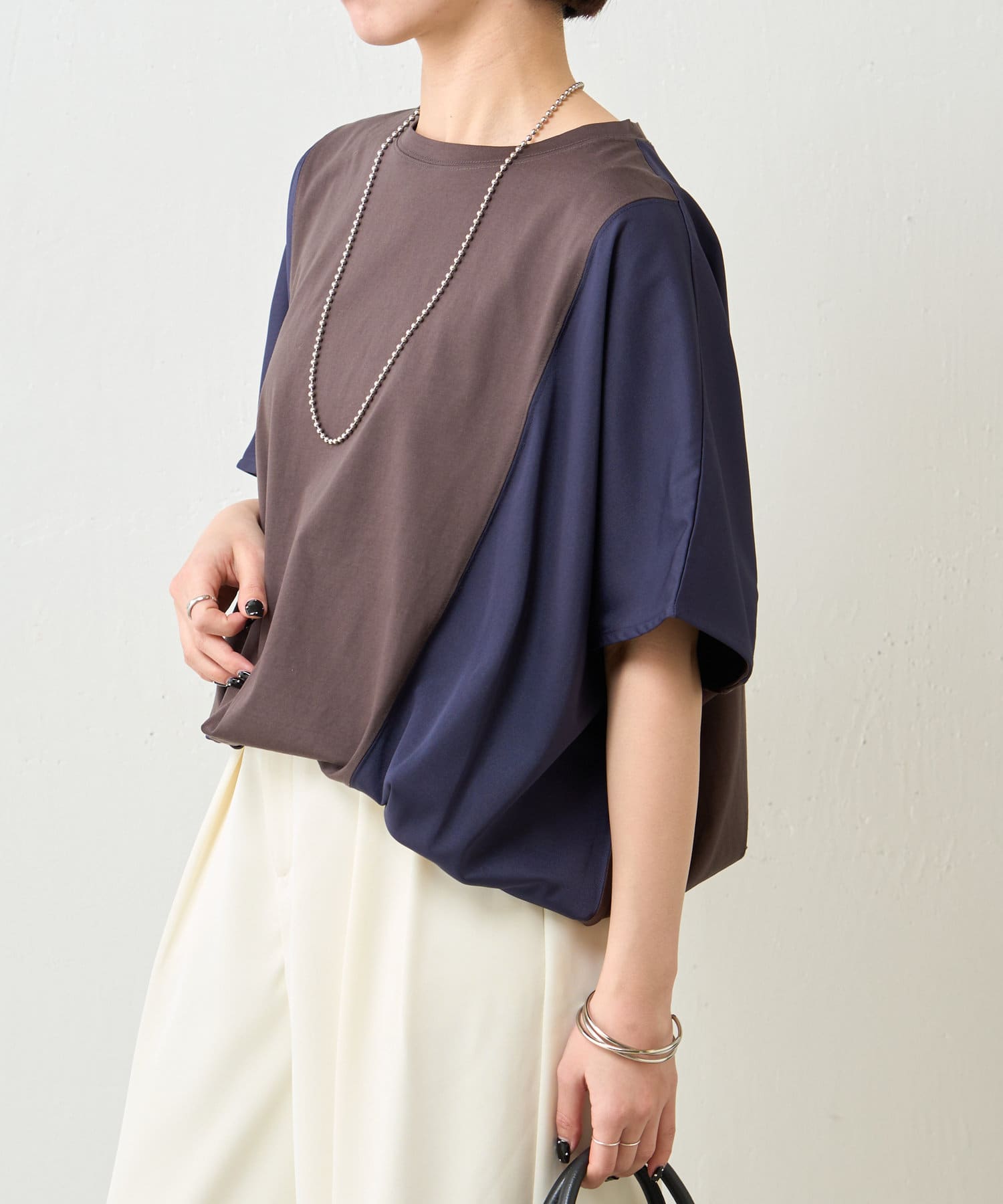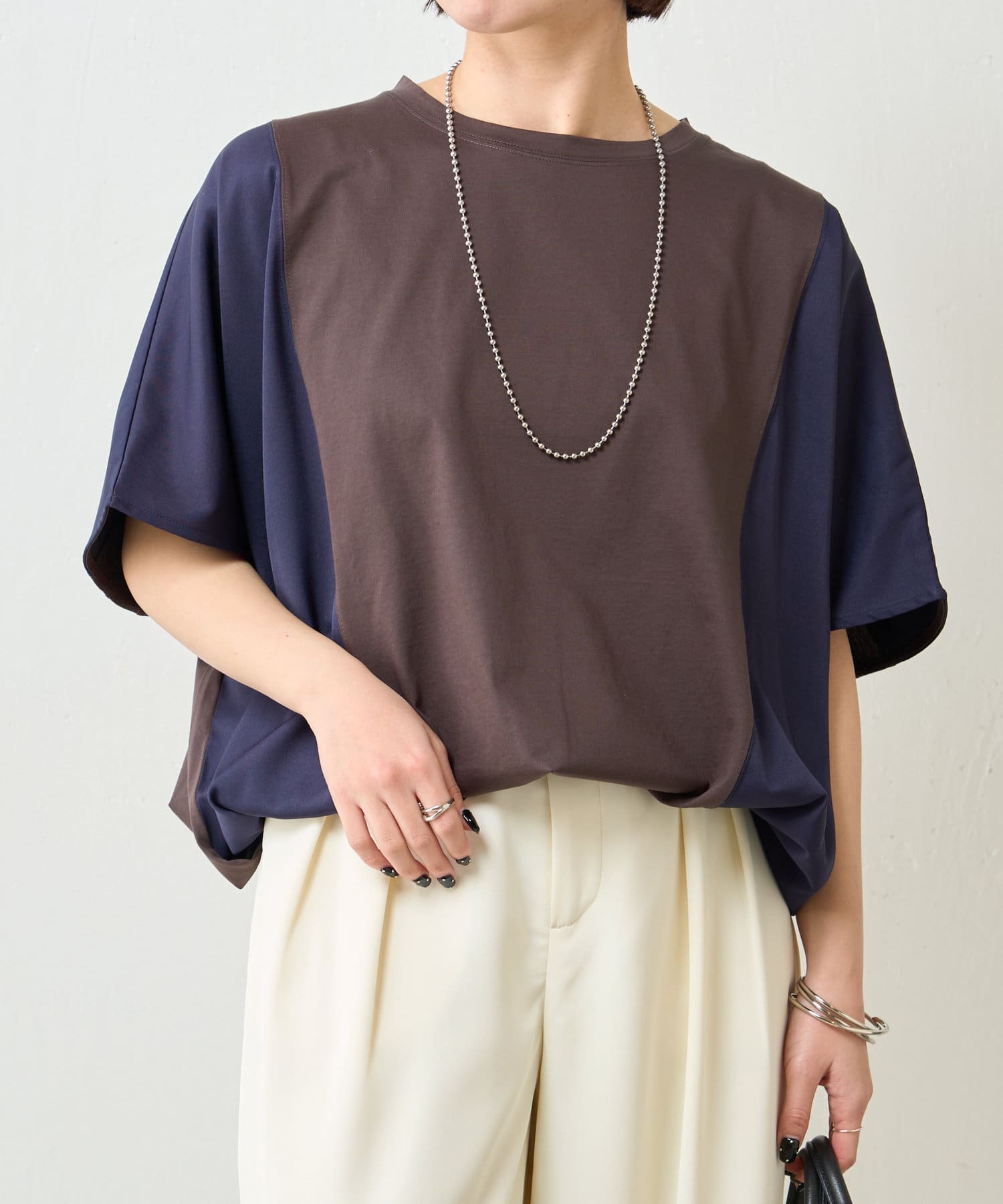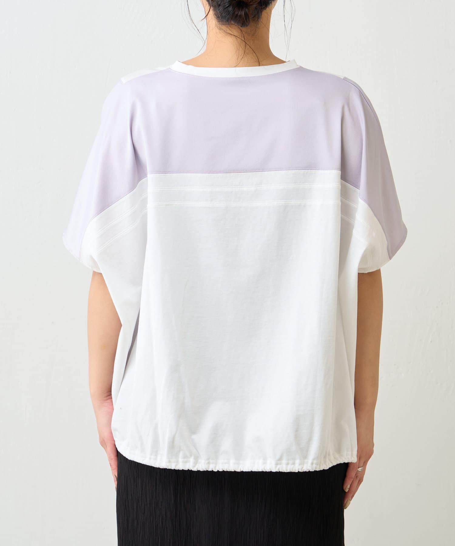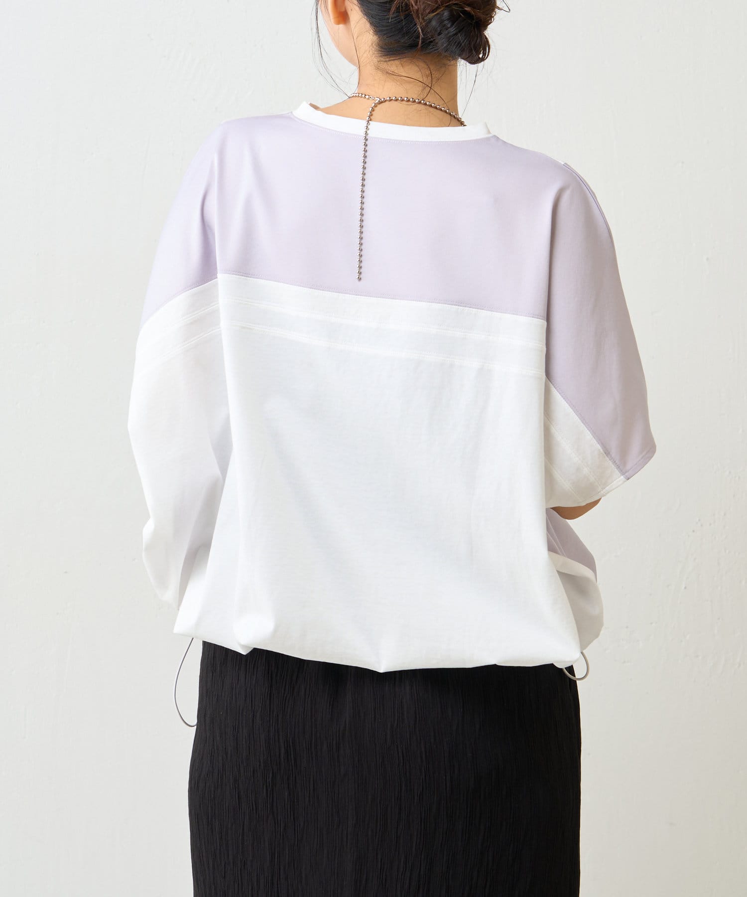 【大人女性のためのバイカラーTシャツ】バックラインドロストカットソー