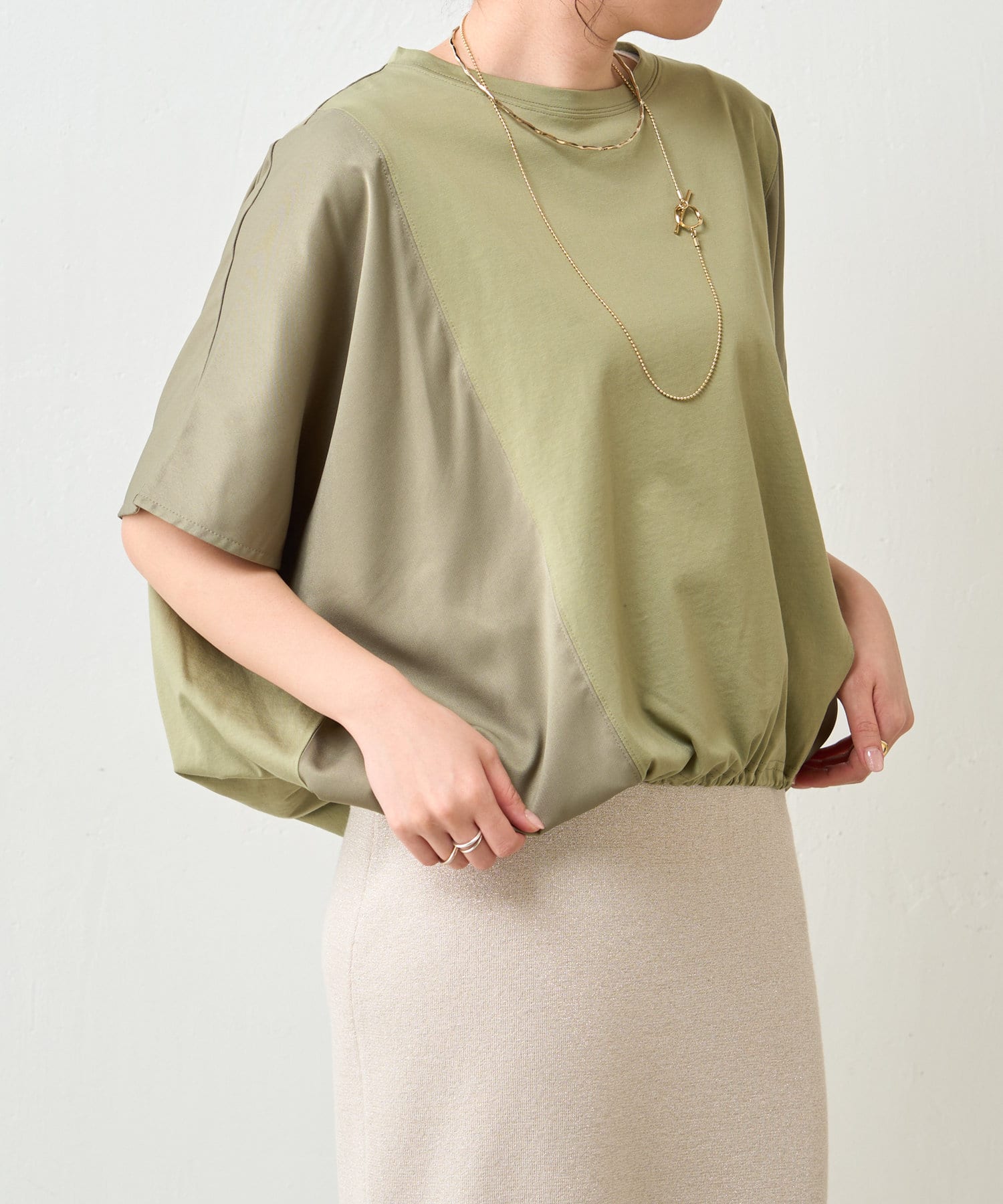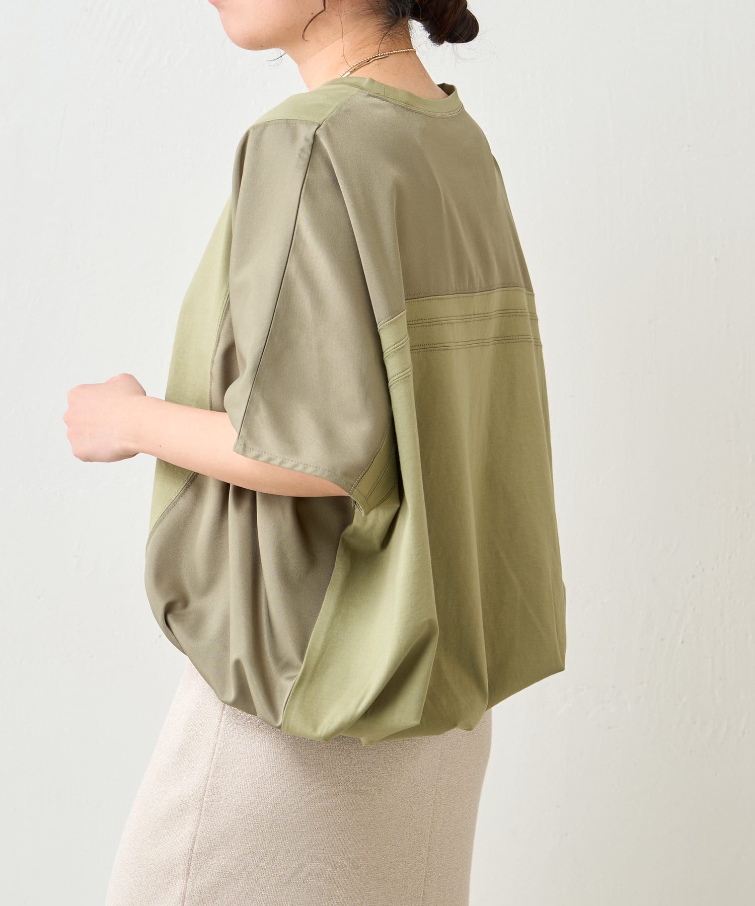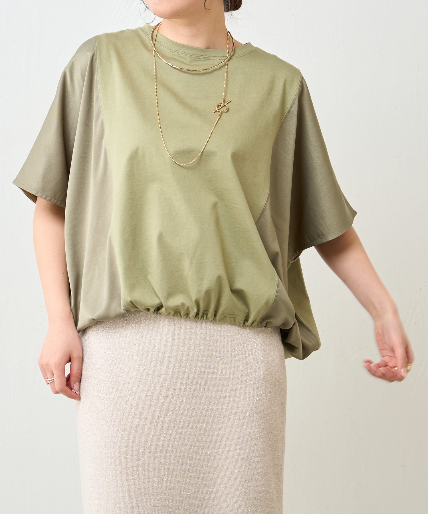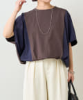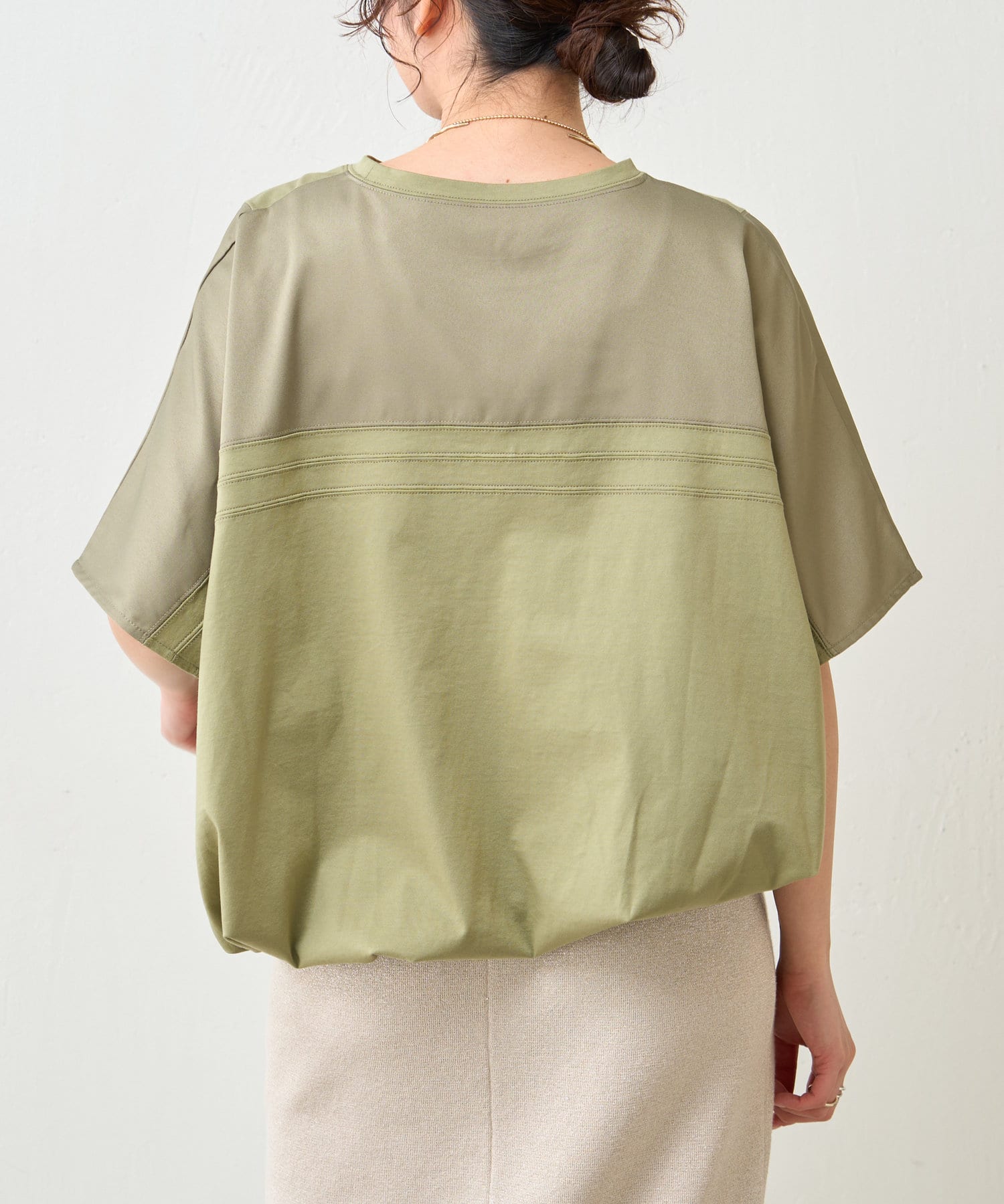 【大人女性のためのバイカラーTシャツ】バックラインドロストカットソー