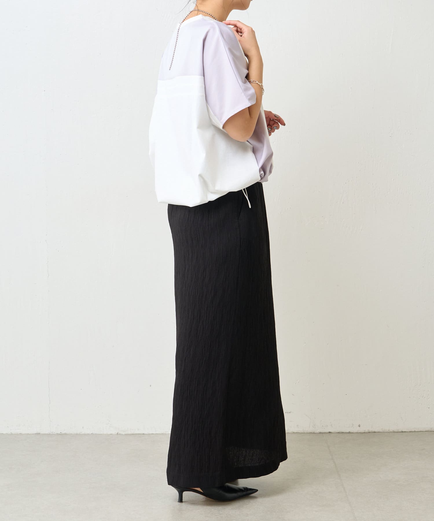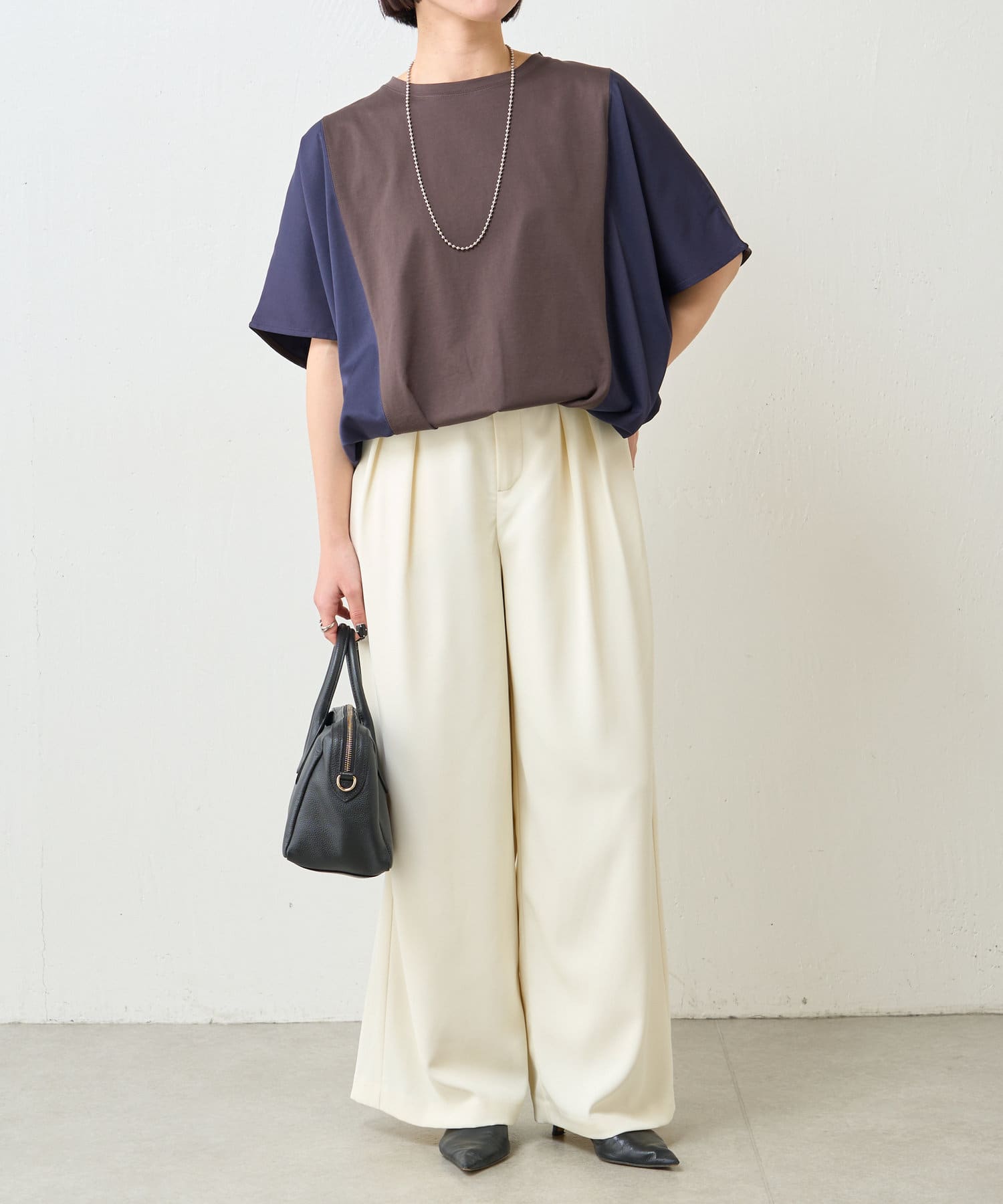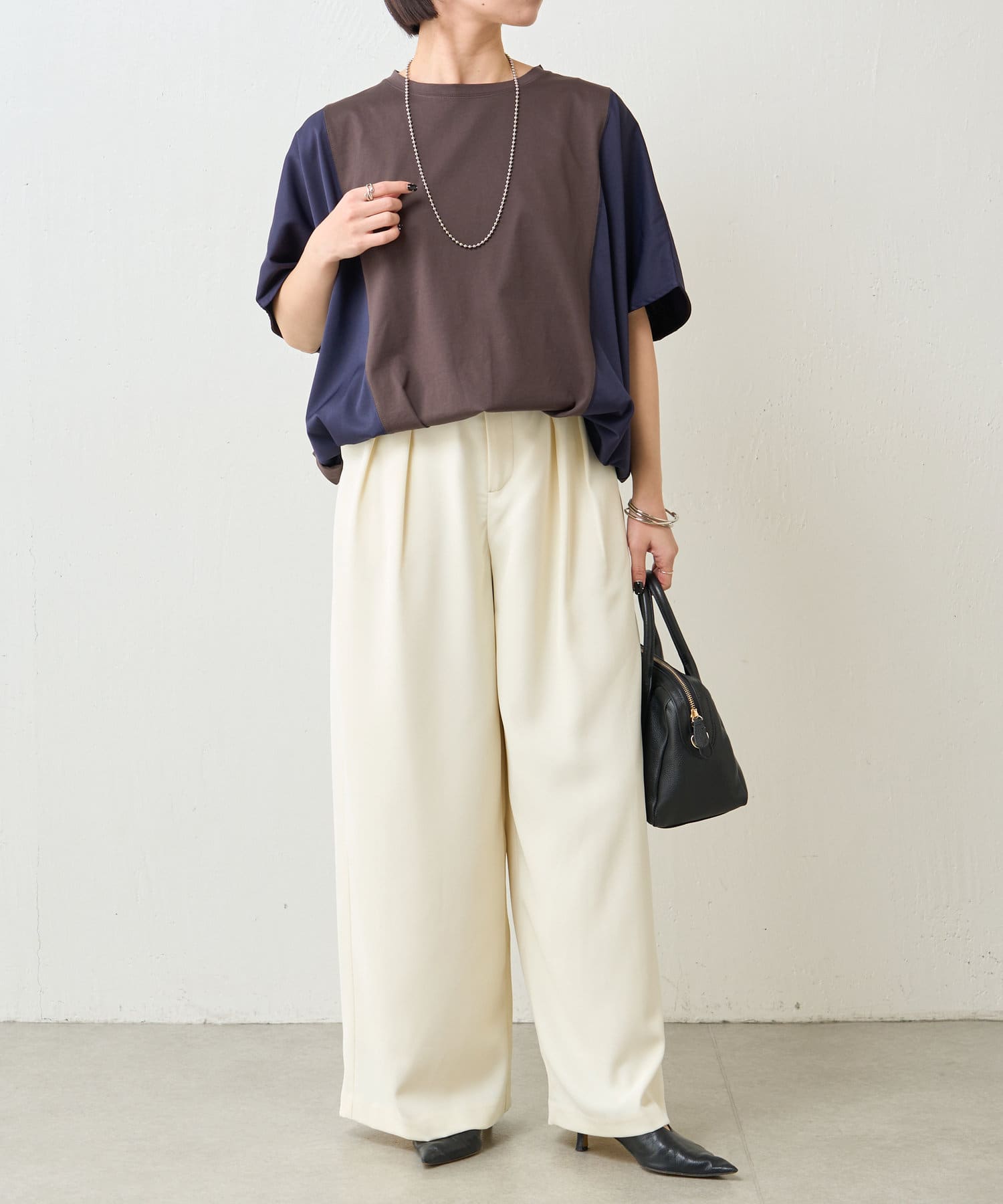 ・ワイドパンツと合わせて、リラックス感のある着こなしに。