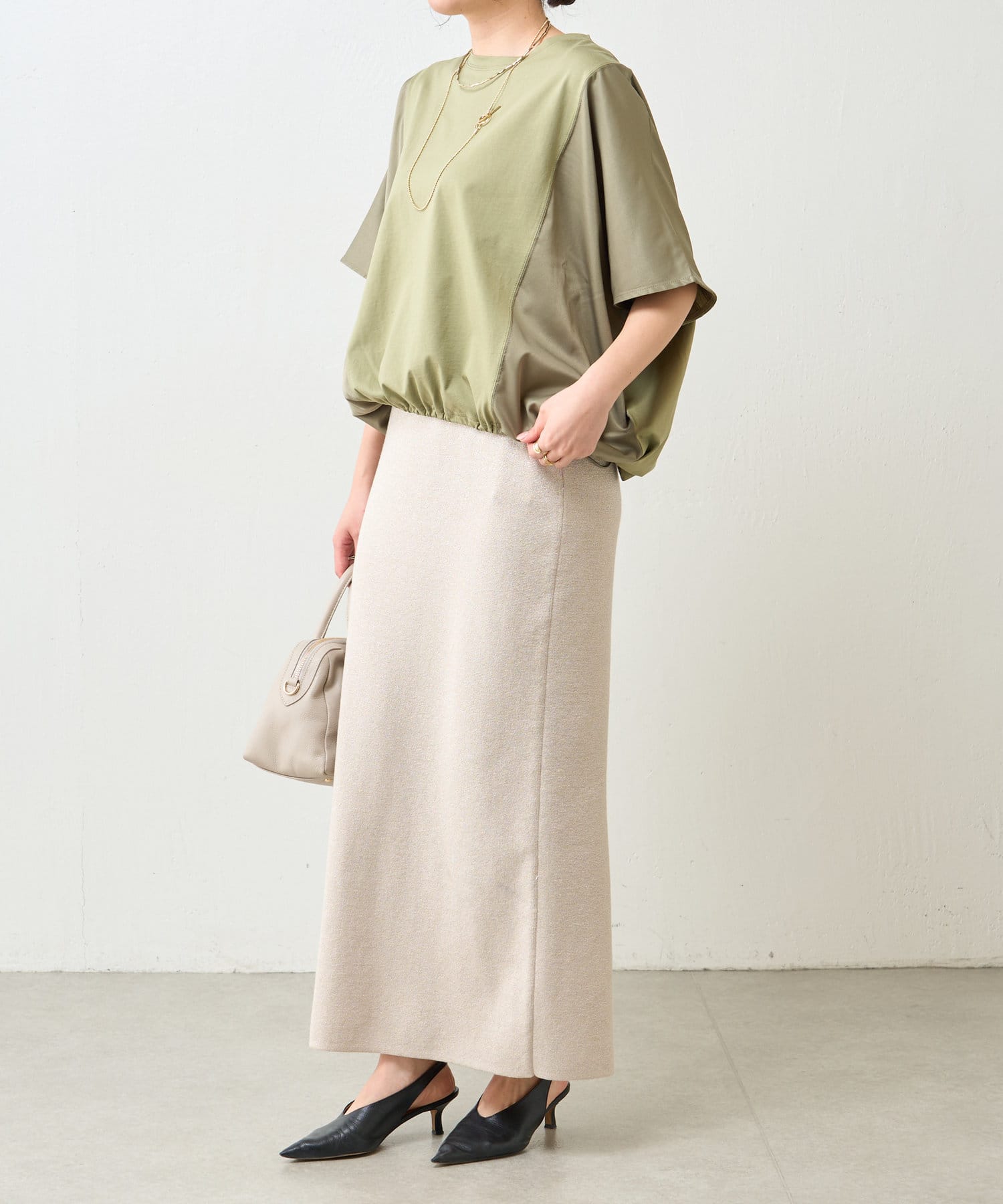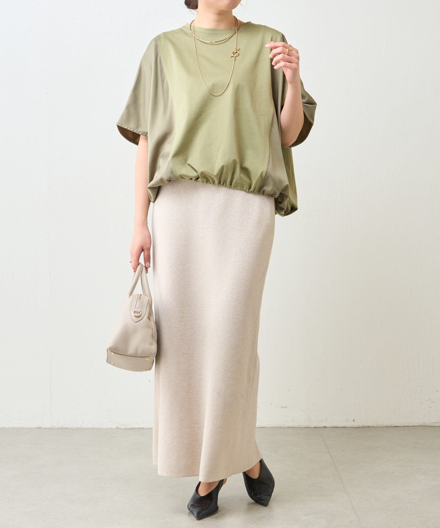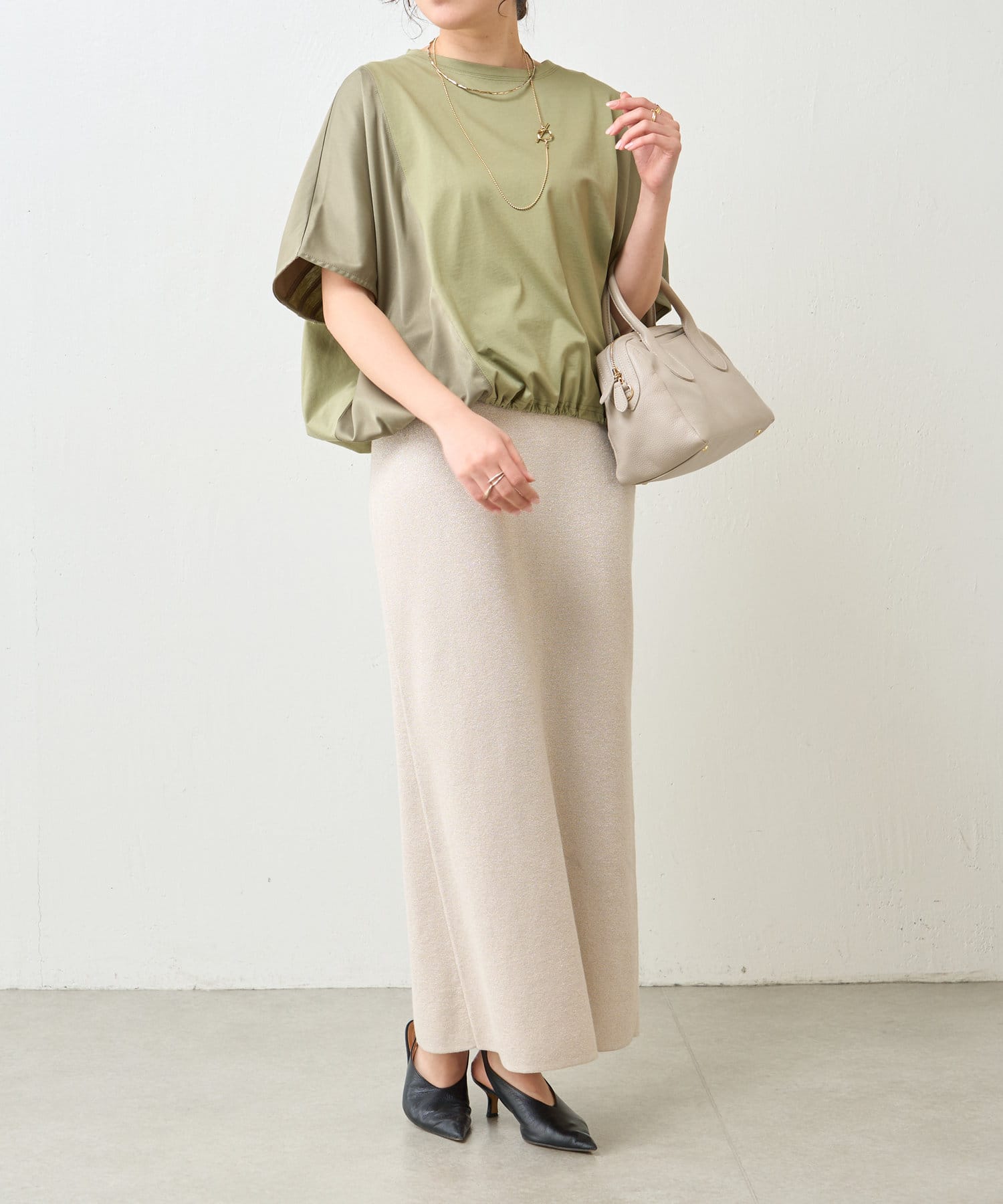 ・シンプルな黒のロングスカートと合わせて、大人上品なスタイルに。