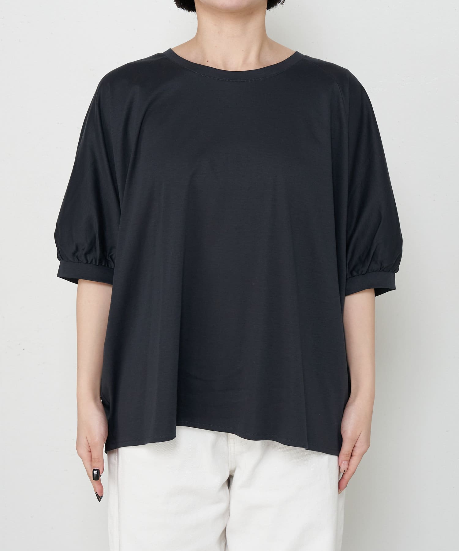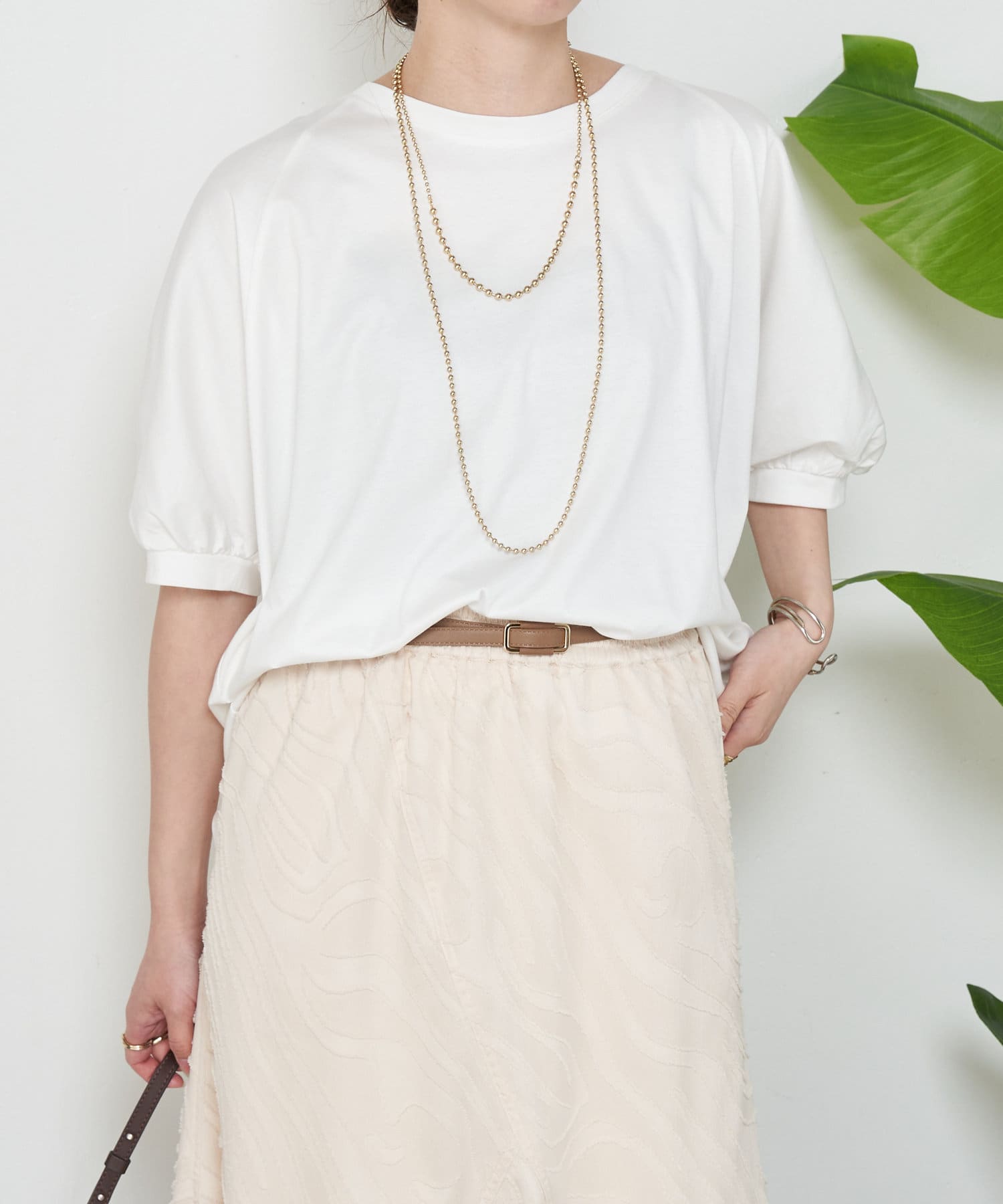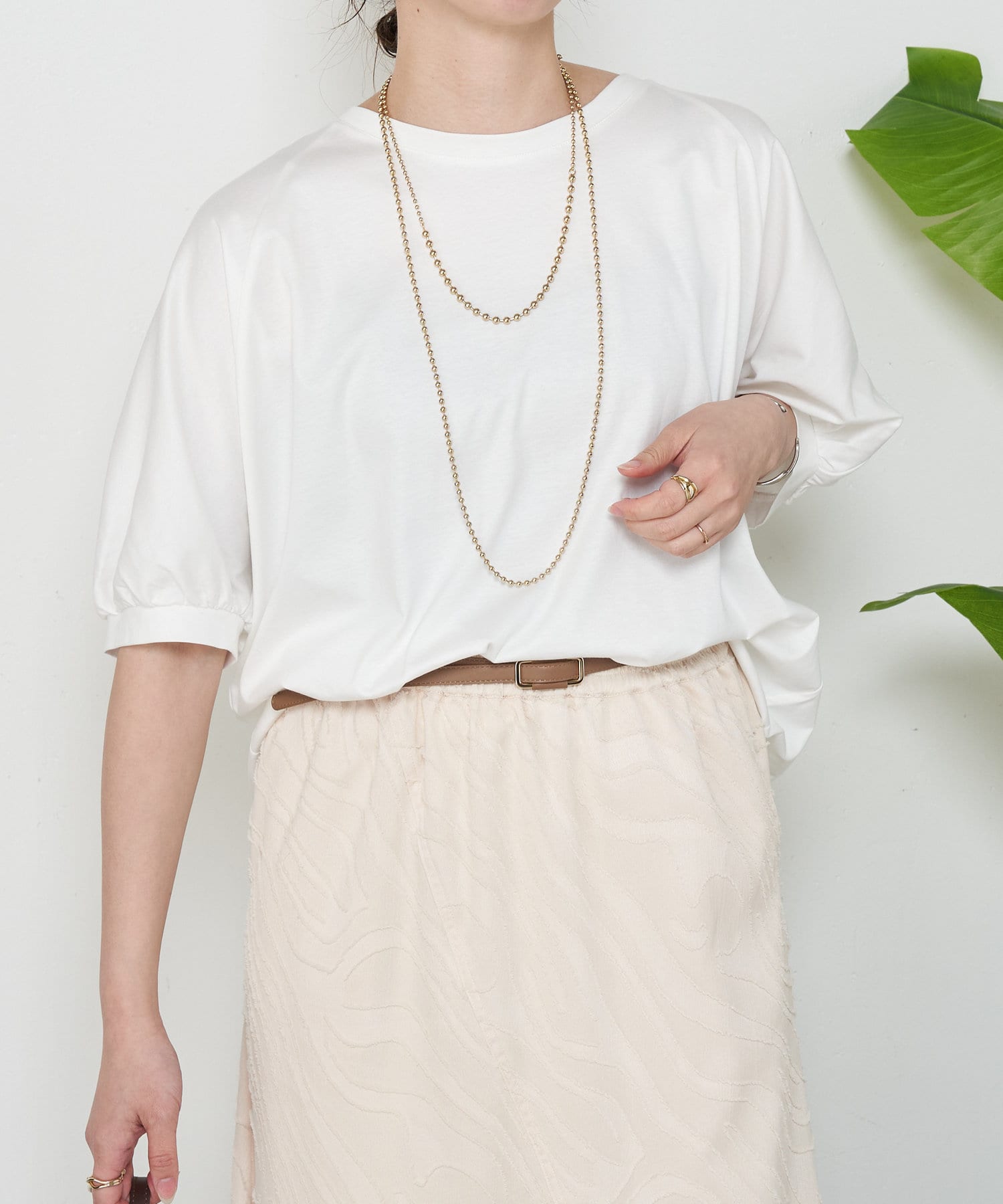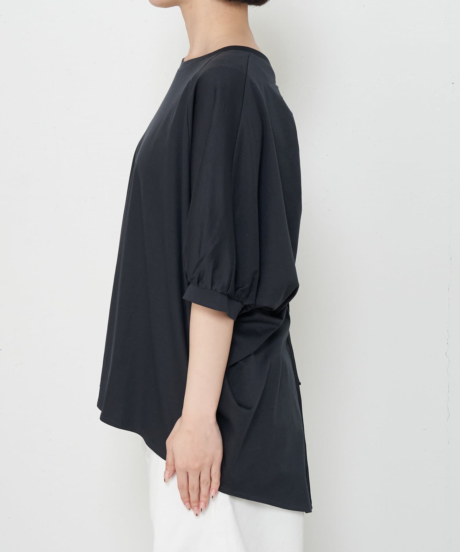 ・フロントはシンプルで着回しやすく、どんなボトムスとも相性抜群ながらバックの抜け感がポイントに。