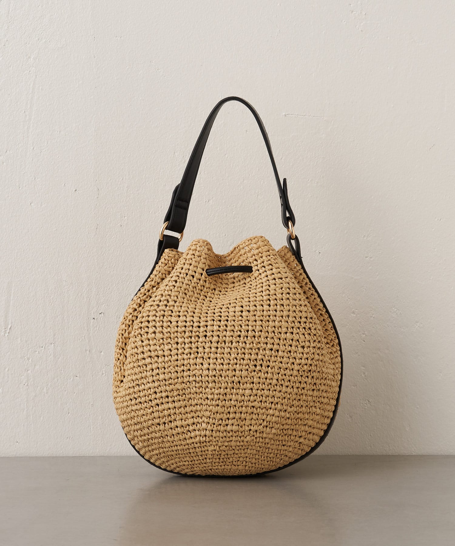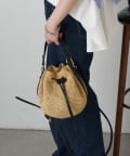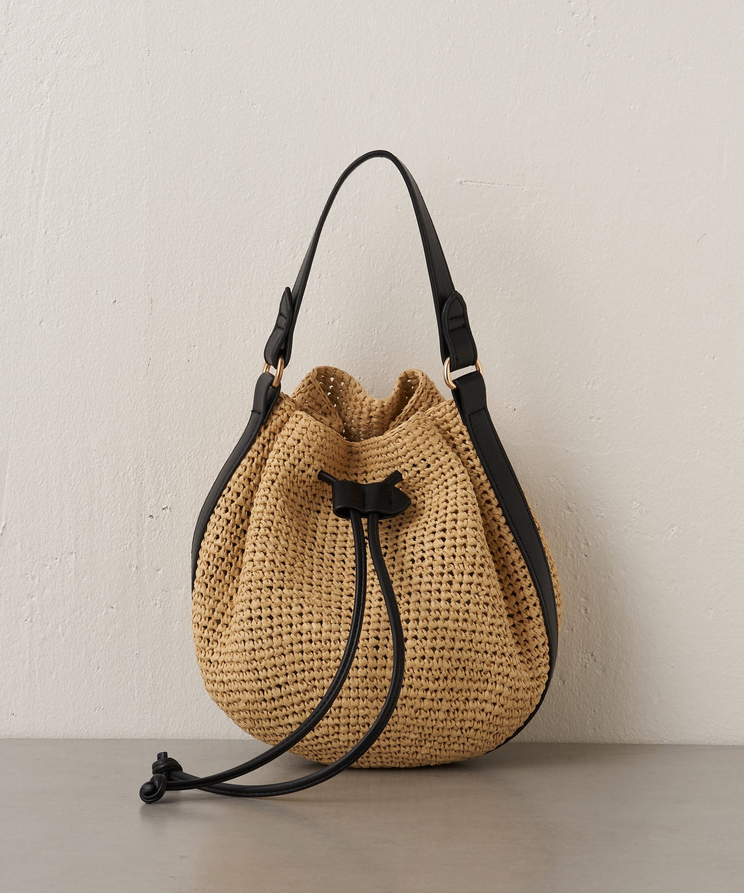 夏の装いを彩る、ラフィア素材の巾着バッグ