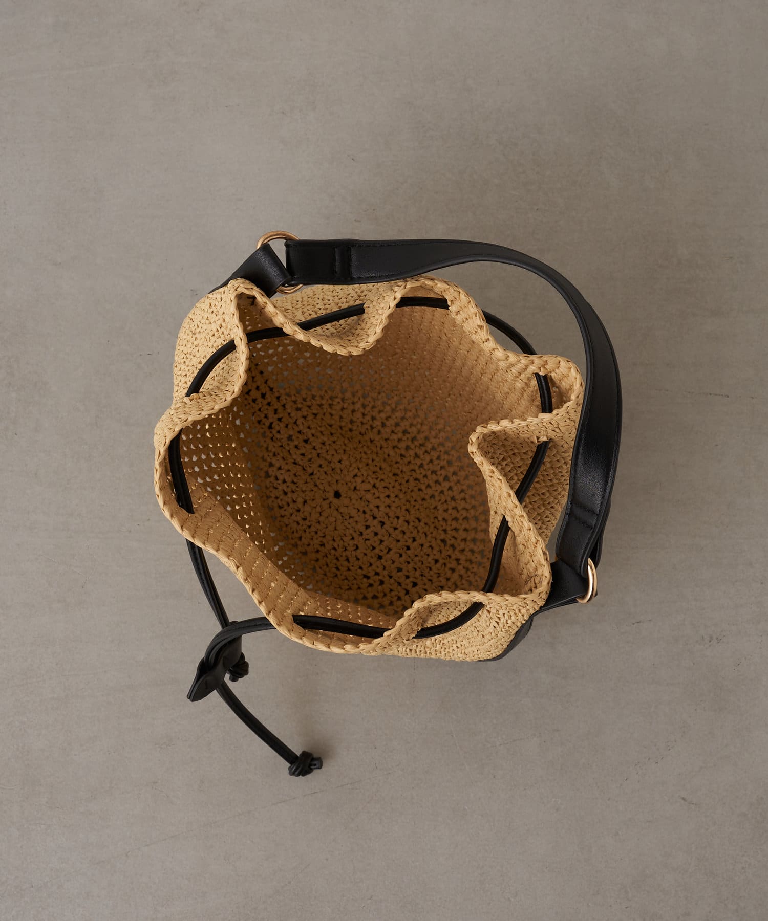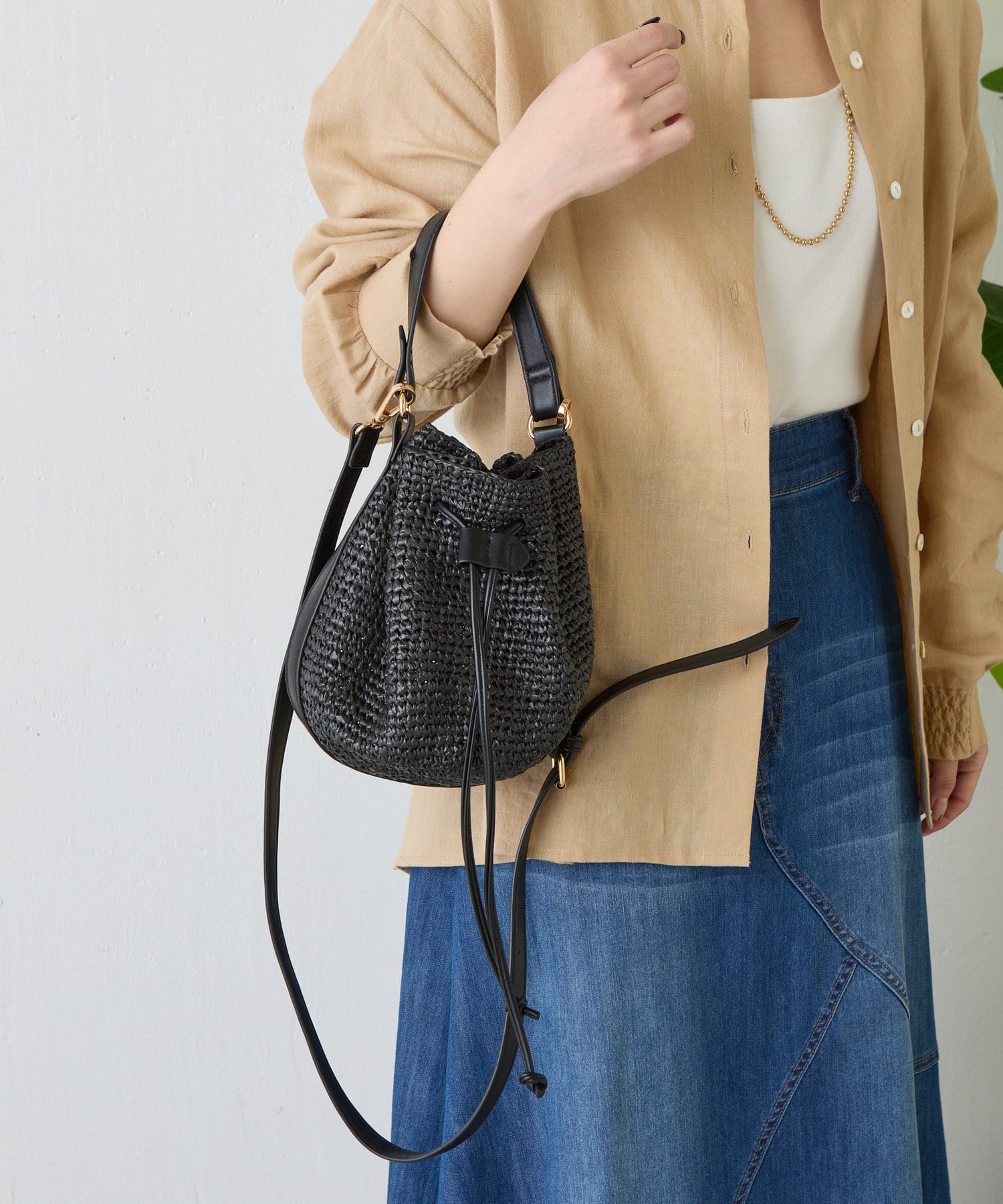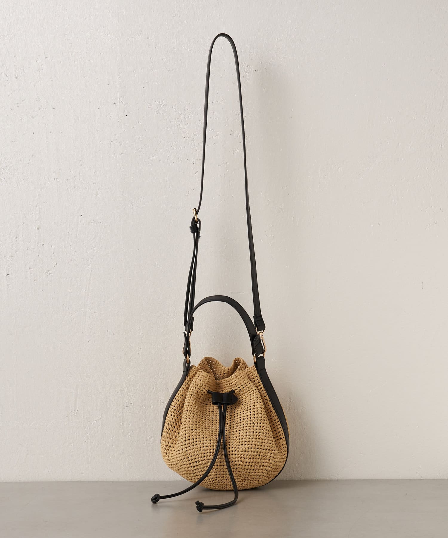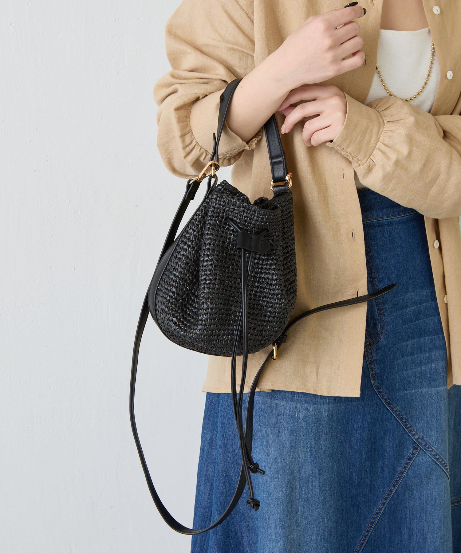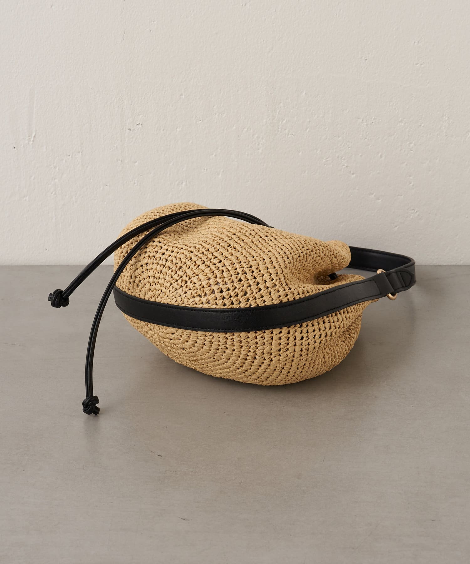 ・丈夫で柔らかさのある上品なラフィア素材の巾着デザイン。