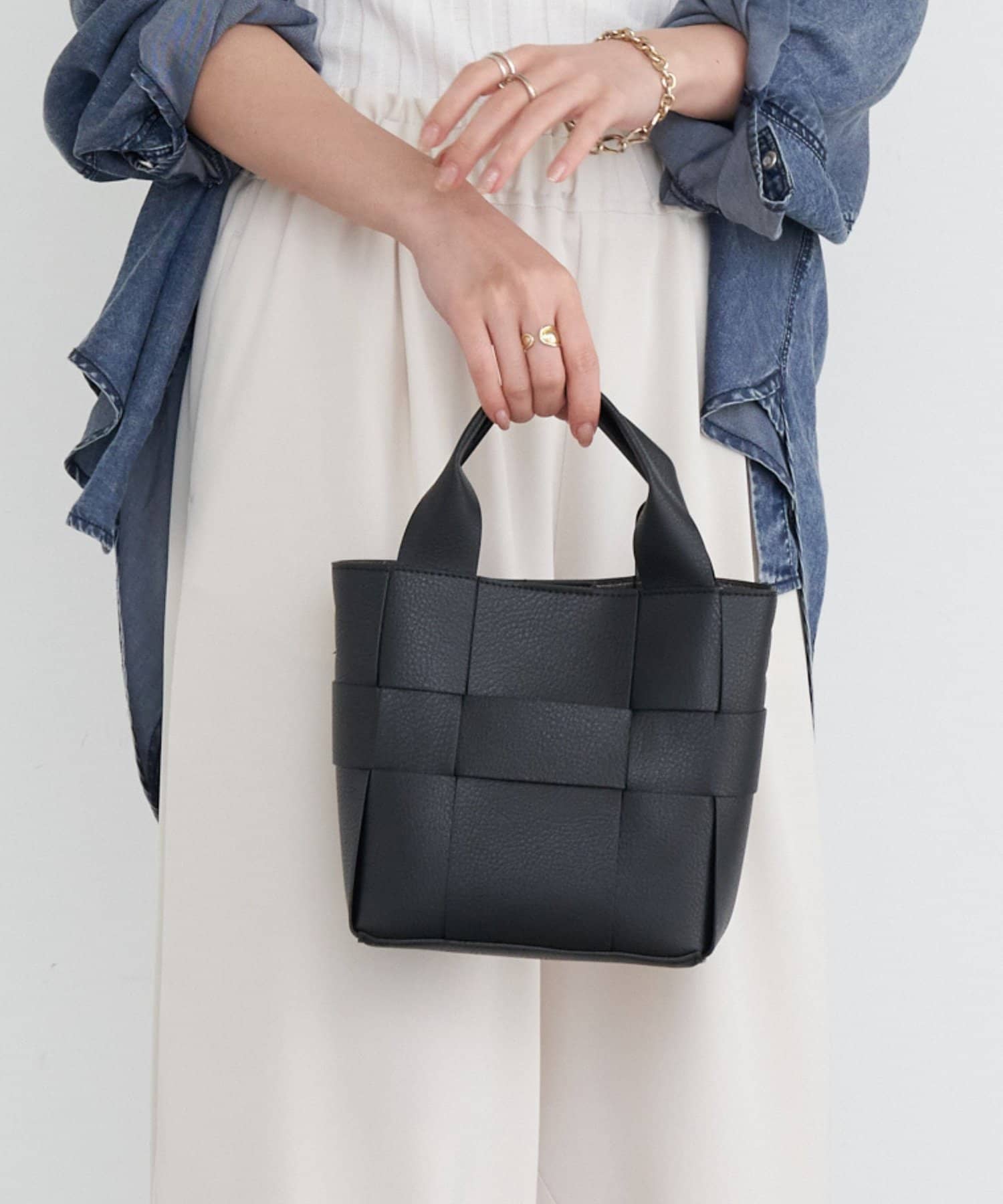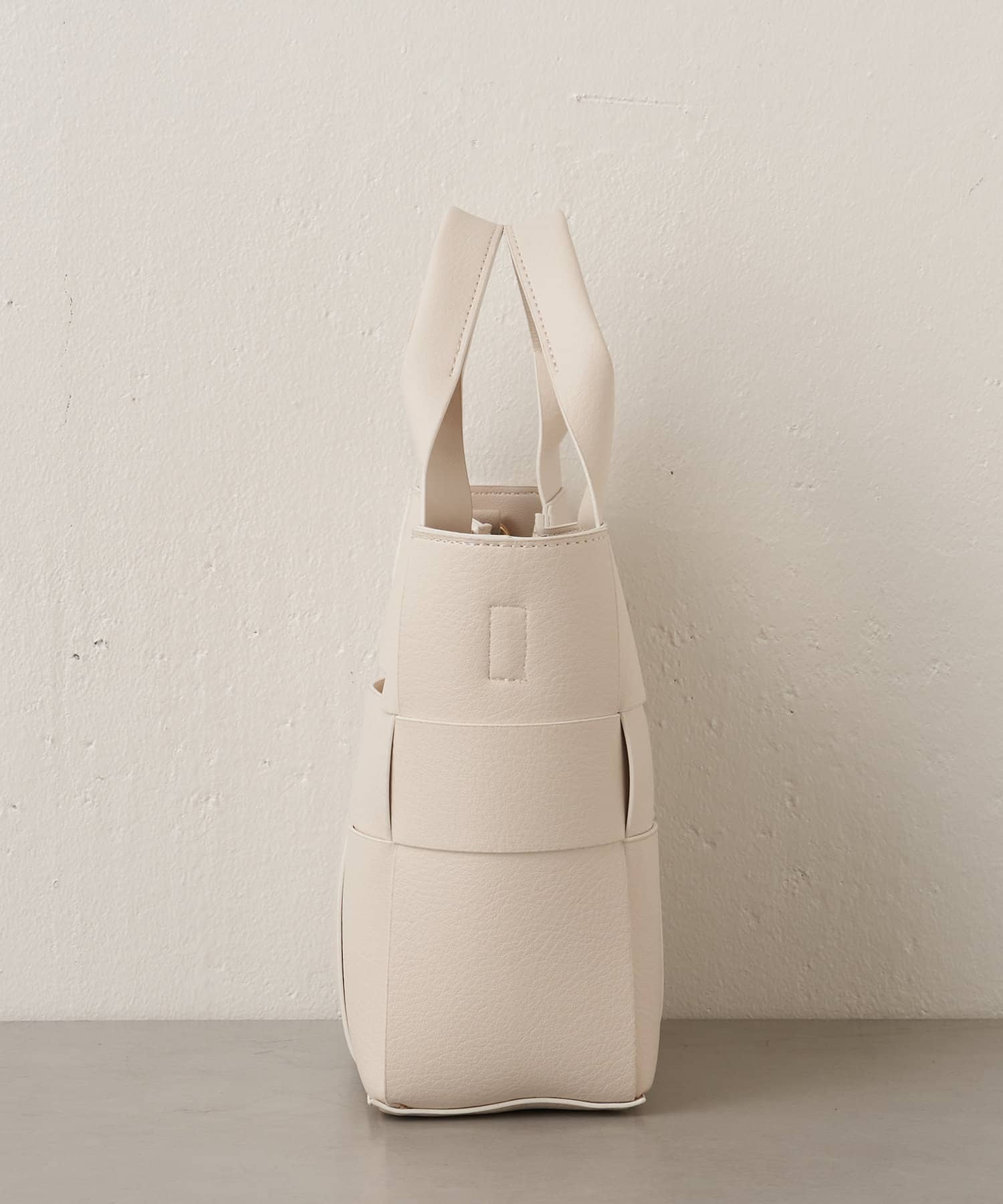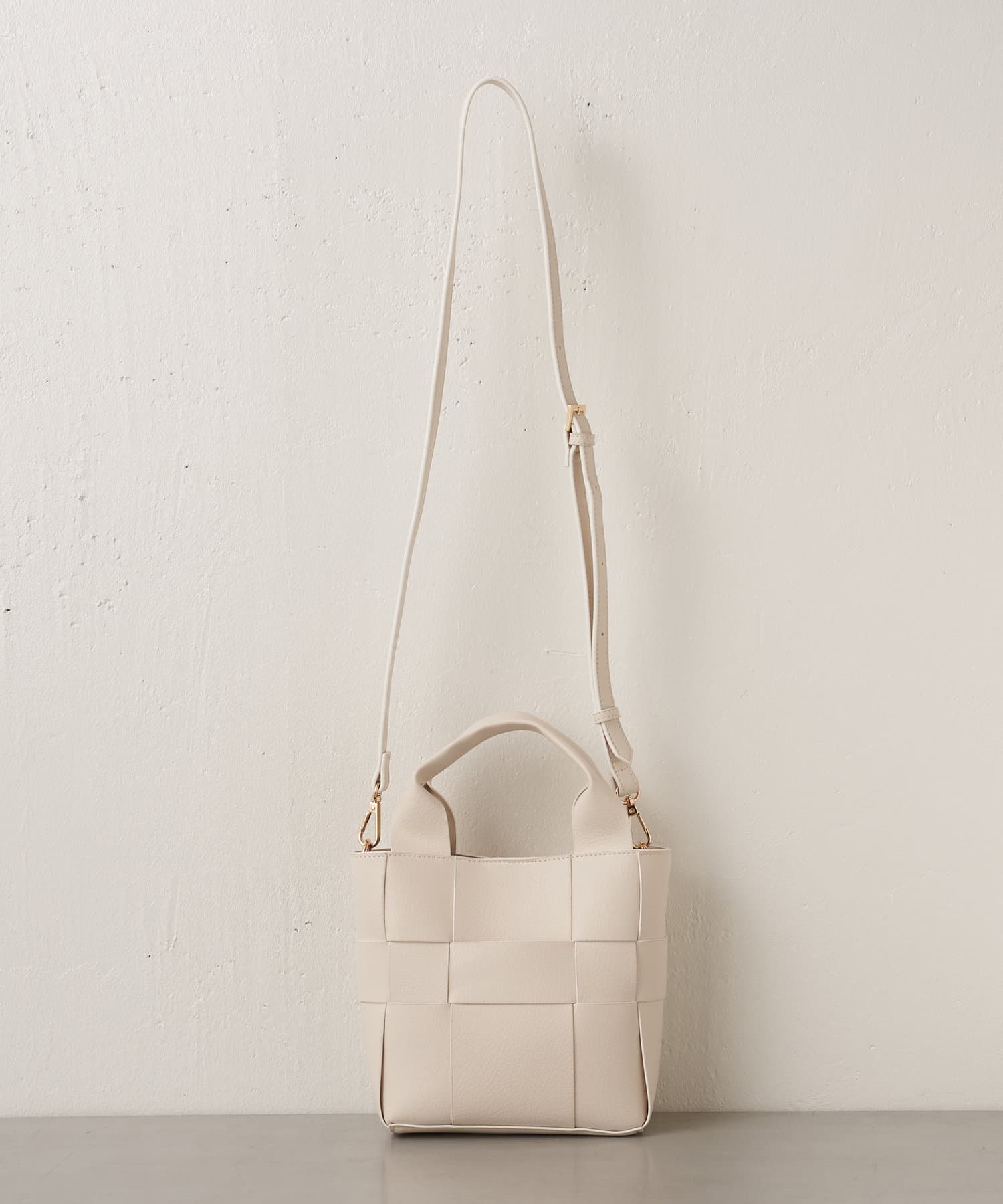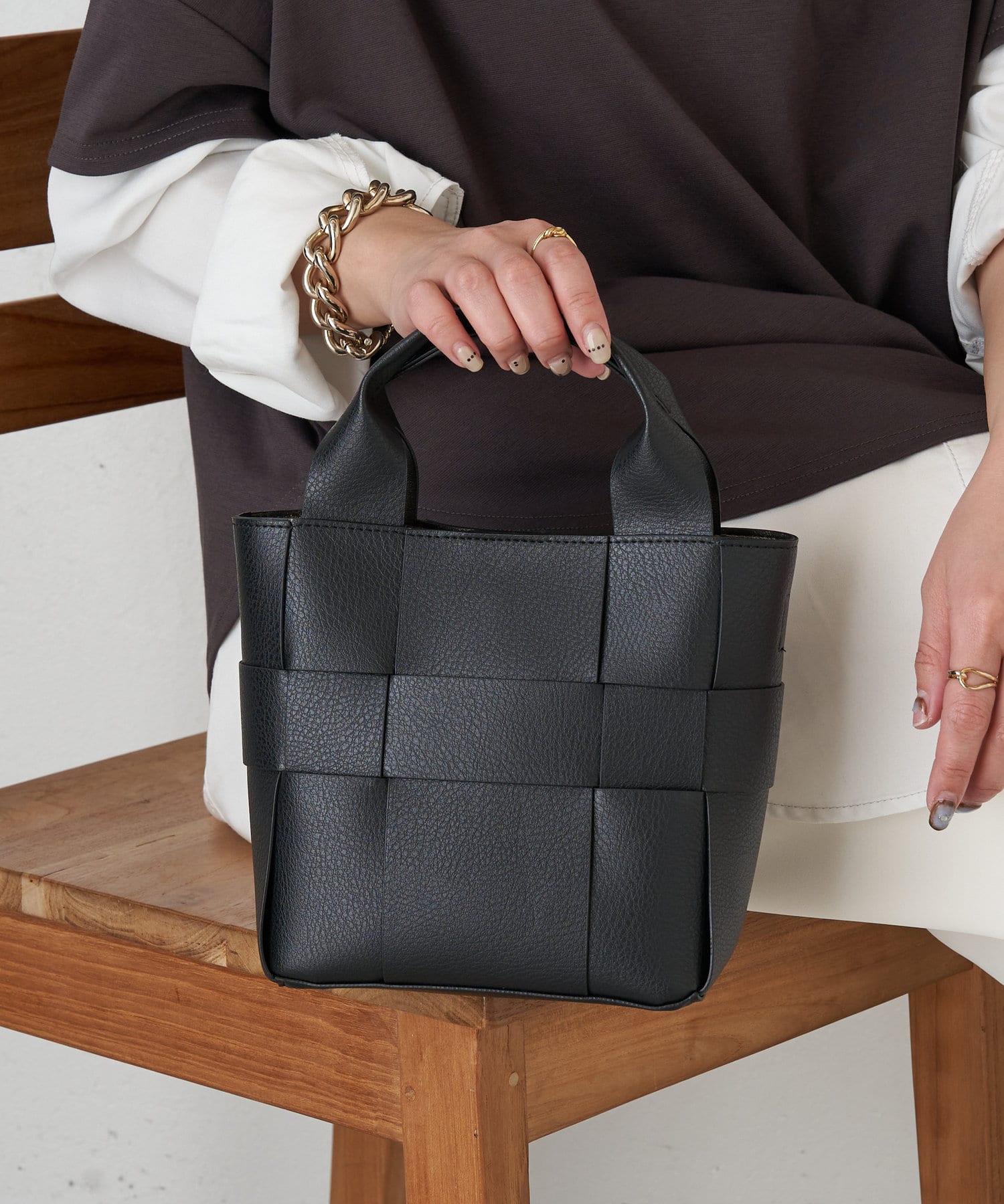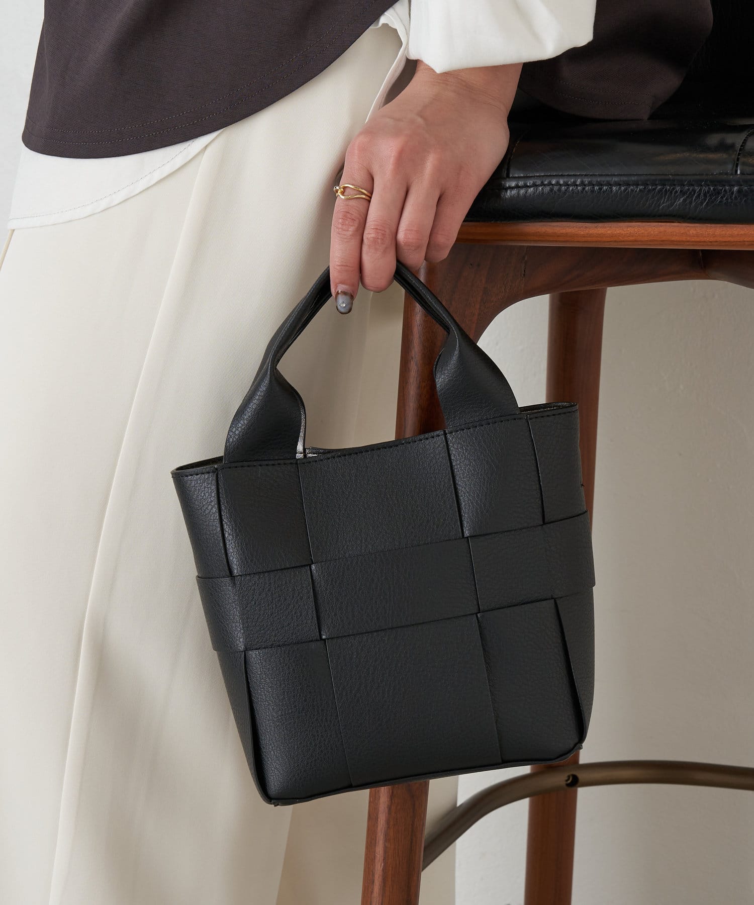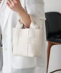 ・高品質なフェイクレザーを使用し、編み込みのデザインが上品なデザインの4way巾着バッグ。