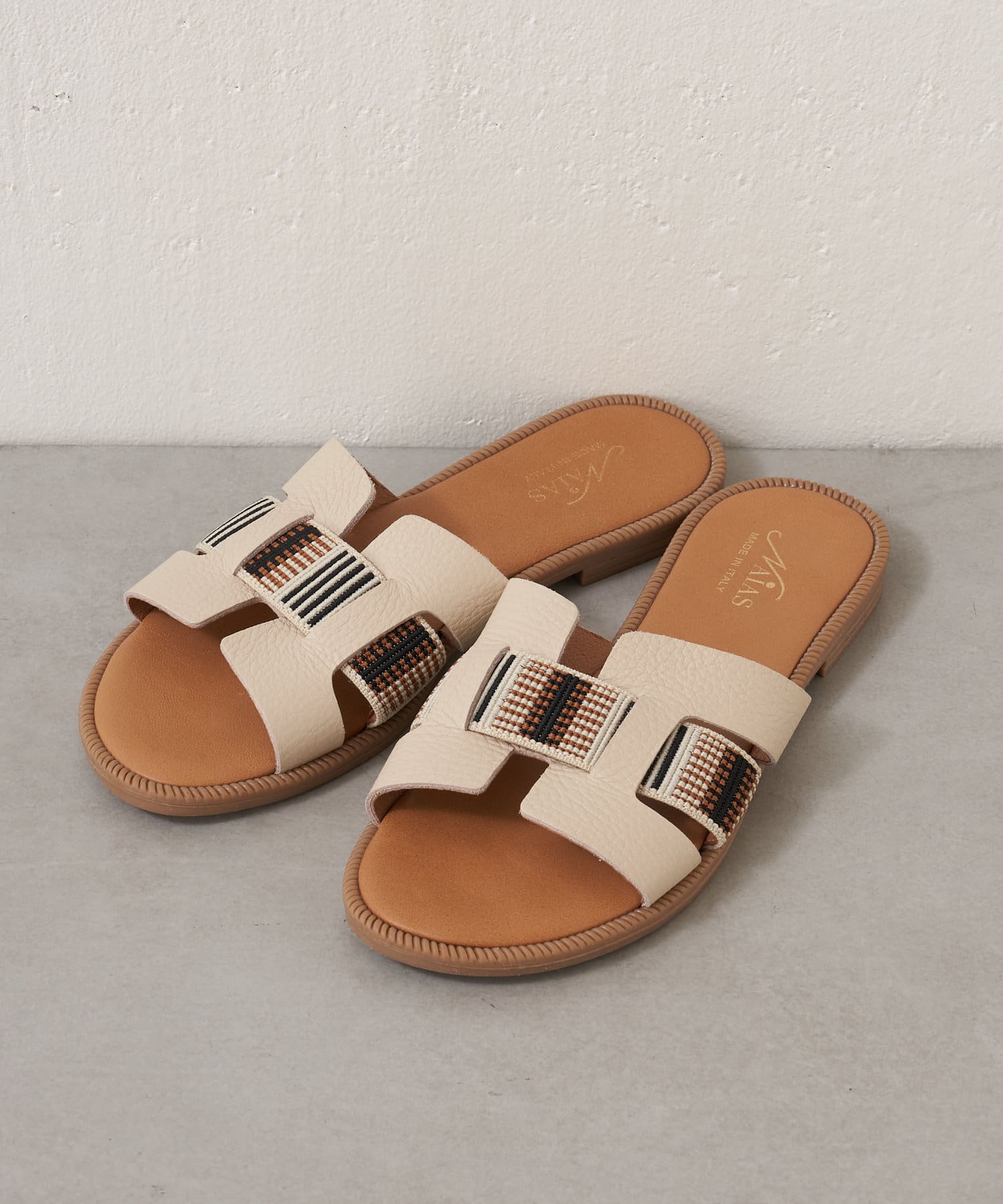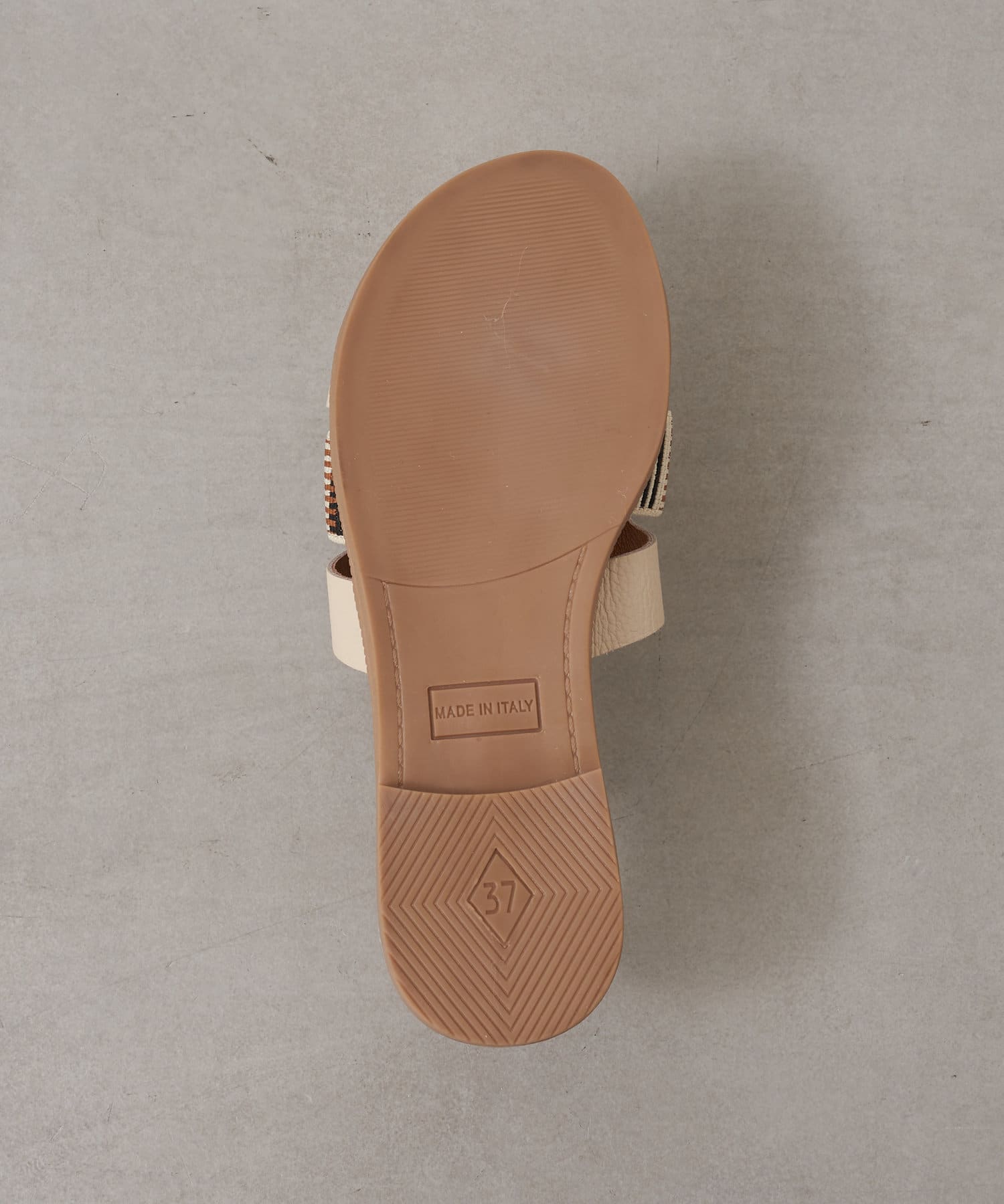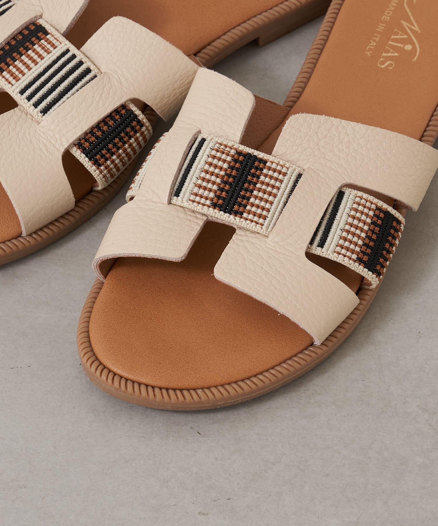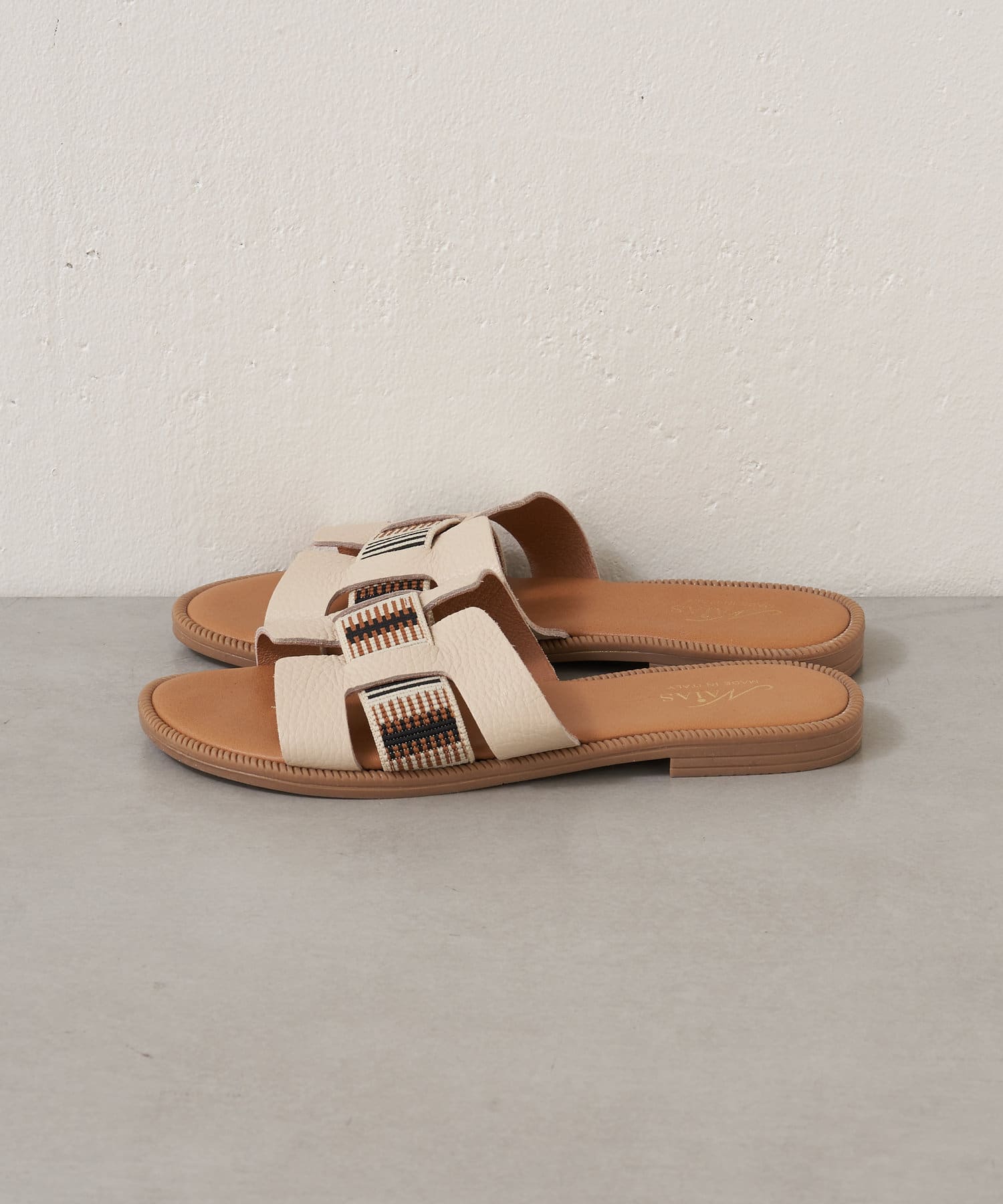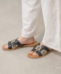 ・存在感のあるアッパーの刺繍デザインがポイントのサンダル。