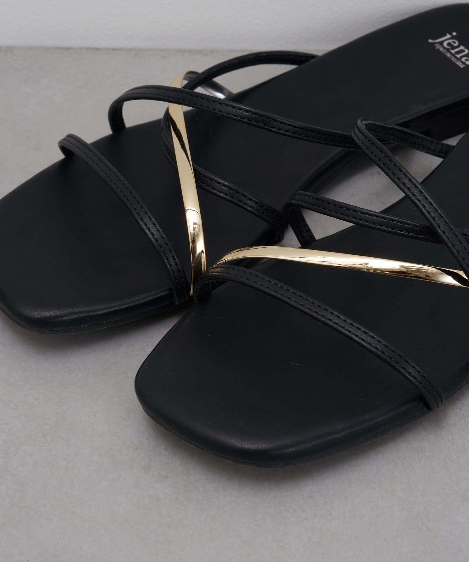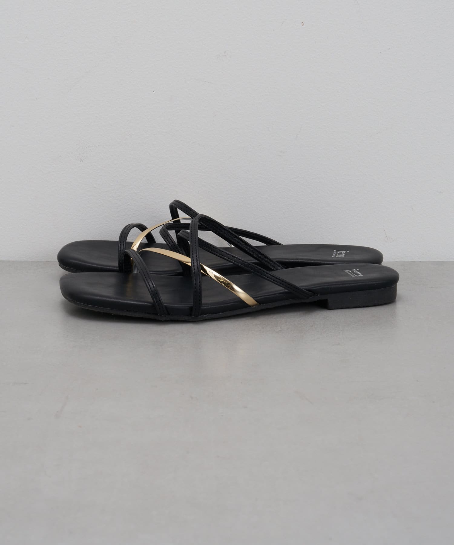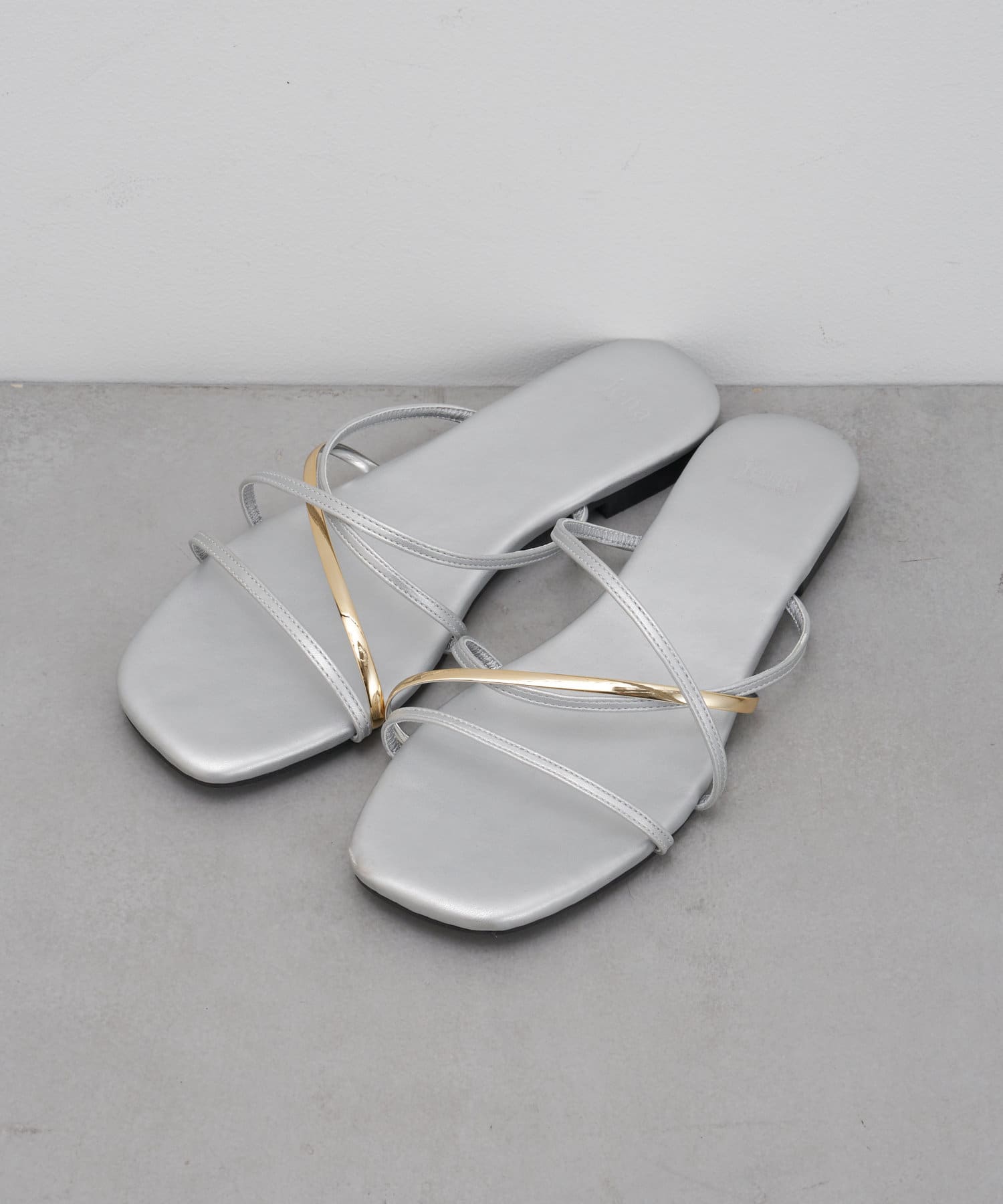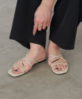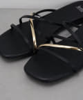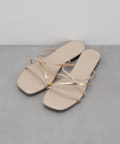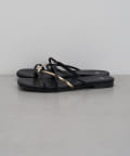 ・存在感のあるゴールドのストラップが足元を彩る主役級フラットサンダル。