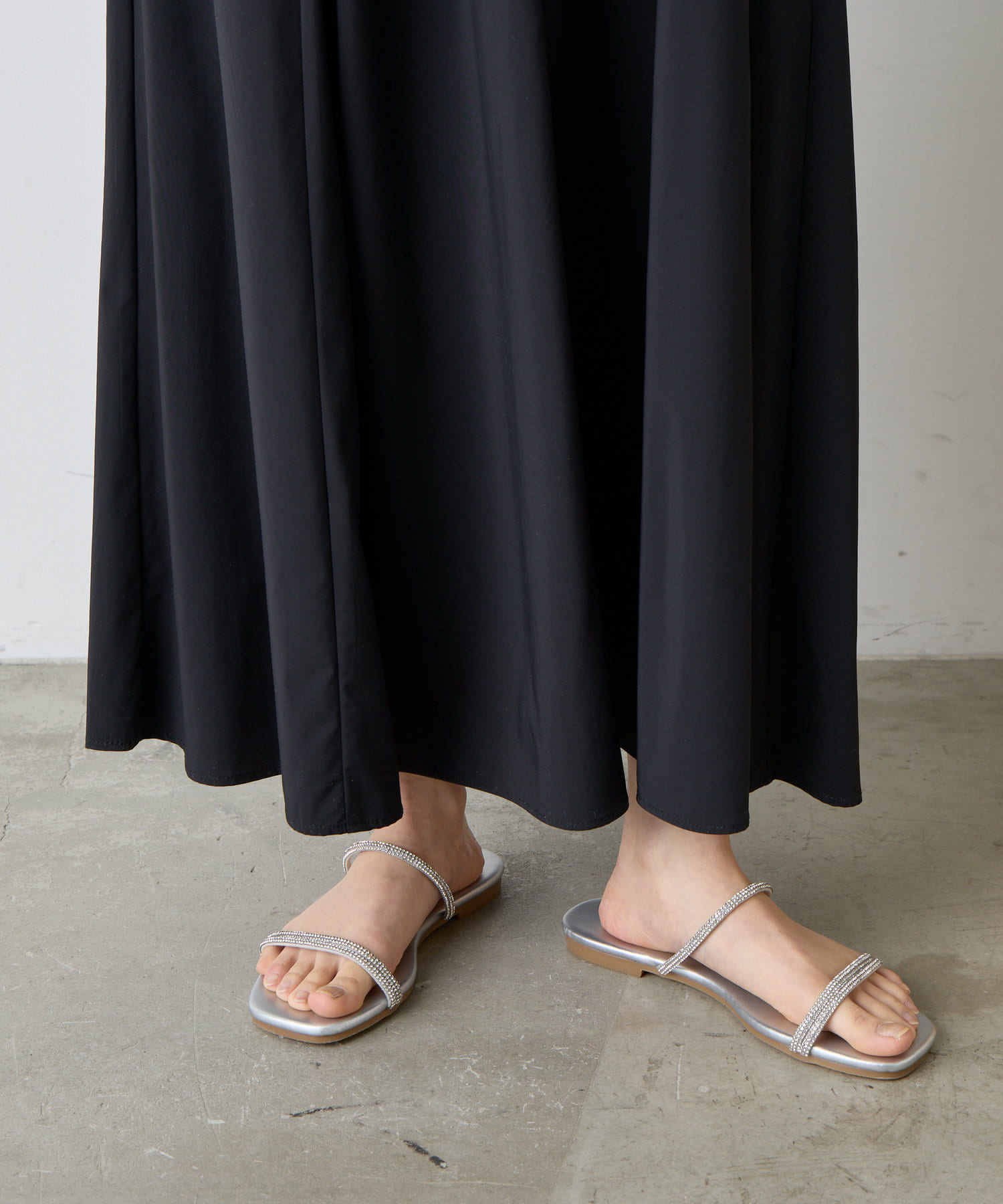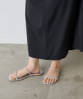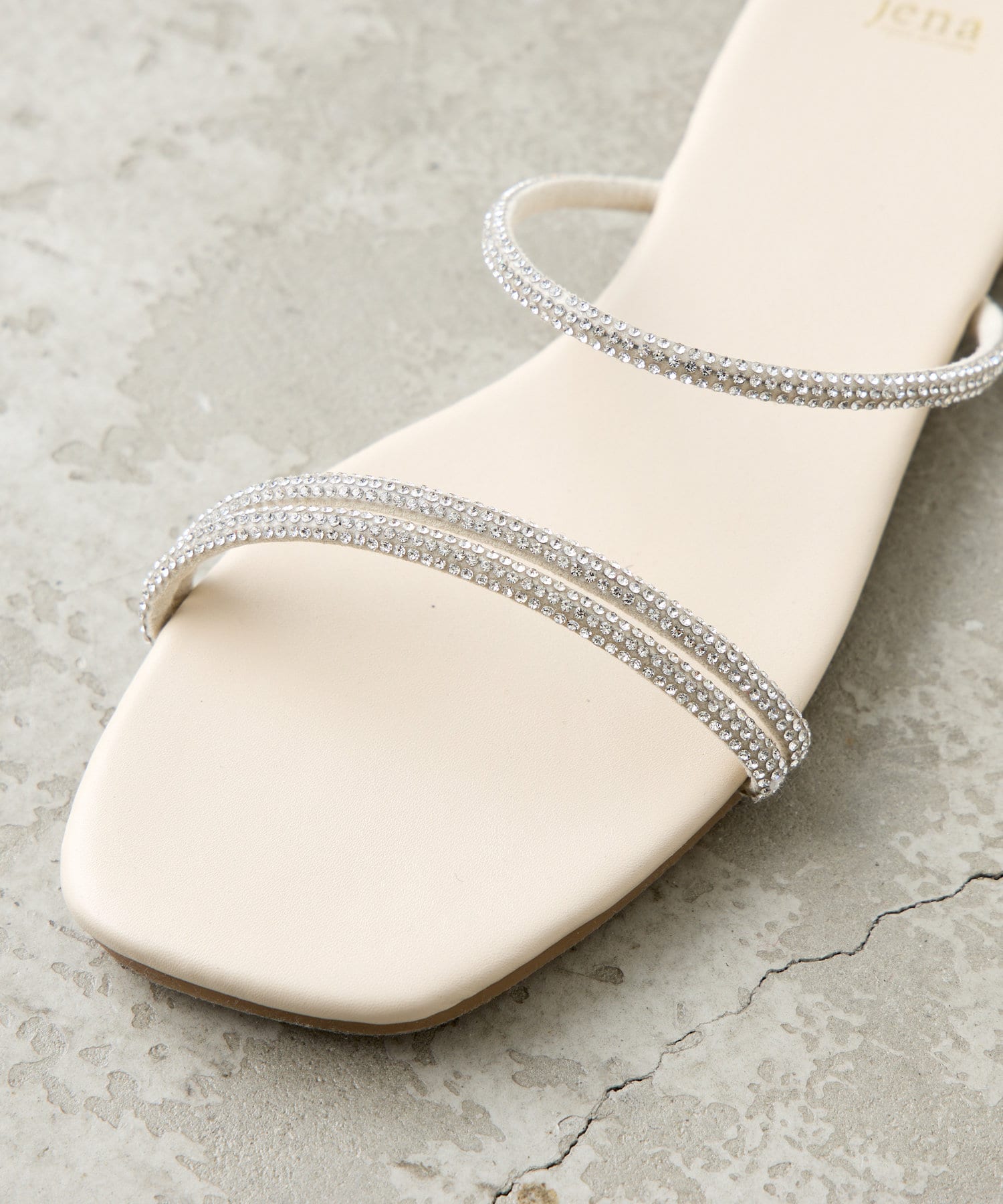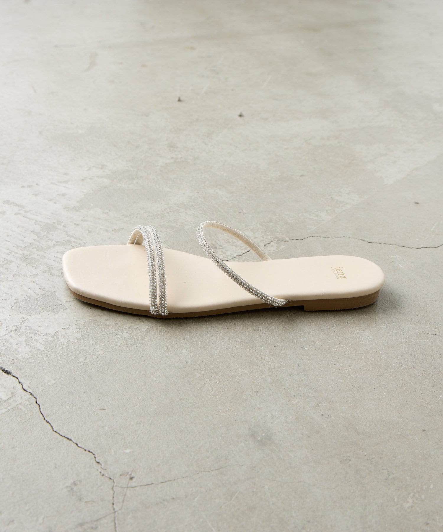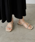 ・煌びやかで繊細なラインストーンを使用した着脱しやすいフラットサンダル。