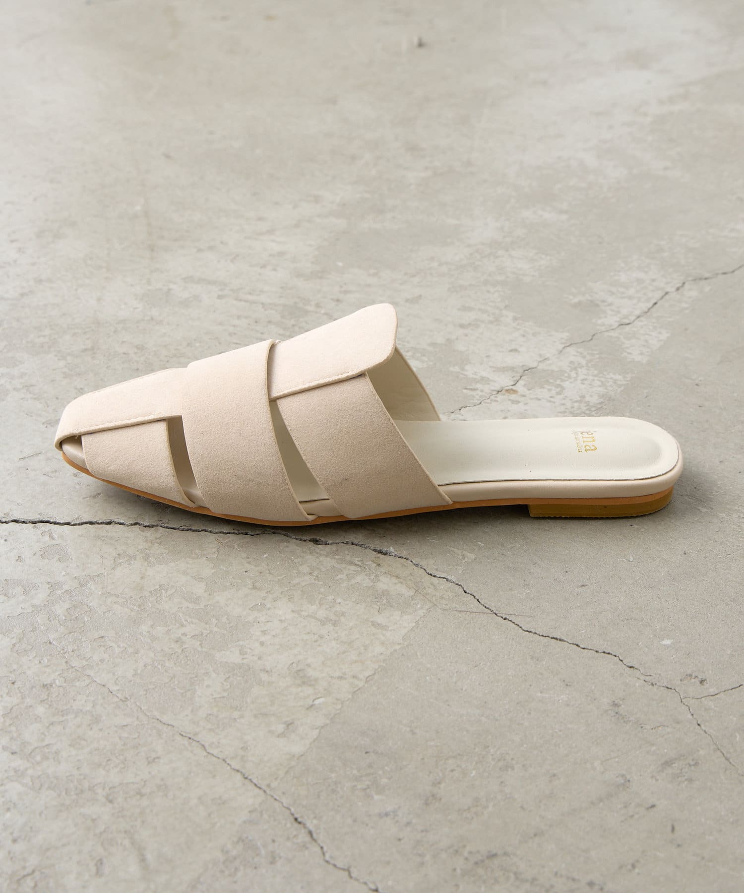 ・ベージュのカラーはスエード生地を使用。足元からこなれ感のある印象に仕上がります。