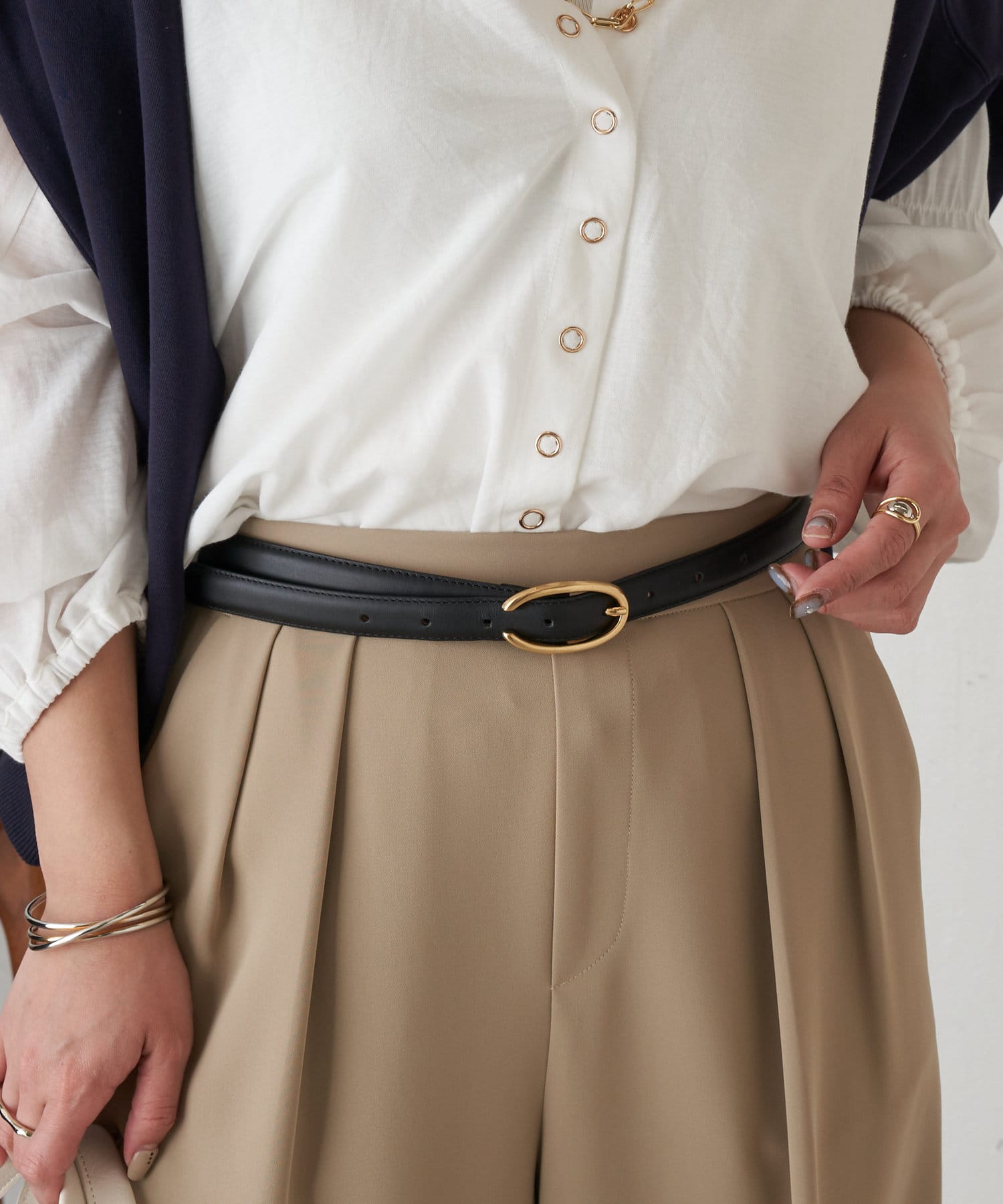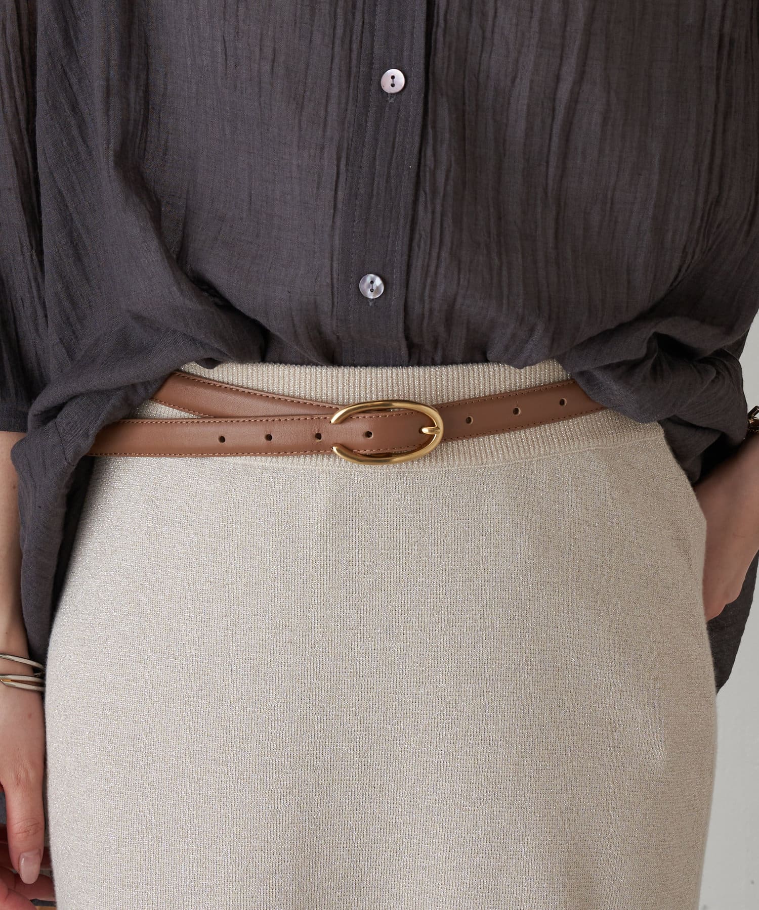 ・ニュアンスのオーバルバックルのデザインがコーディネートのアクセントになります。