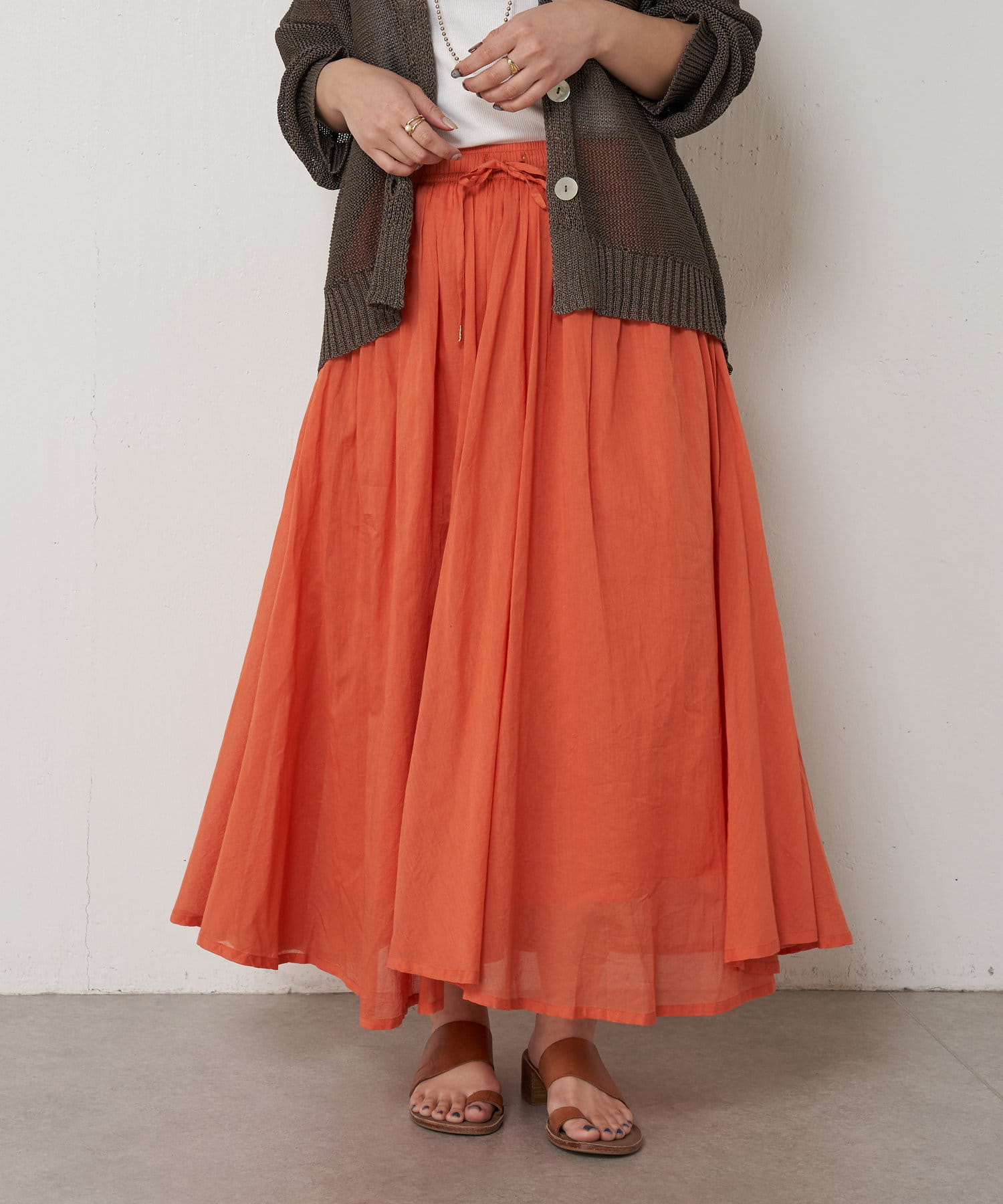 綿ボイルギャザーフレアスカート
