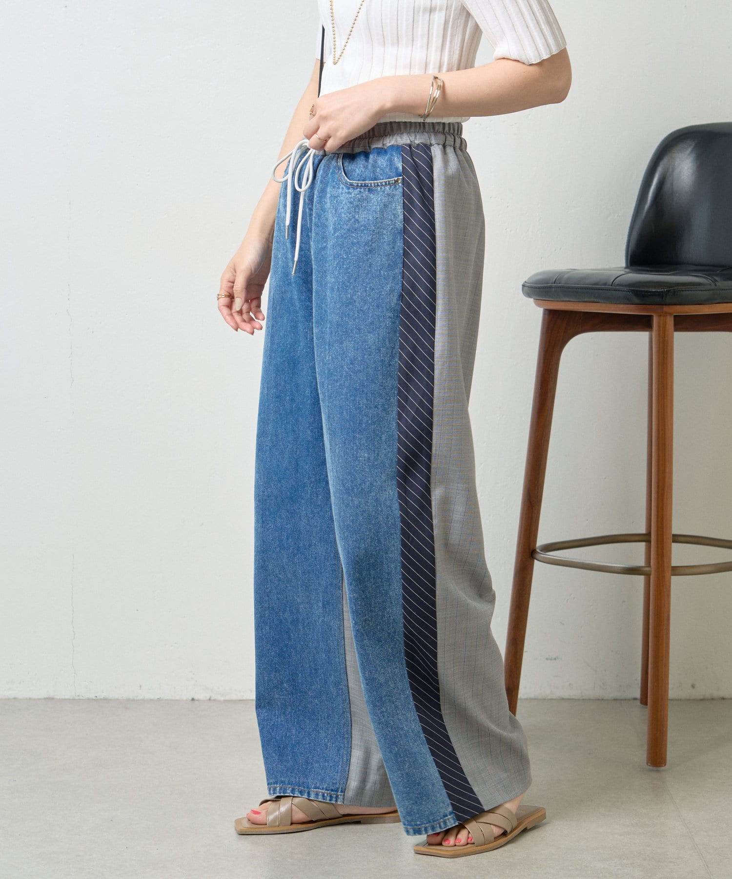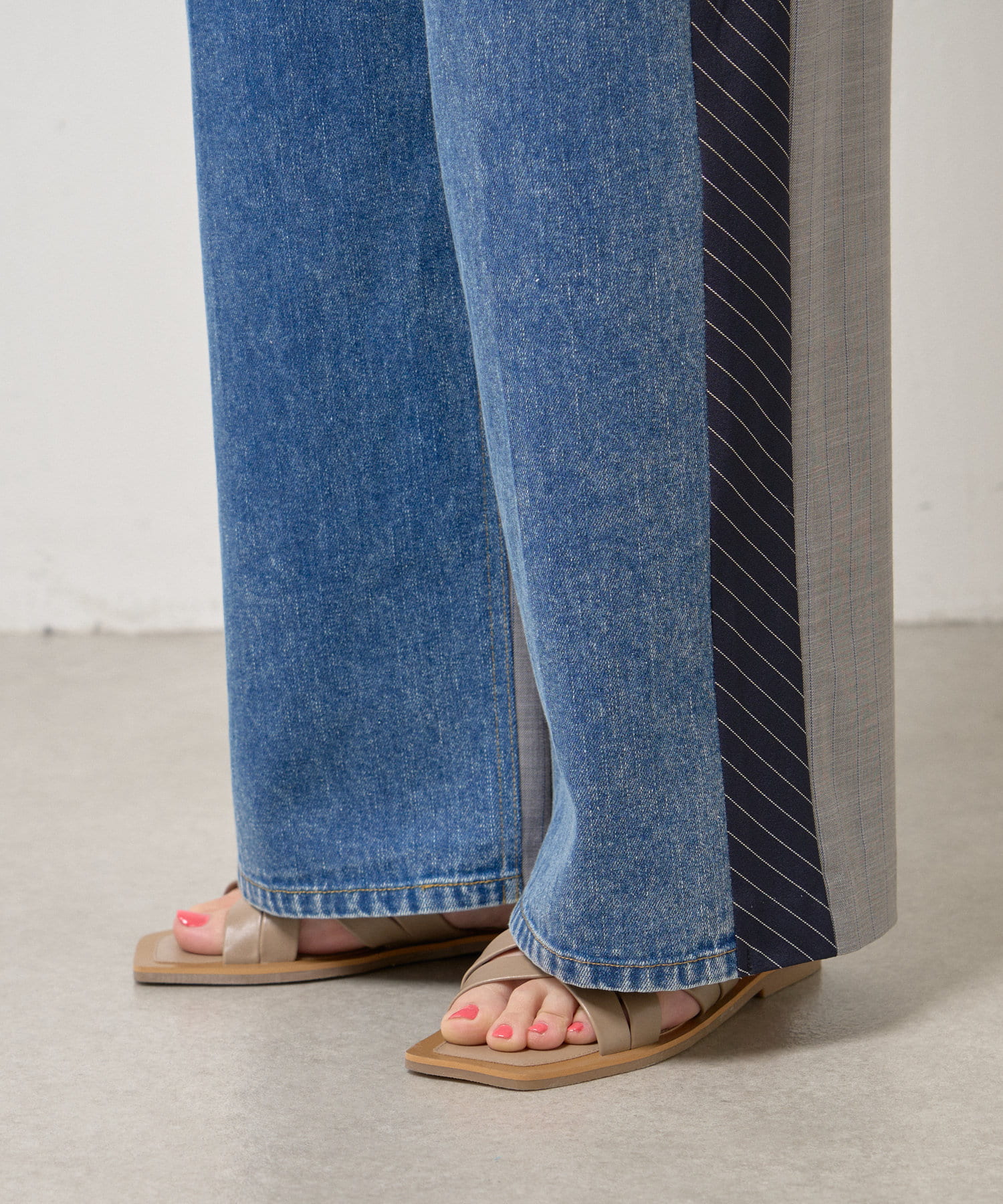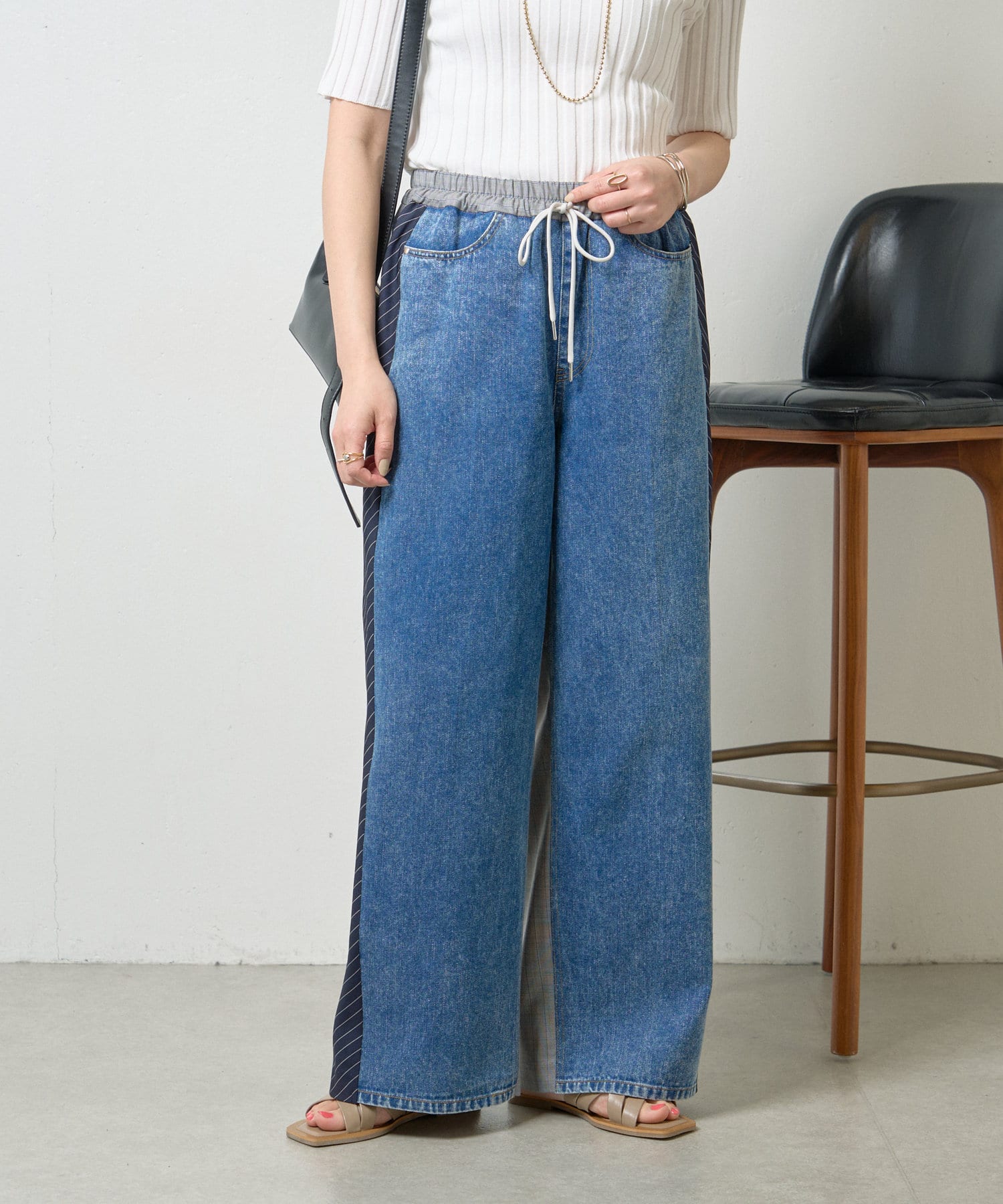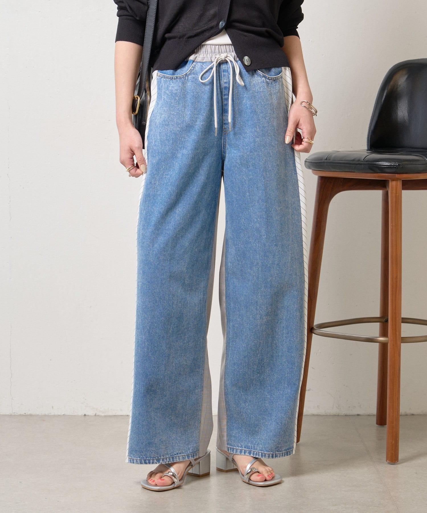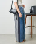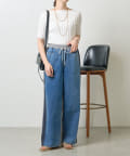 ・ゆったりとしたワイドデニムですが、太めのサイドラインが脚をすっきりと見せてくれます。