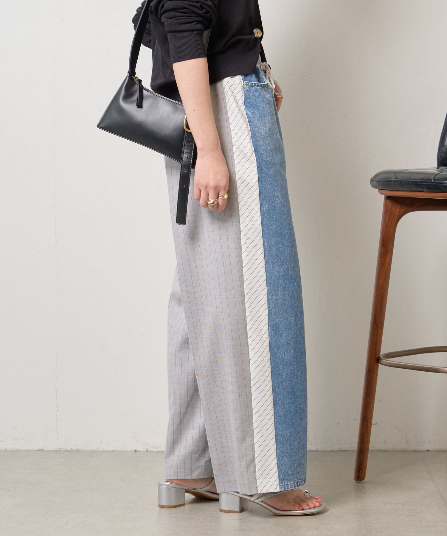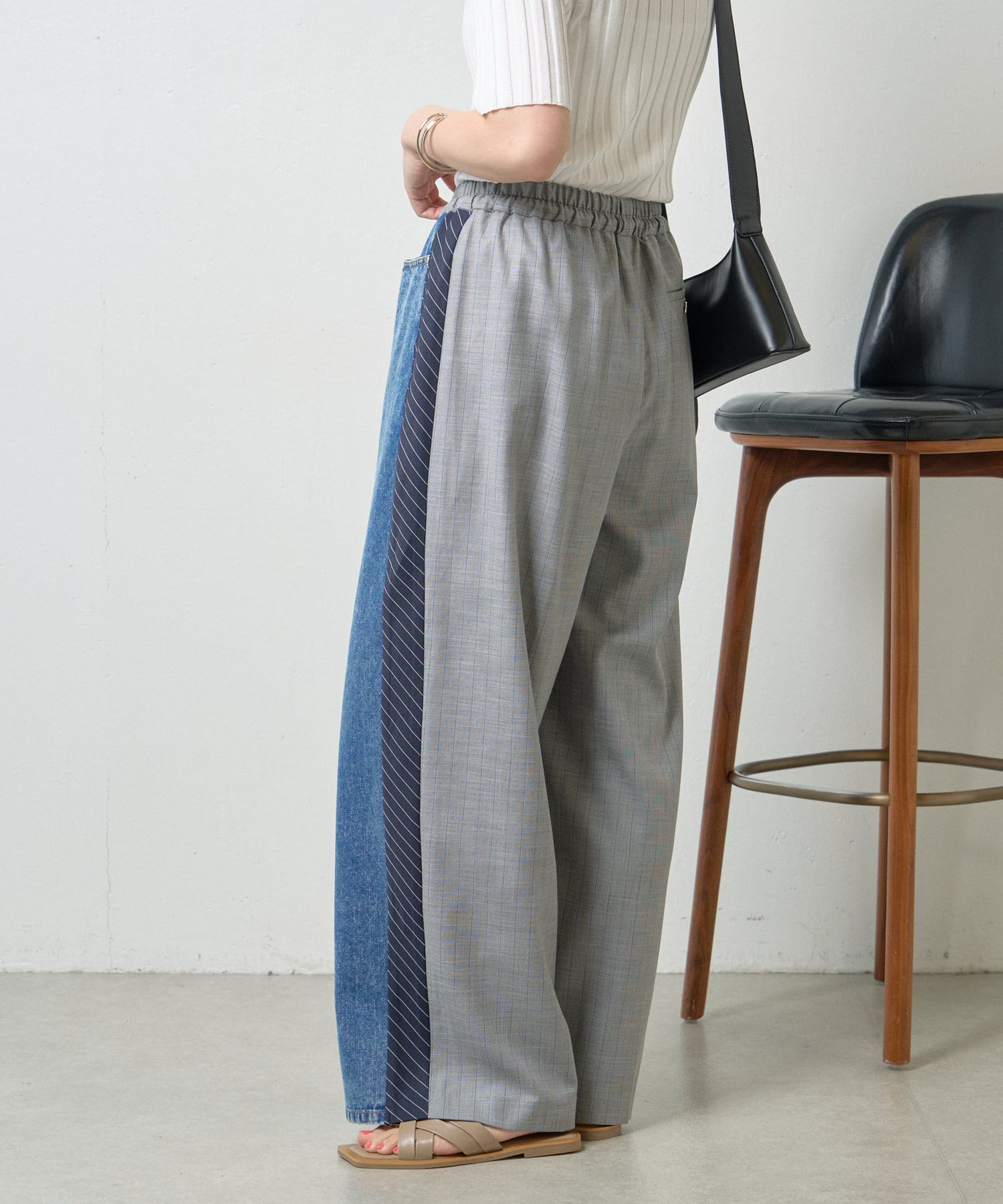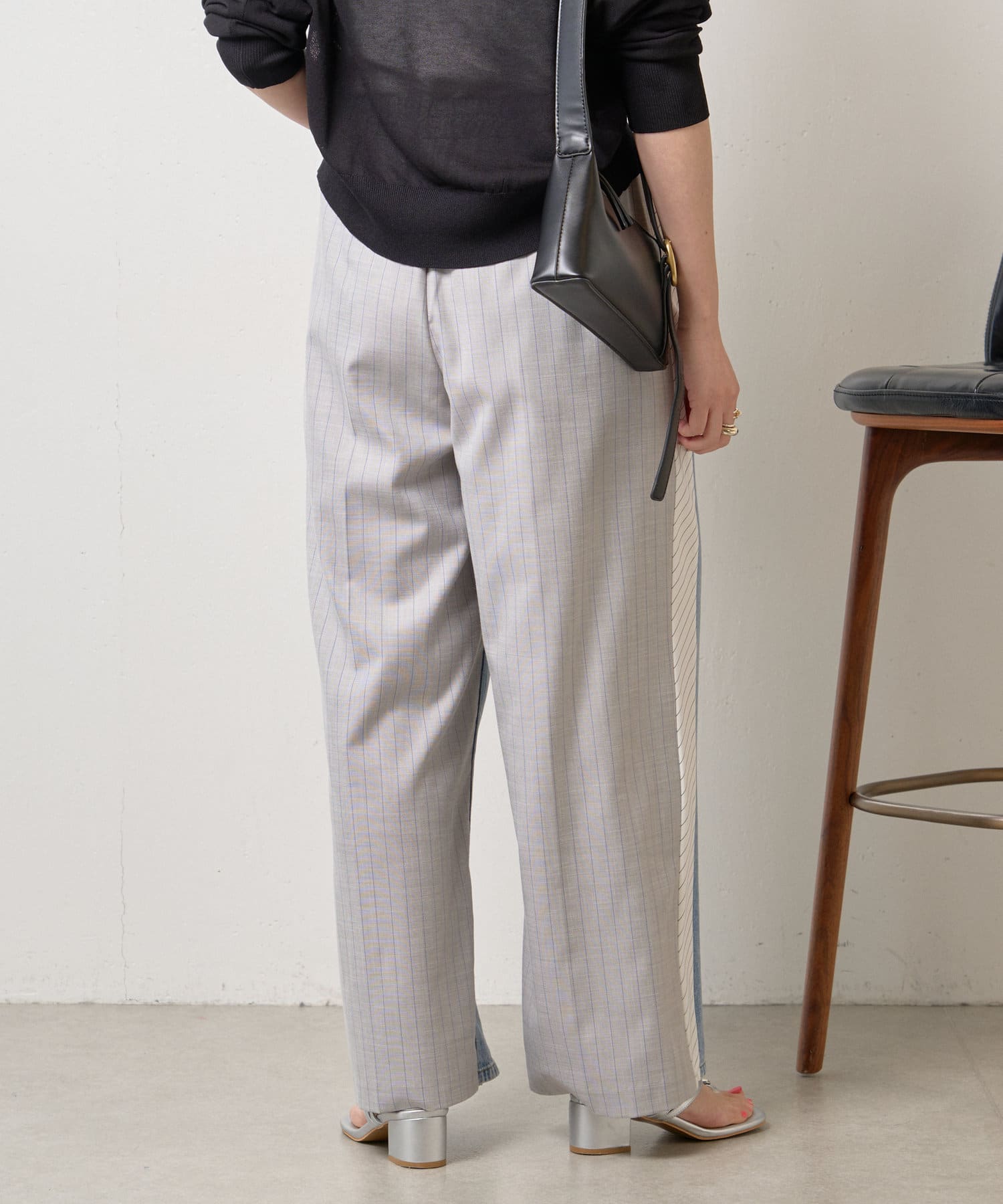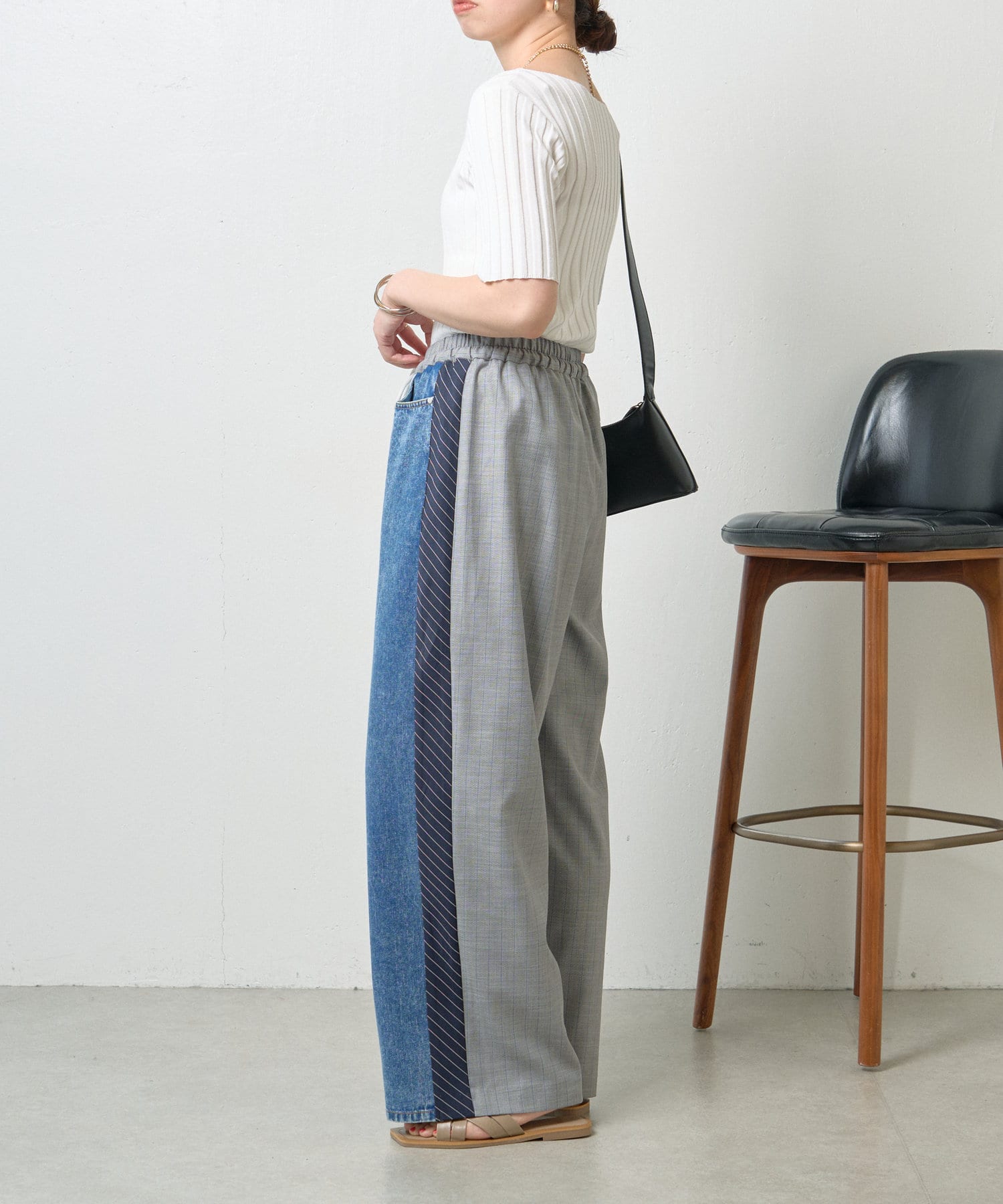 ・ゆったりとしたワイドデニムですが、太めのサイドラインが脚をすっきりと見せてくれます。