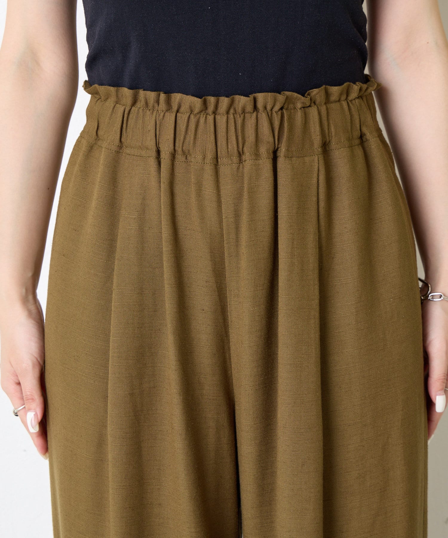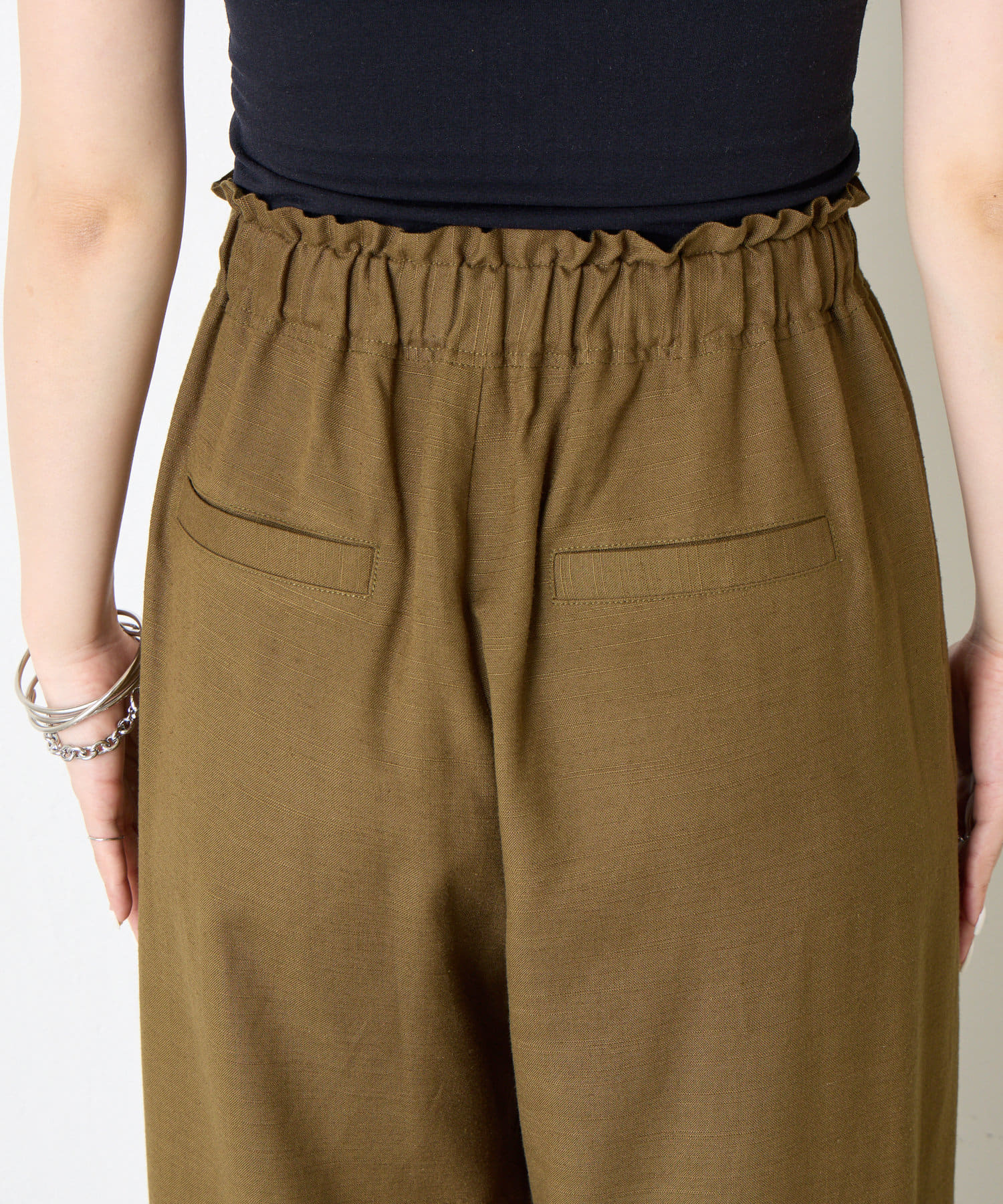 ・ウエストはゴムの仕様と内側には紐も通っているので、リラックス感がありながら調節も可能です。