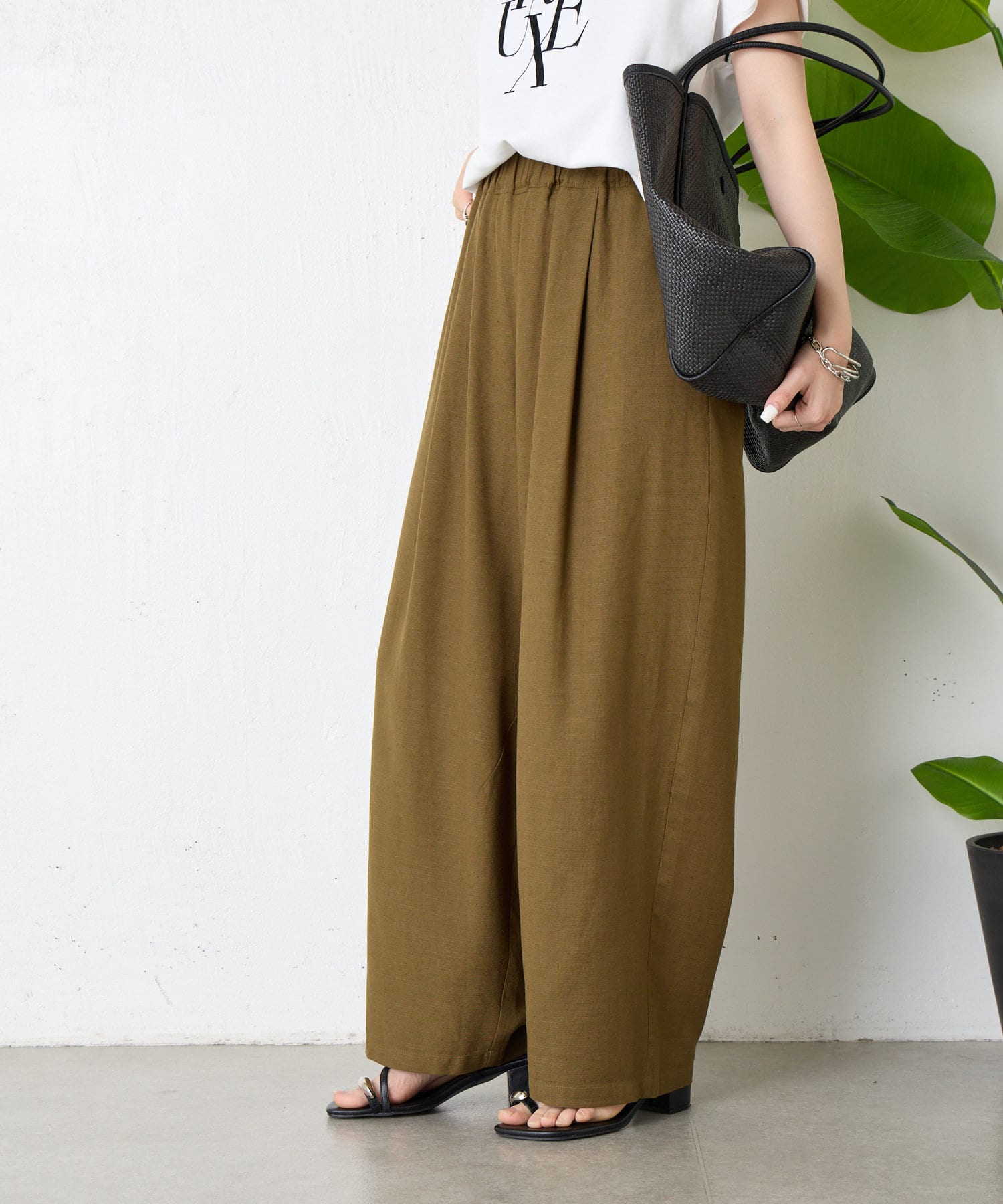 ・程よいボリューム感とカーブシルエットが新鮮な夏に向けたリネンパンツ。