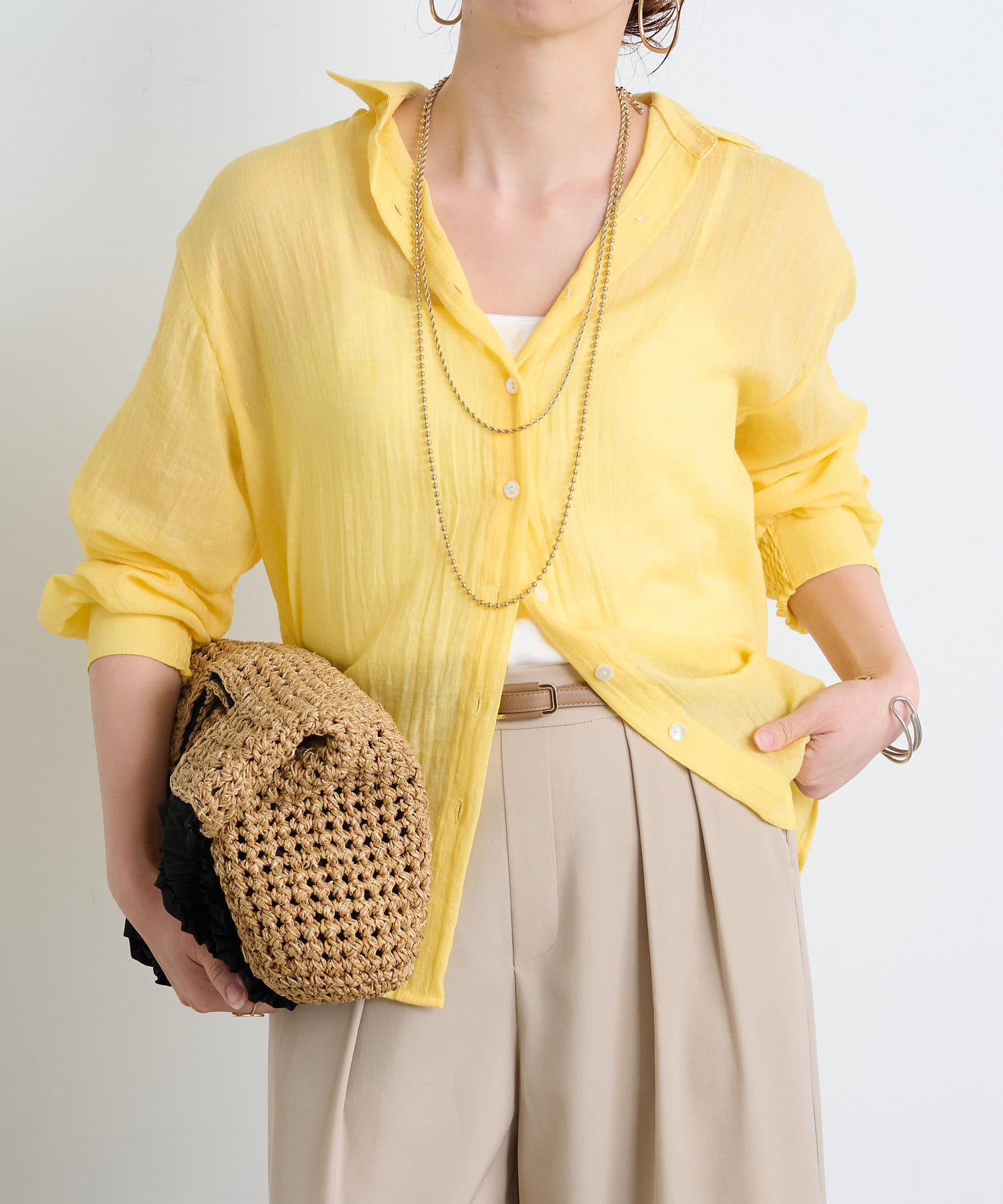 ・バッグデザインがこなれ感のあるガーゼ素材のオトナシャツ。