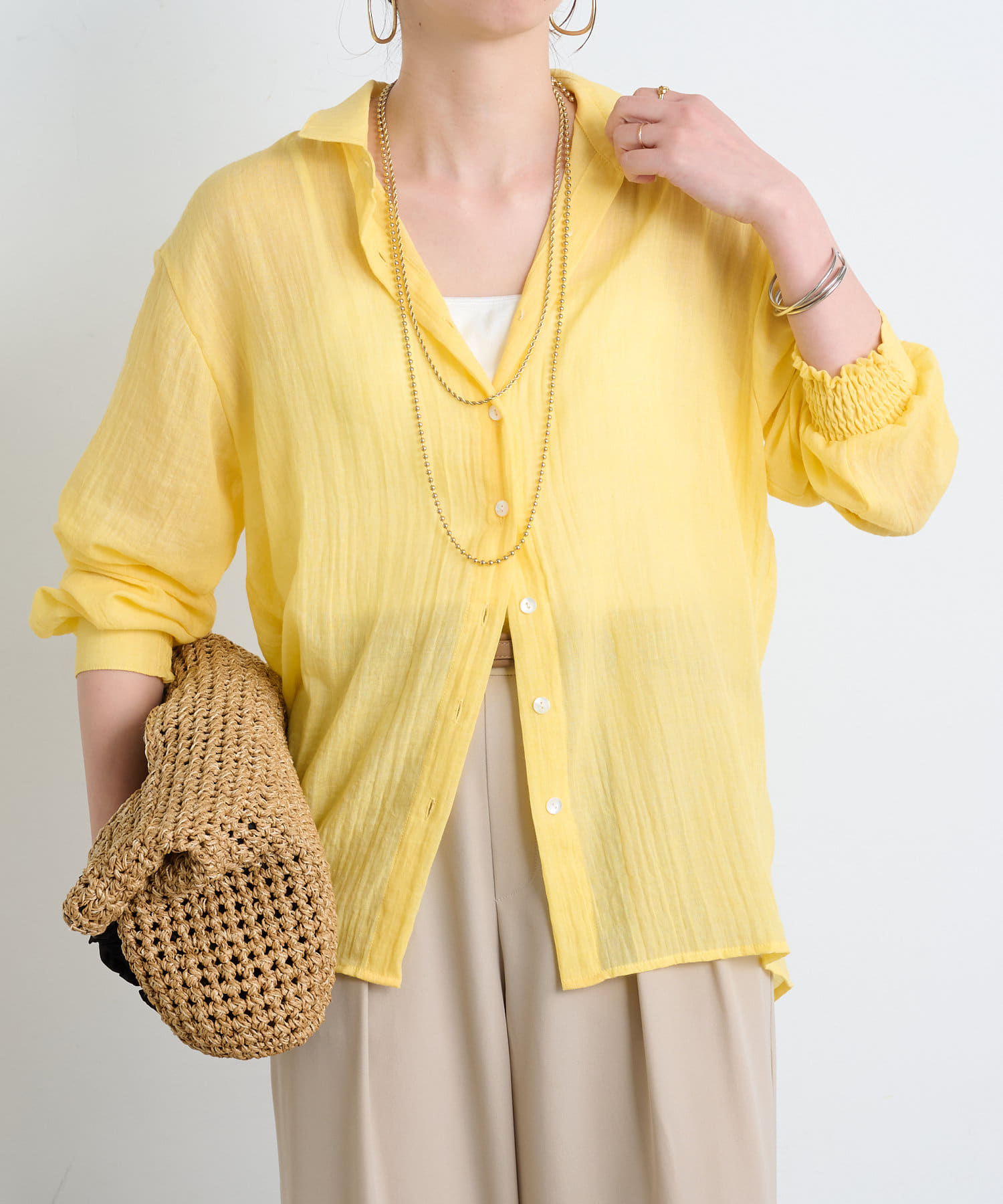 ・バッグデザインがこなれ感のあるガーゼ素材のオトナシャツ。