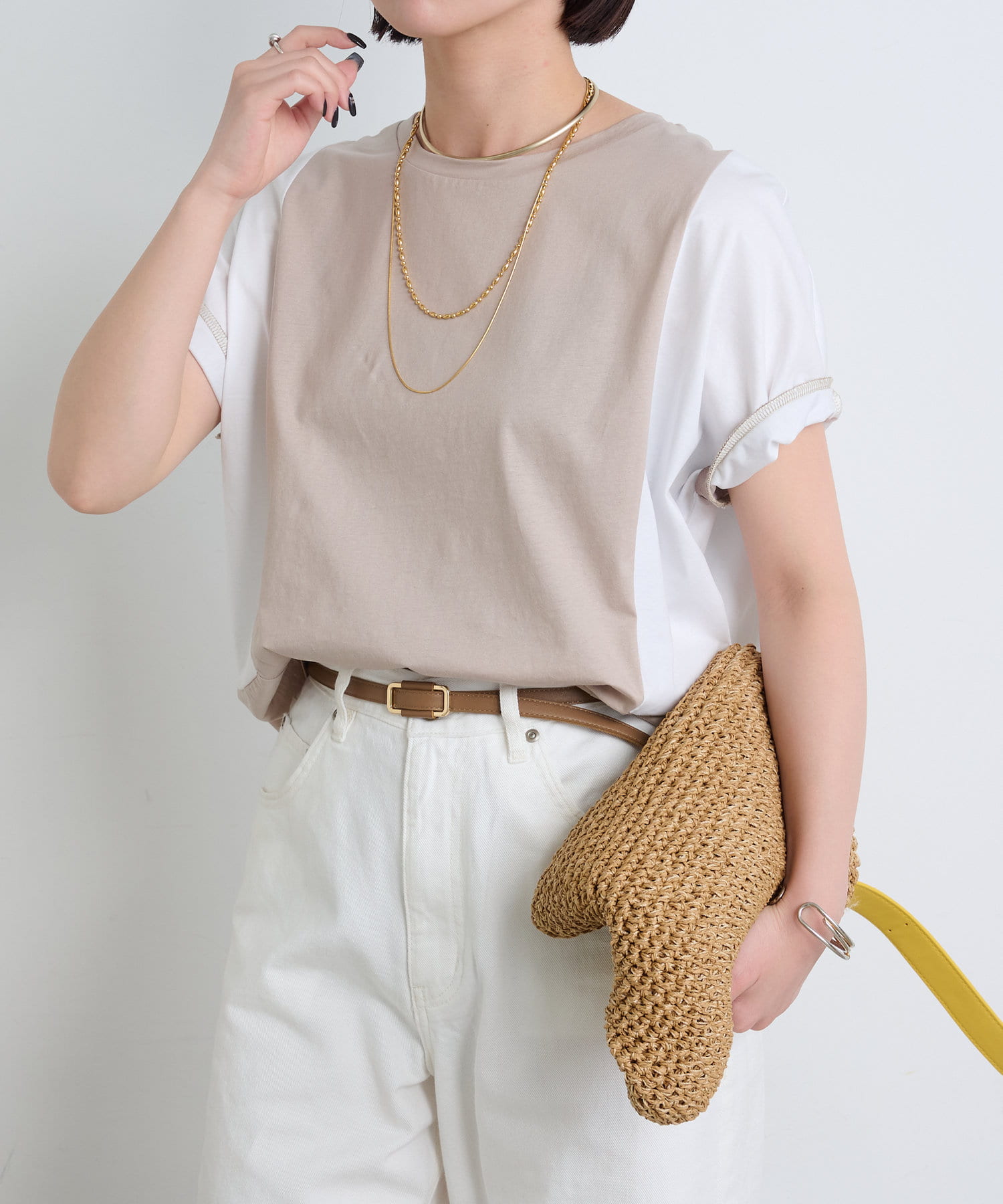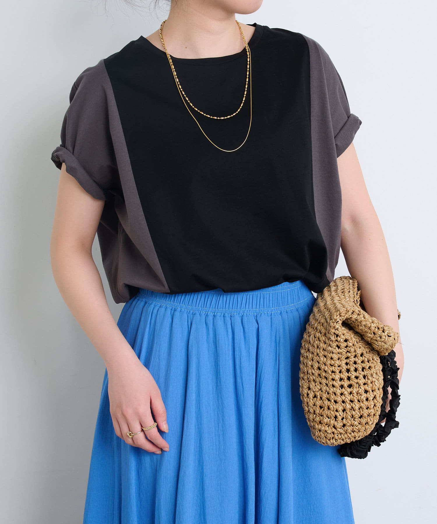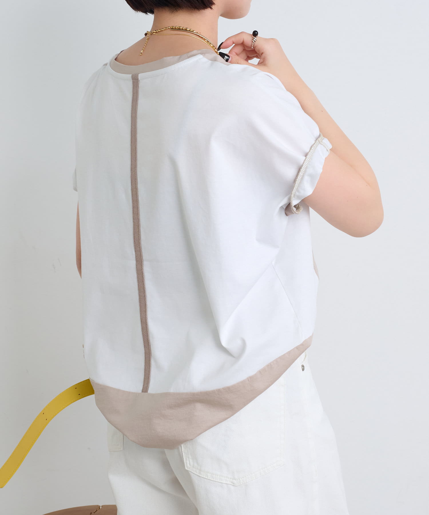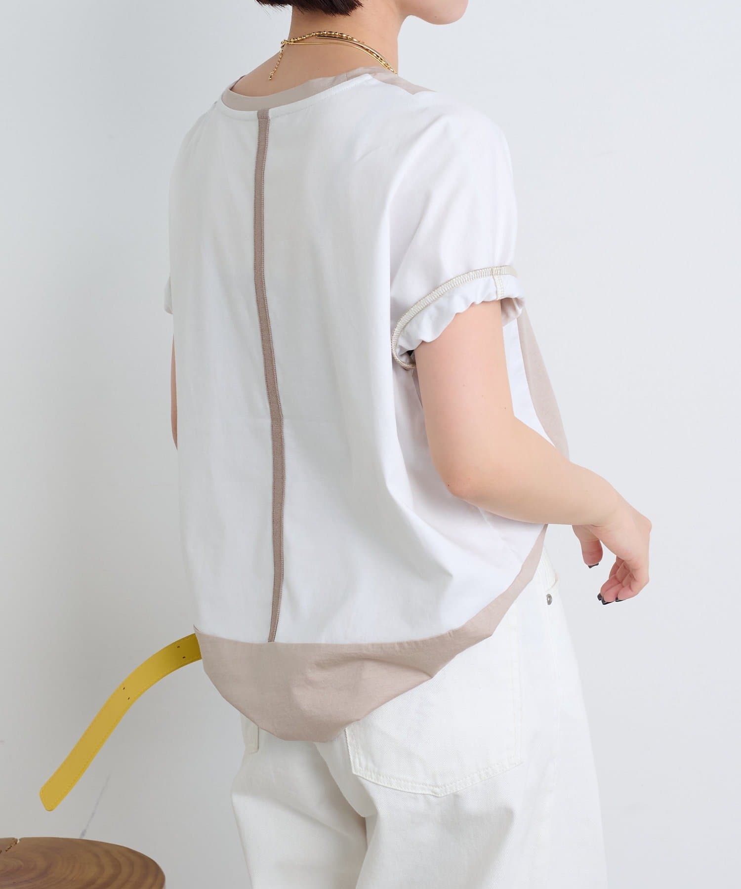 ・後姿まで抜かりないユニークな配色デザインが、こなれ感のあるカットソー。