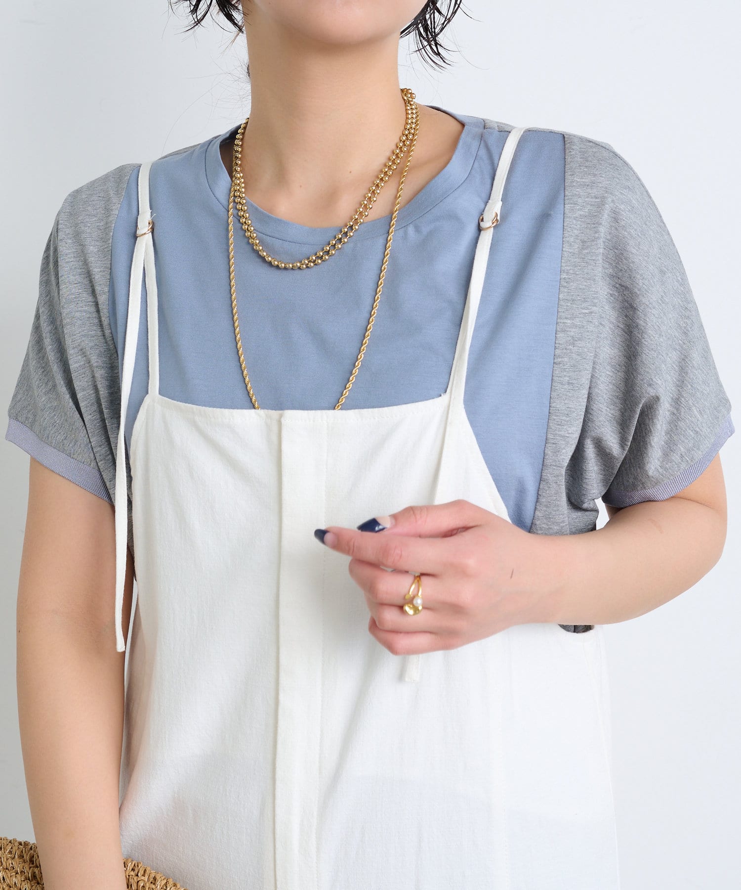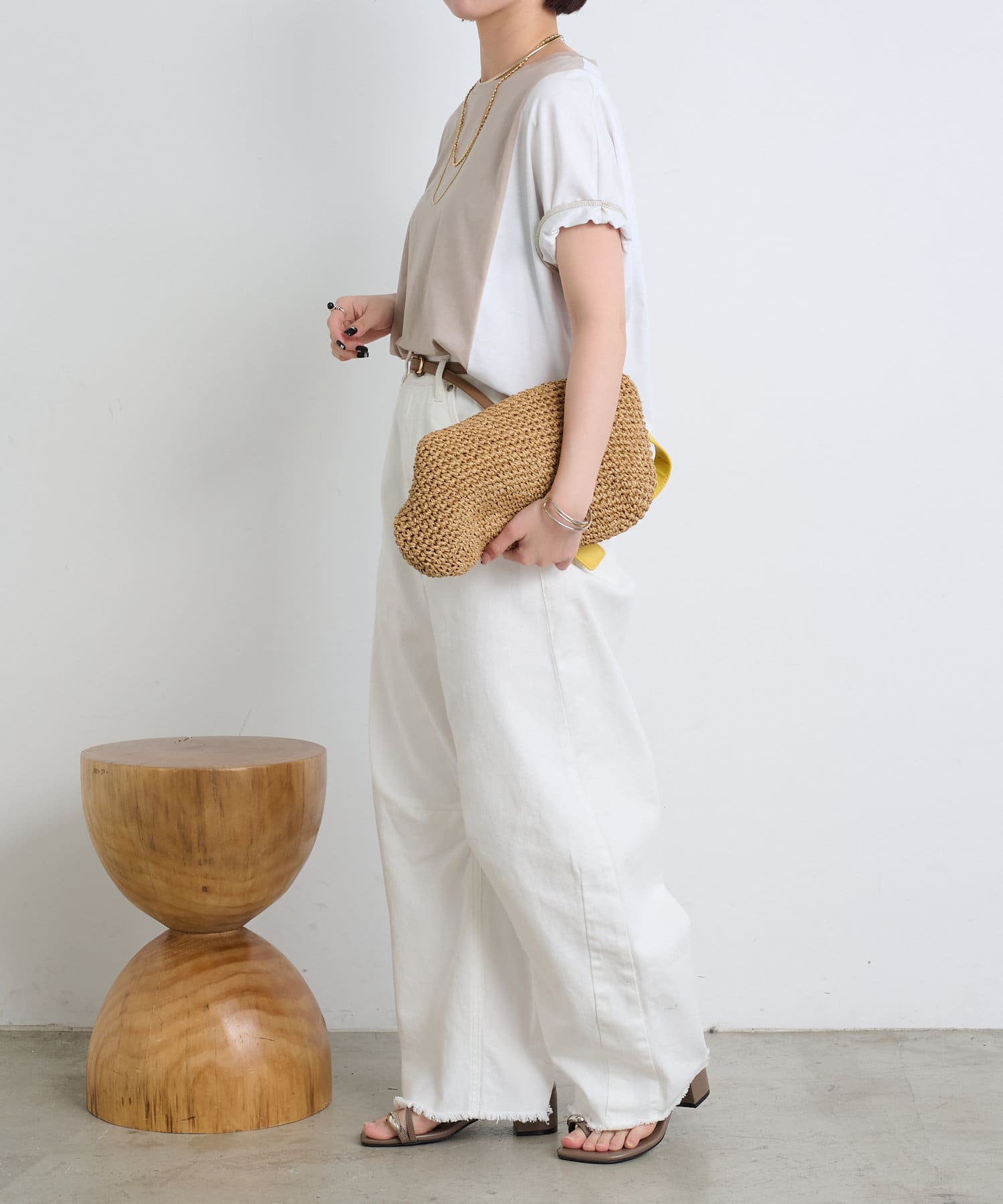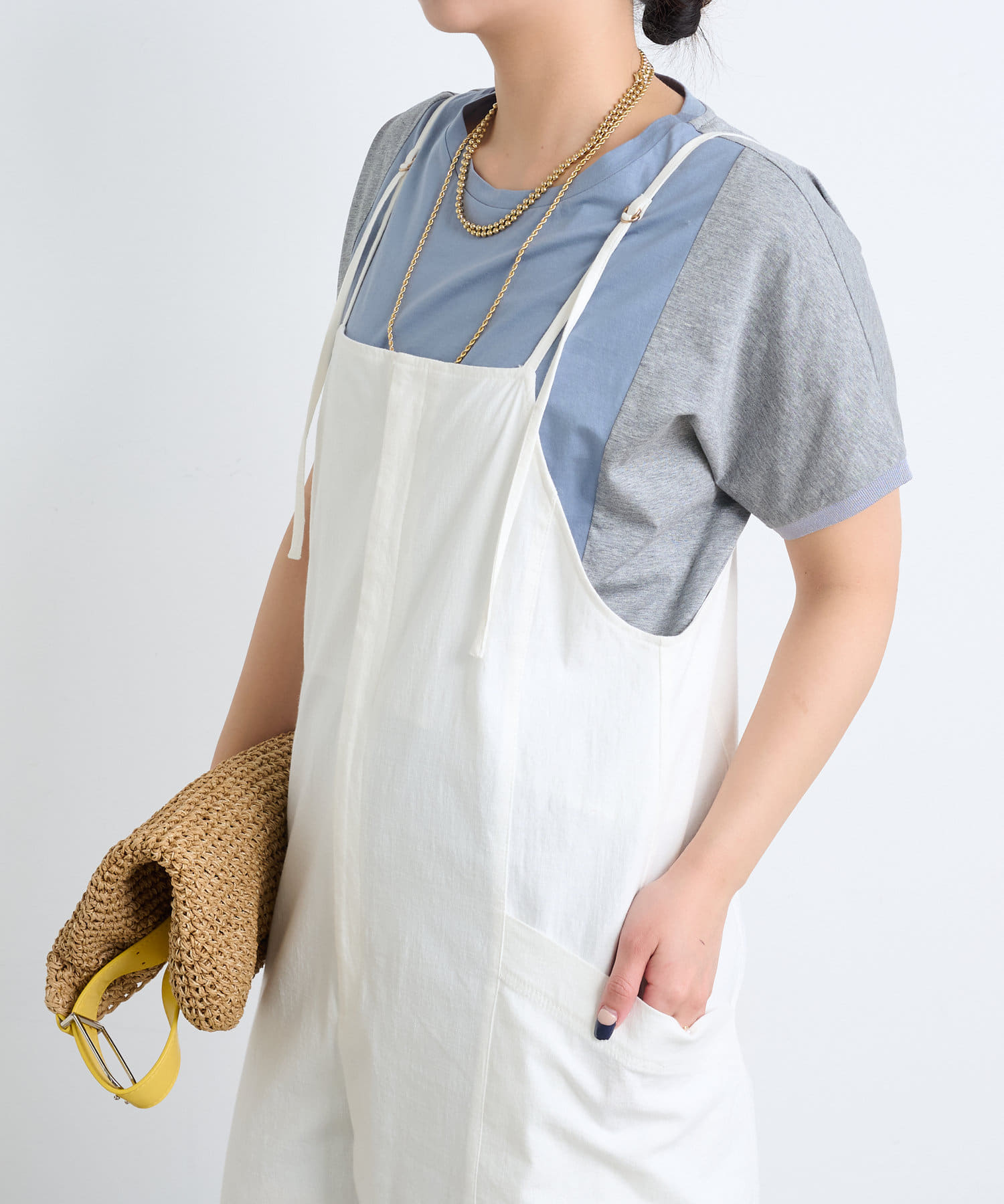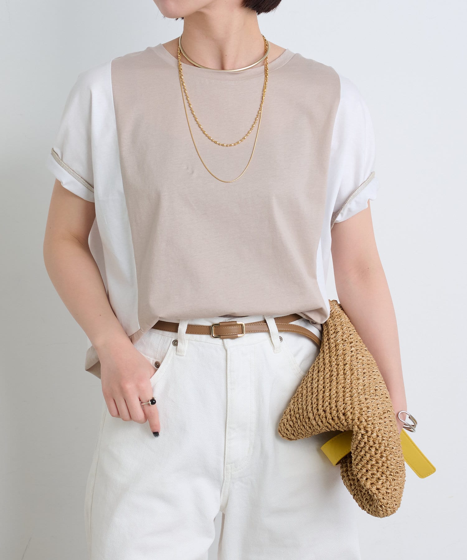 ・後姿まで抜かりないユニークな配色デザインが、こなれ感のあるカットソー。