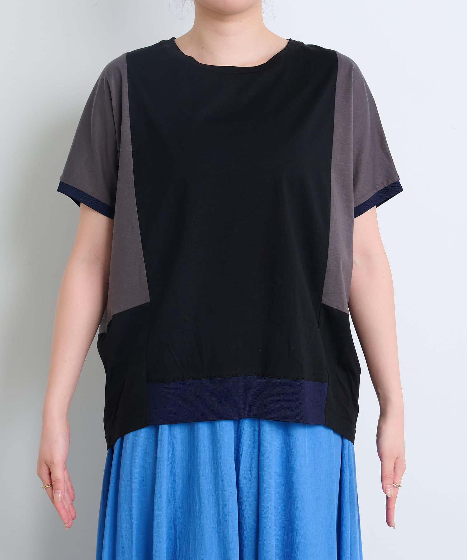 【体型カバー/1枚で決まる配色Tシャツ】バックライン配色カットソー