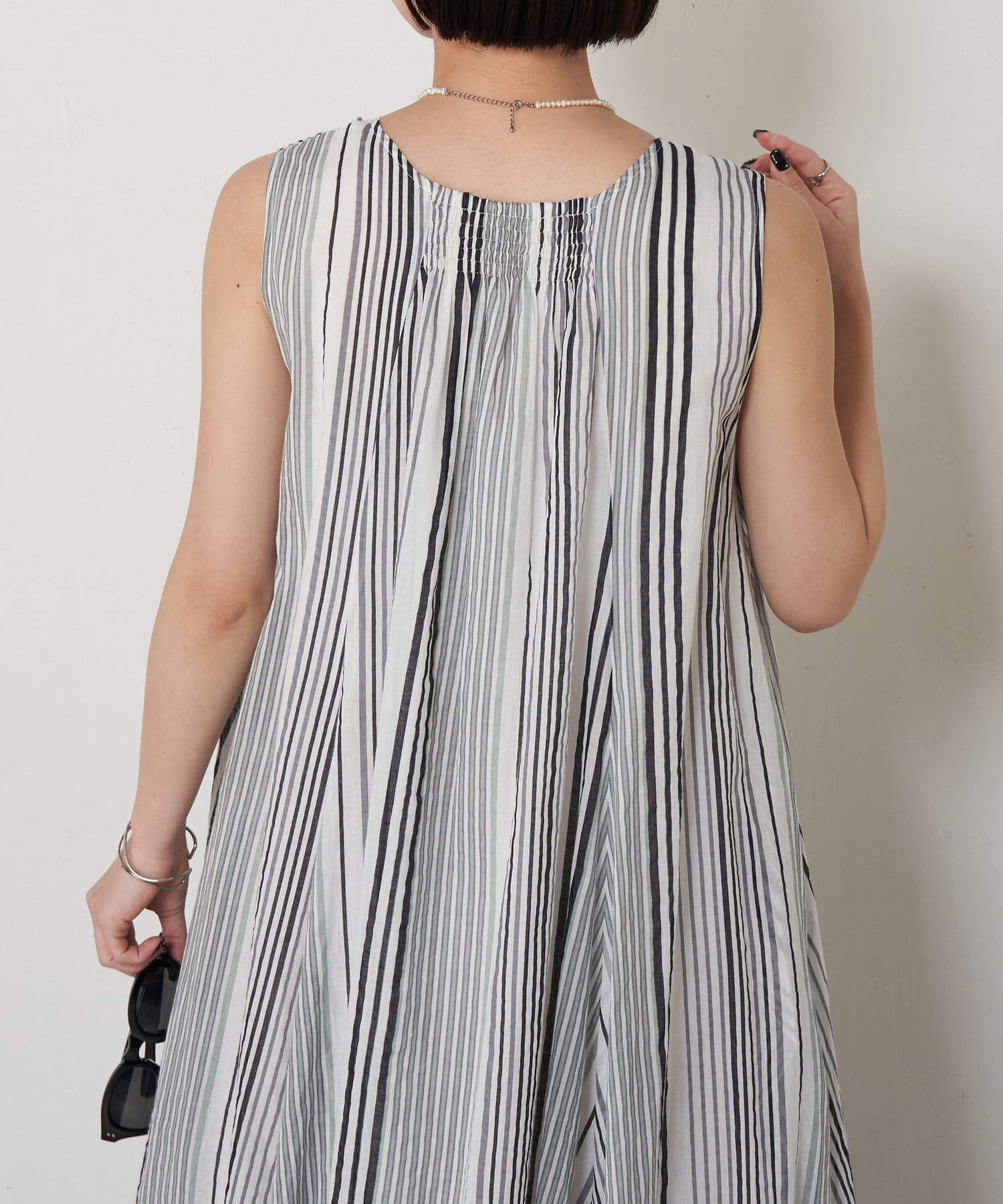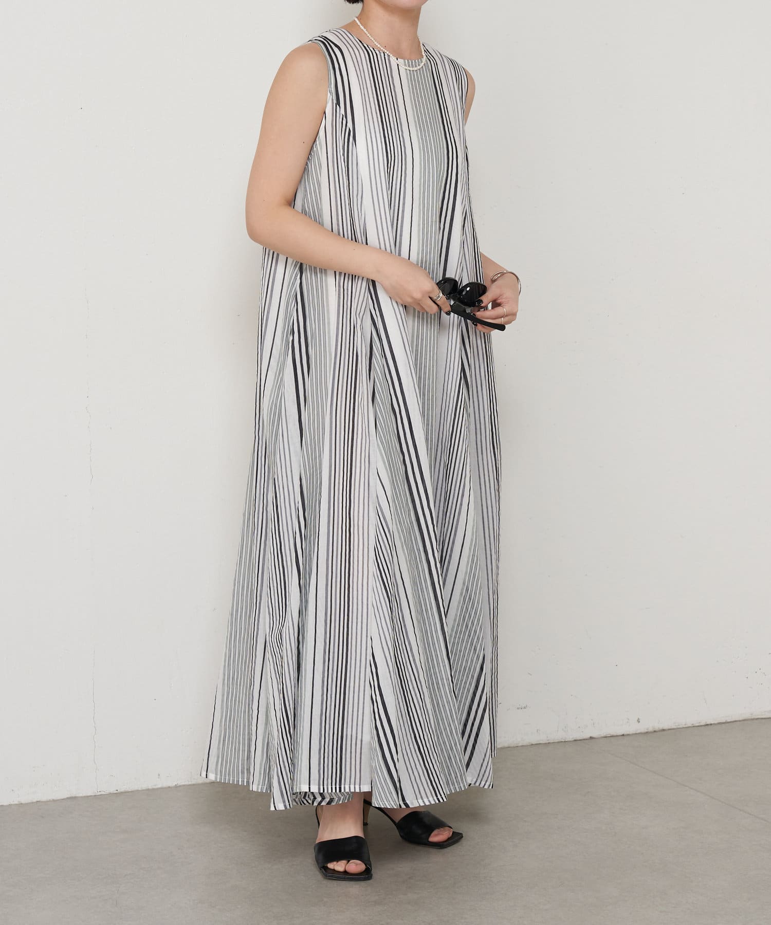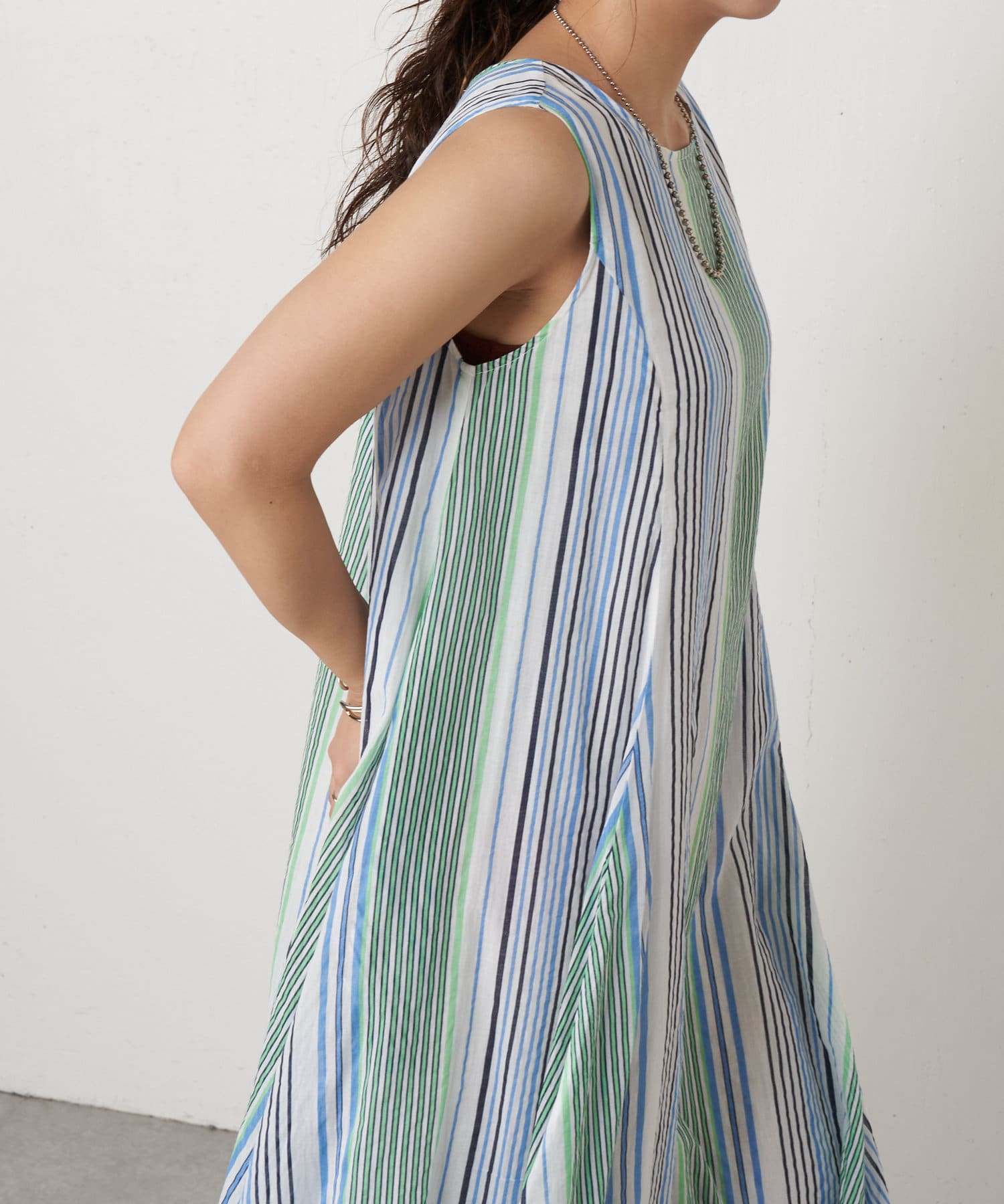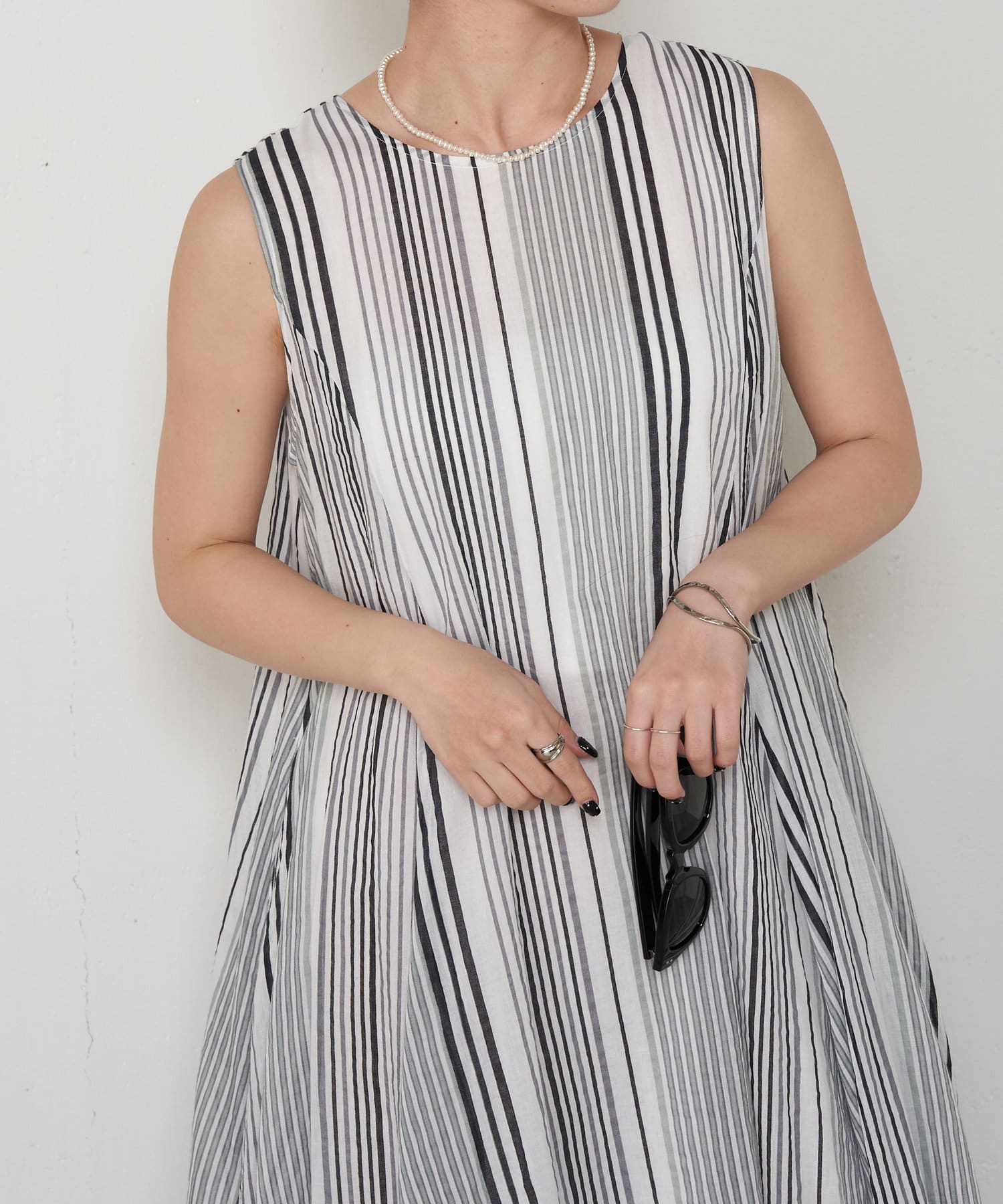 ・ ノースリーブのシンプルなデザインは、合わせるアイテムを選ばず、様々なシーンで活躍。