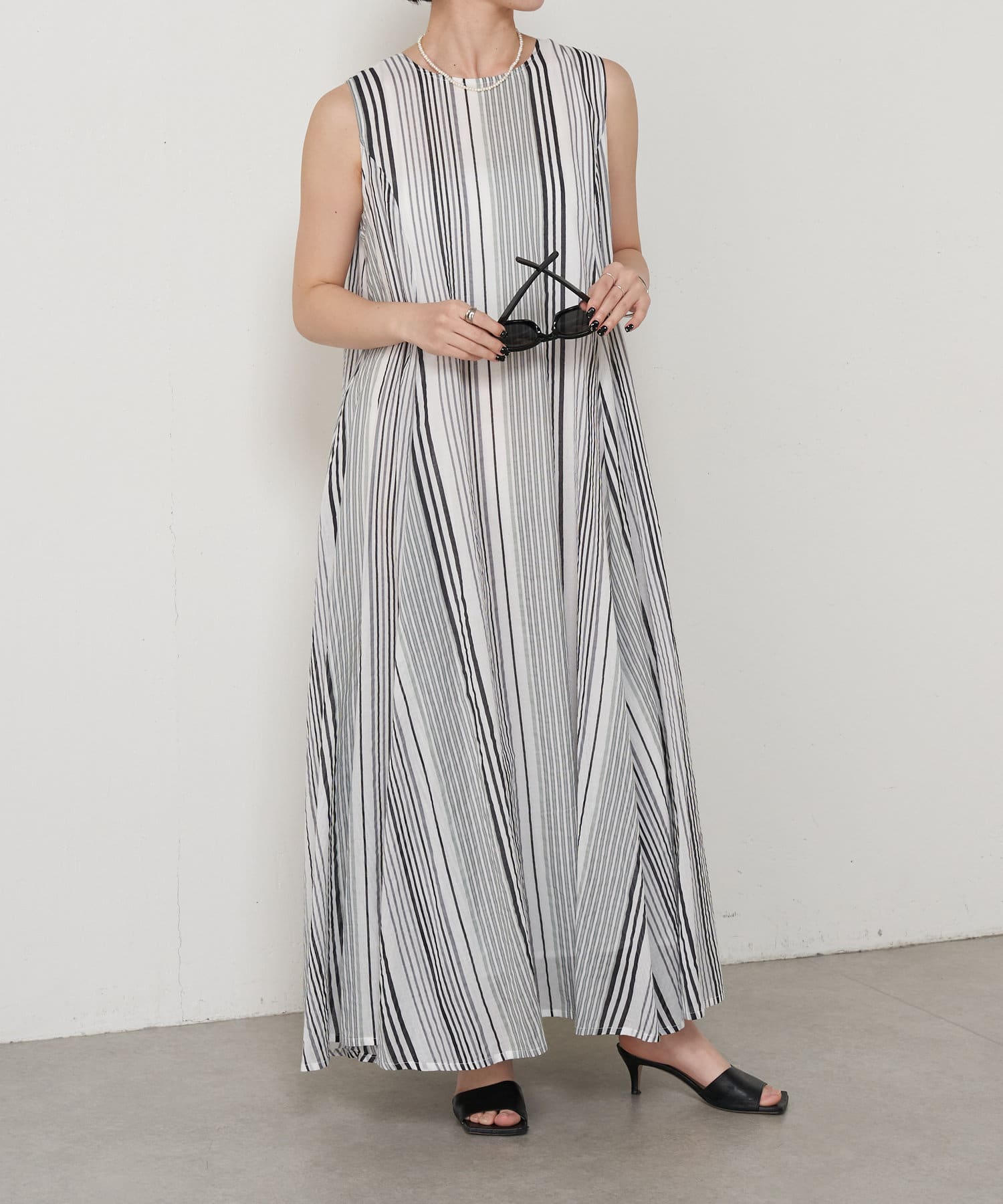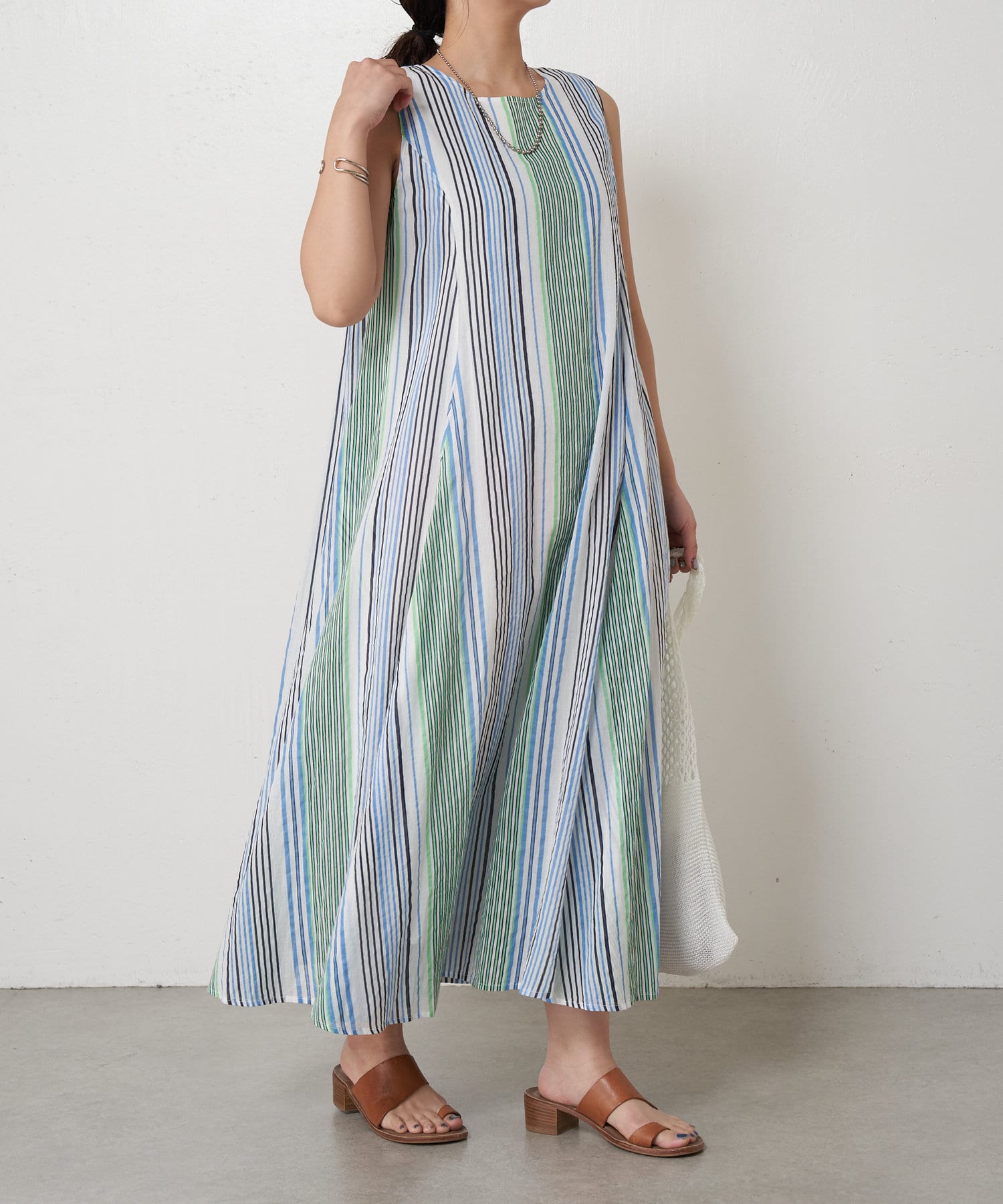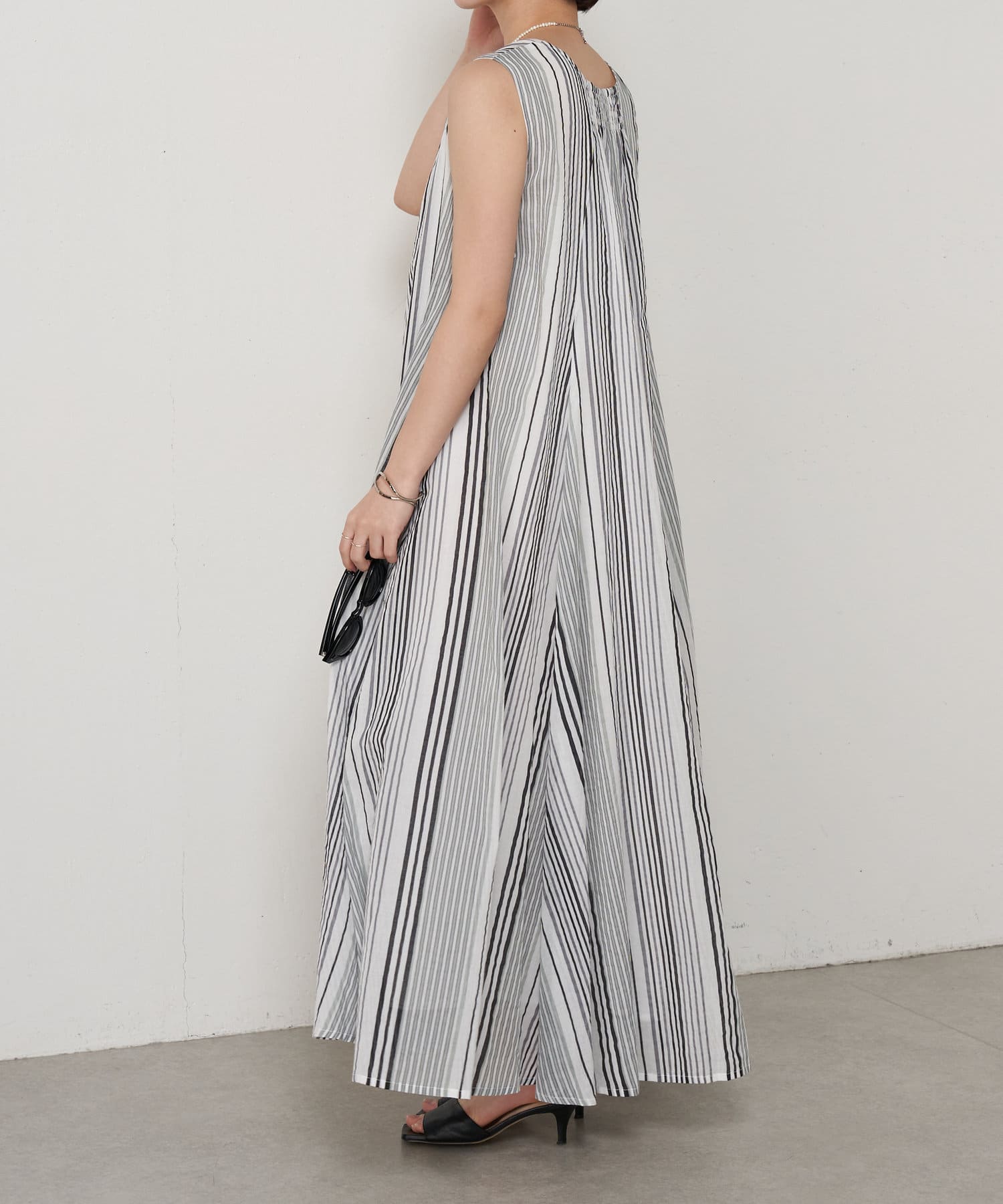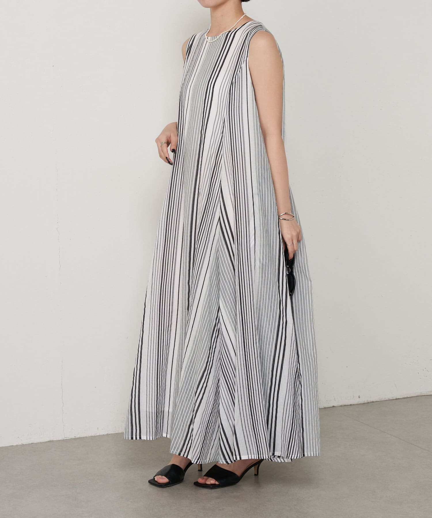 ・ ノースリーブのシンプルなデザインは、合わせるアイテムを選ばず、様々なシーンで活躍。