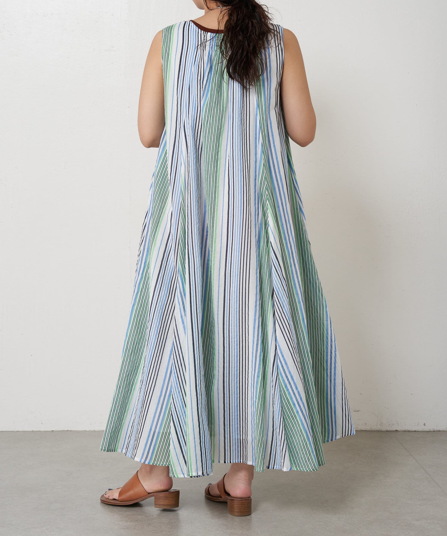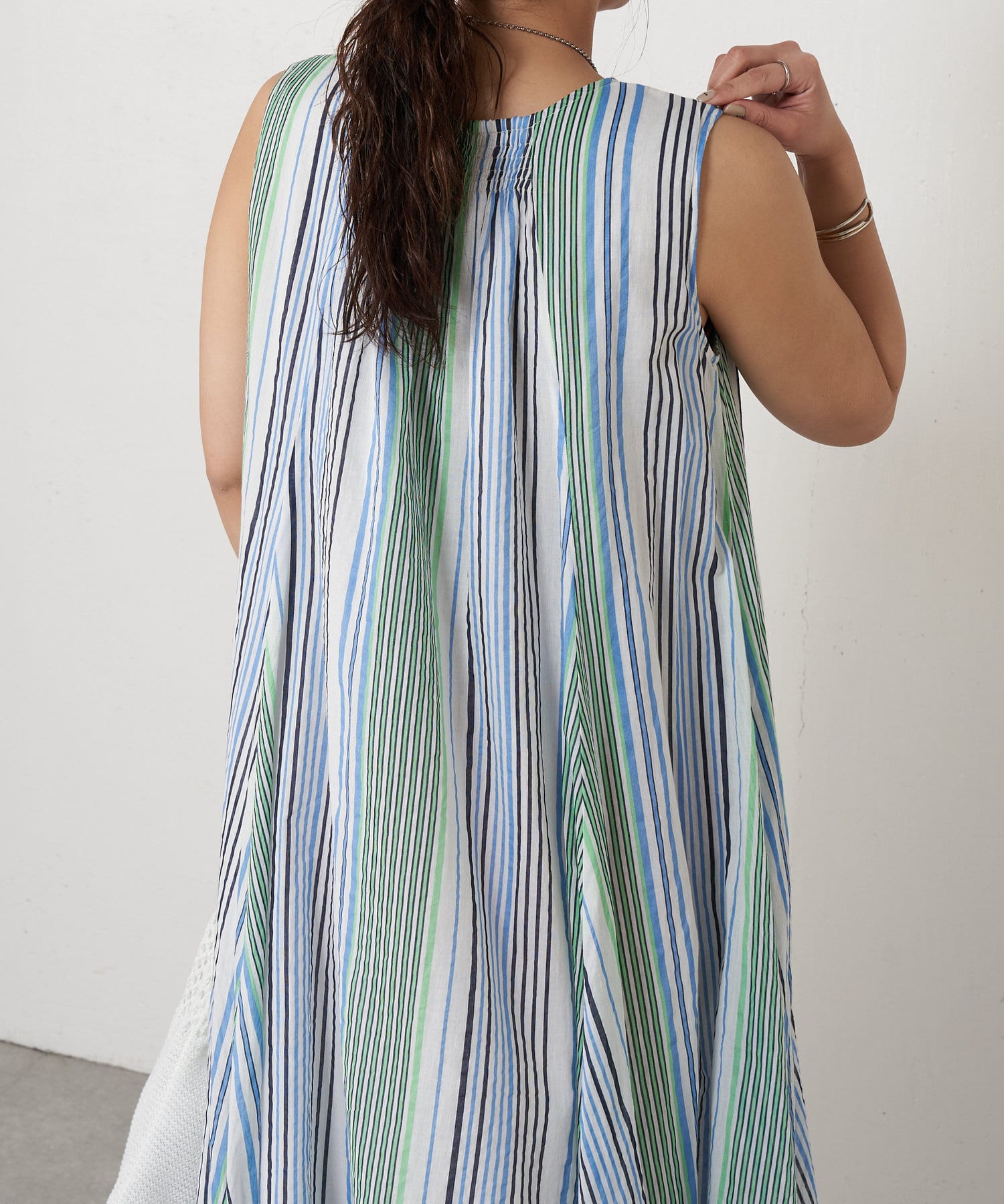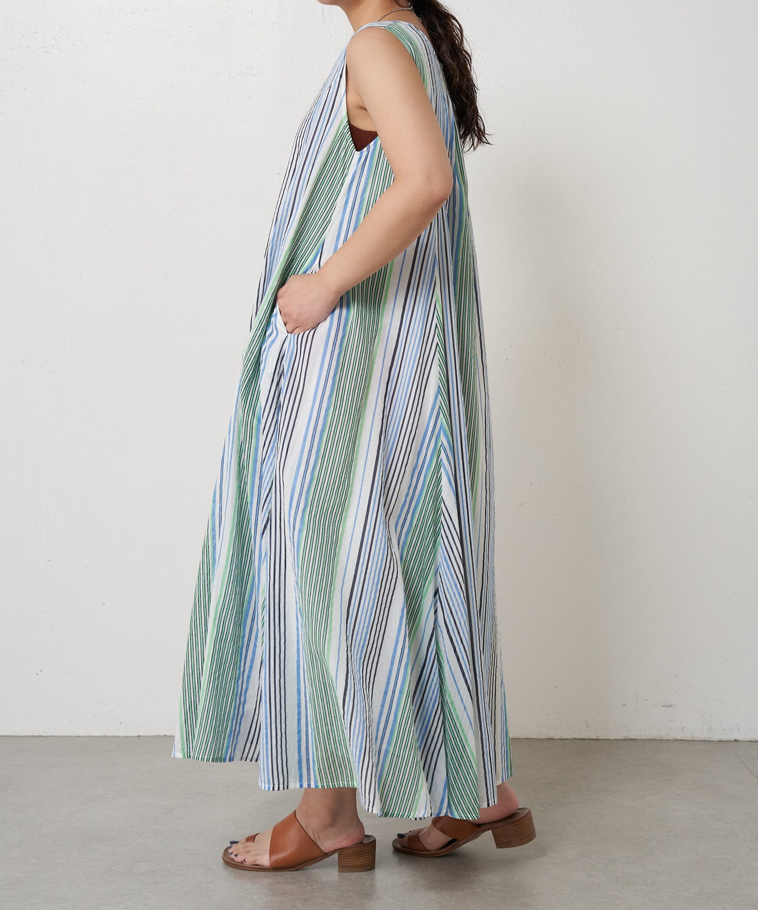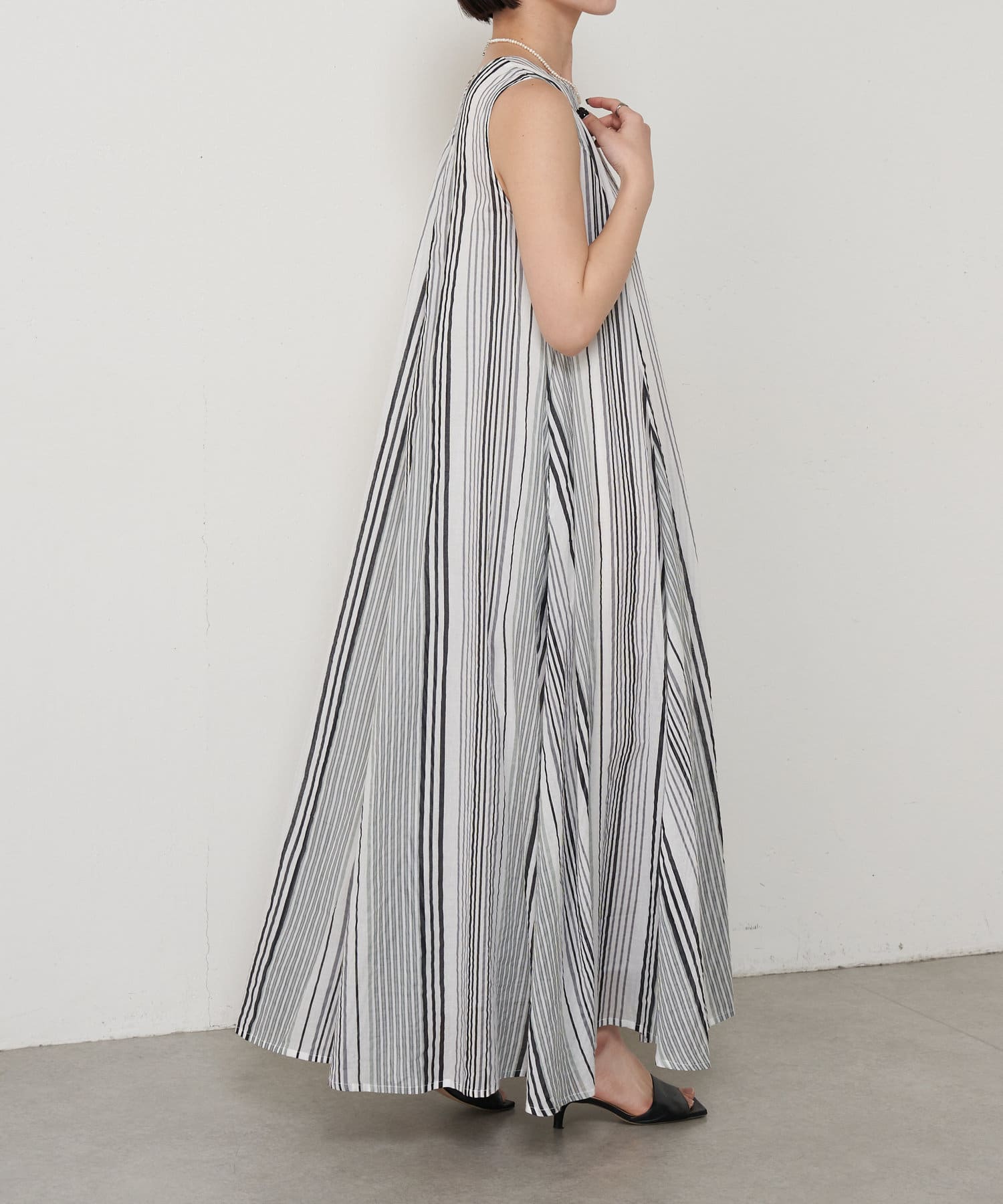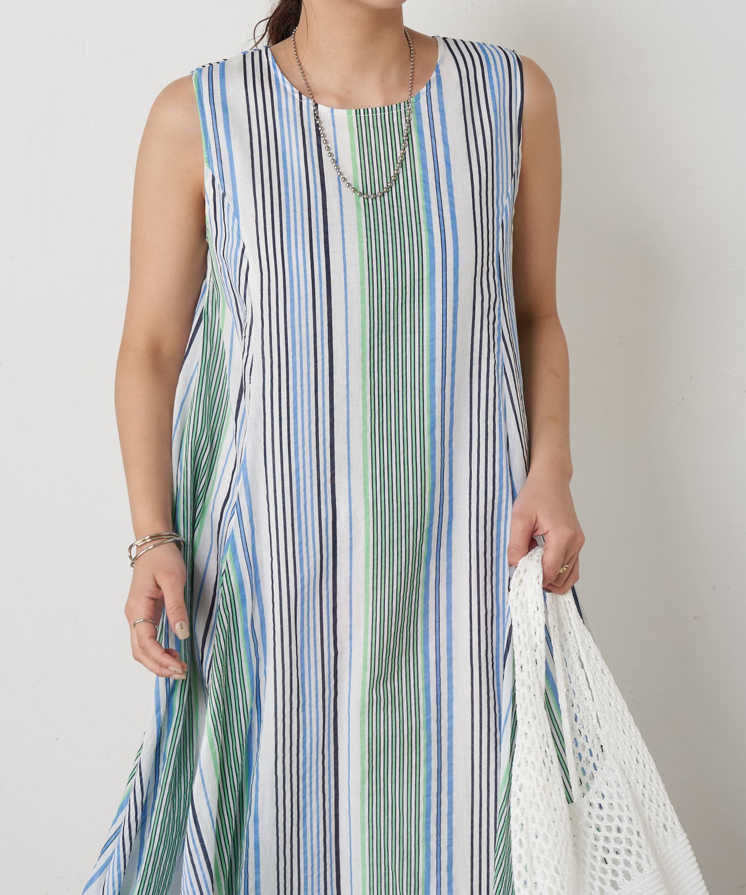 ・ ノースリーブのシンプルなデザインは、合わせるアイテムを選ばず、様々なシーンで活躍。