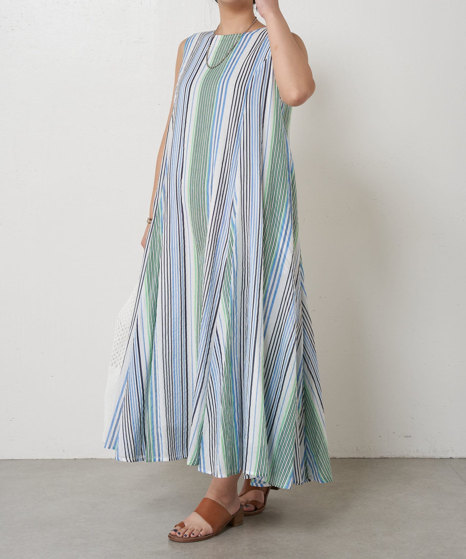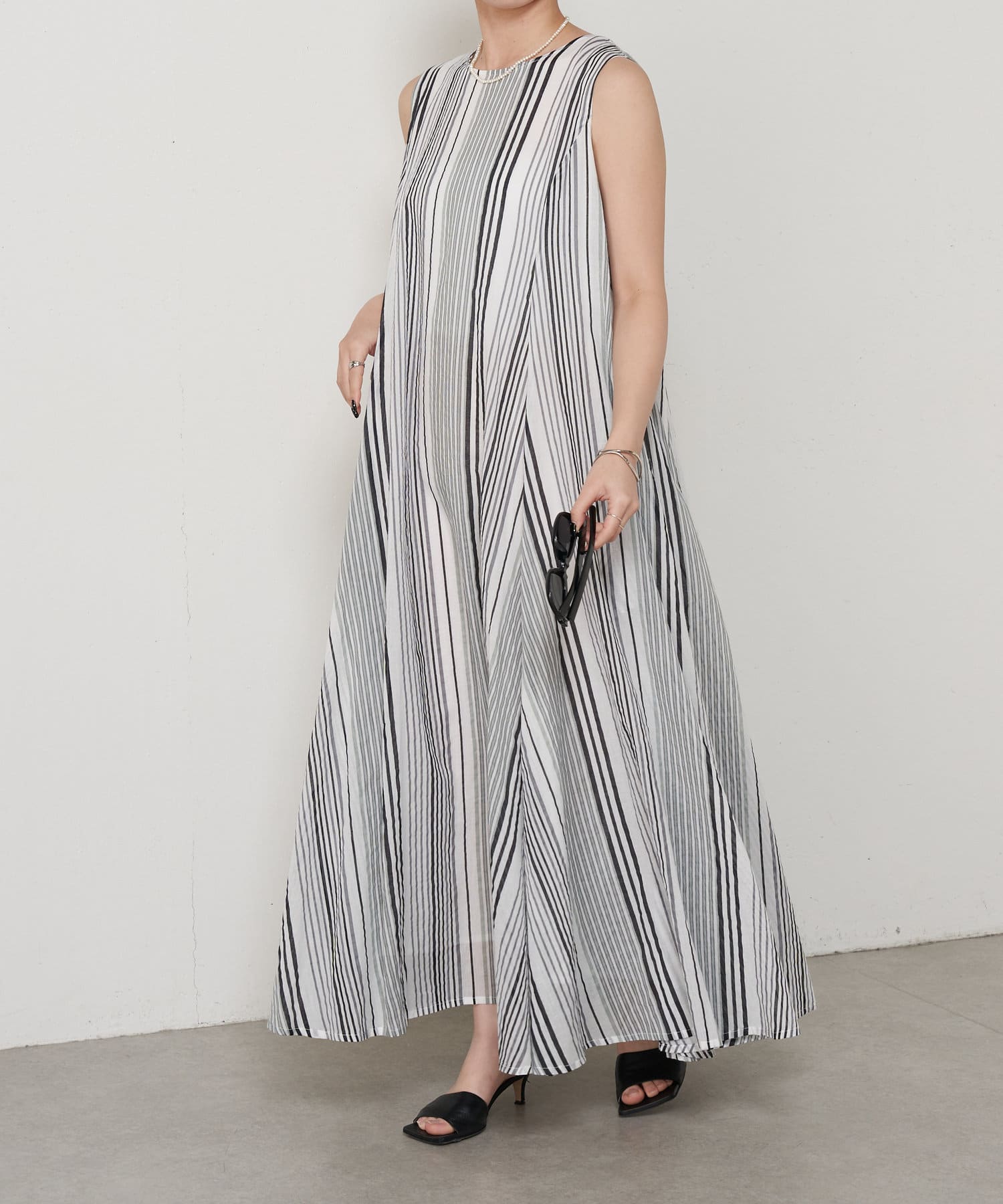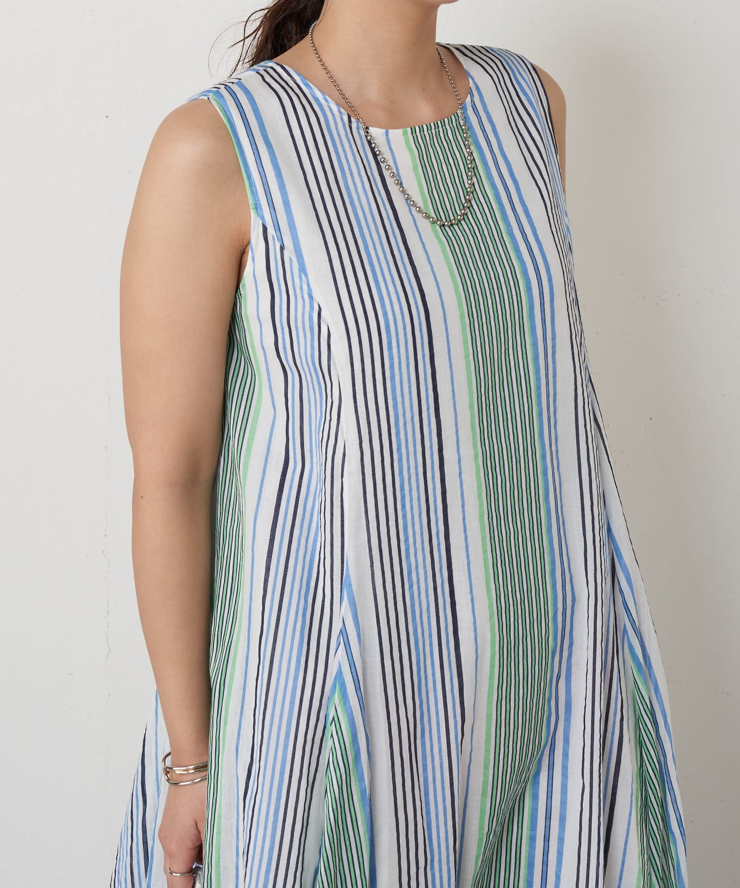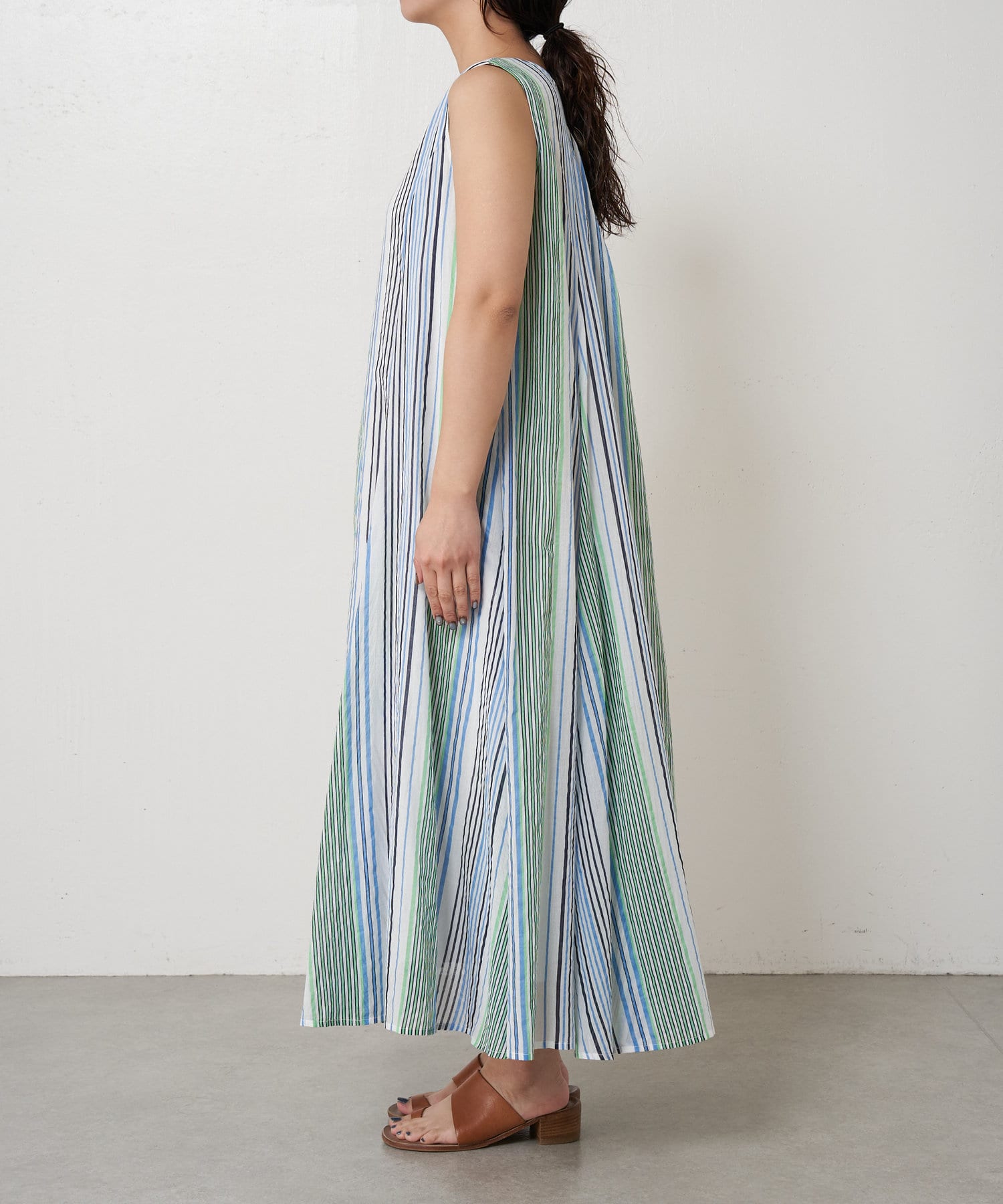 ・ ノースリーブのシンプルなデザインは、合わせるアイテムを選ばず、様々なシーンで活躍。