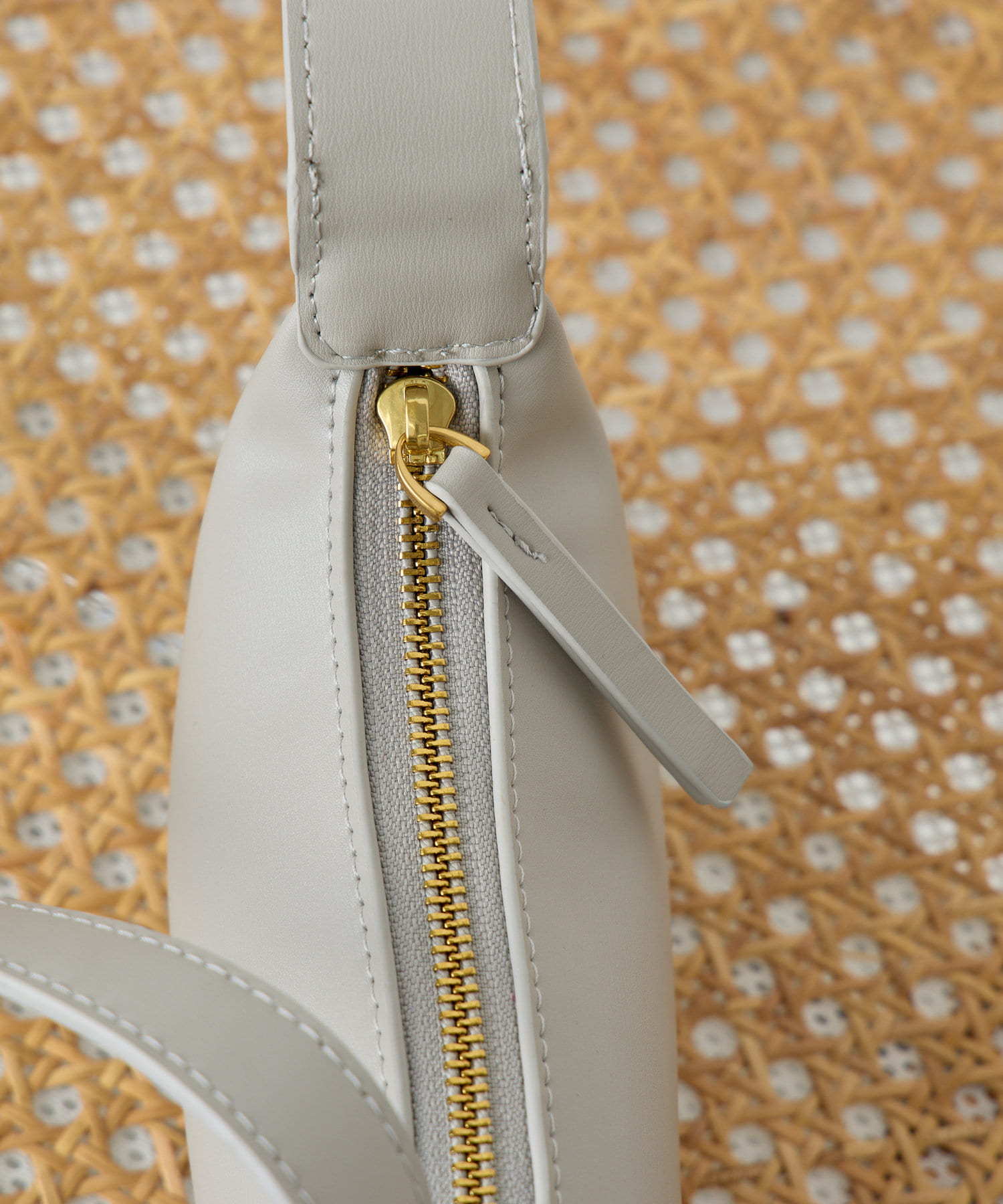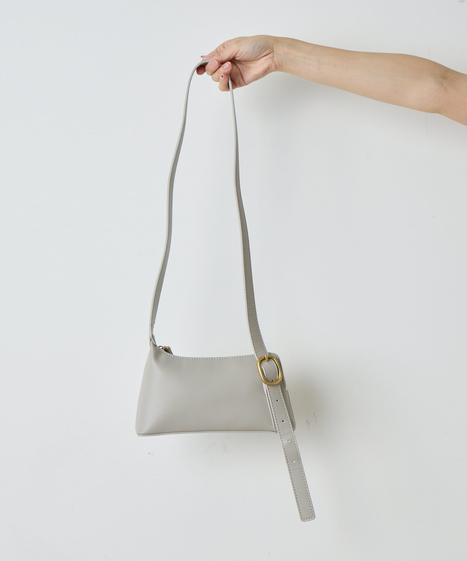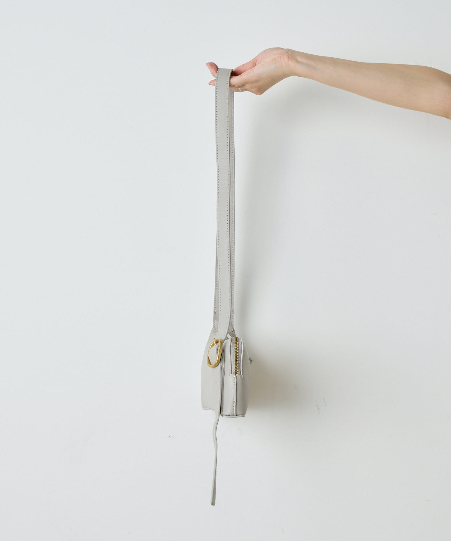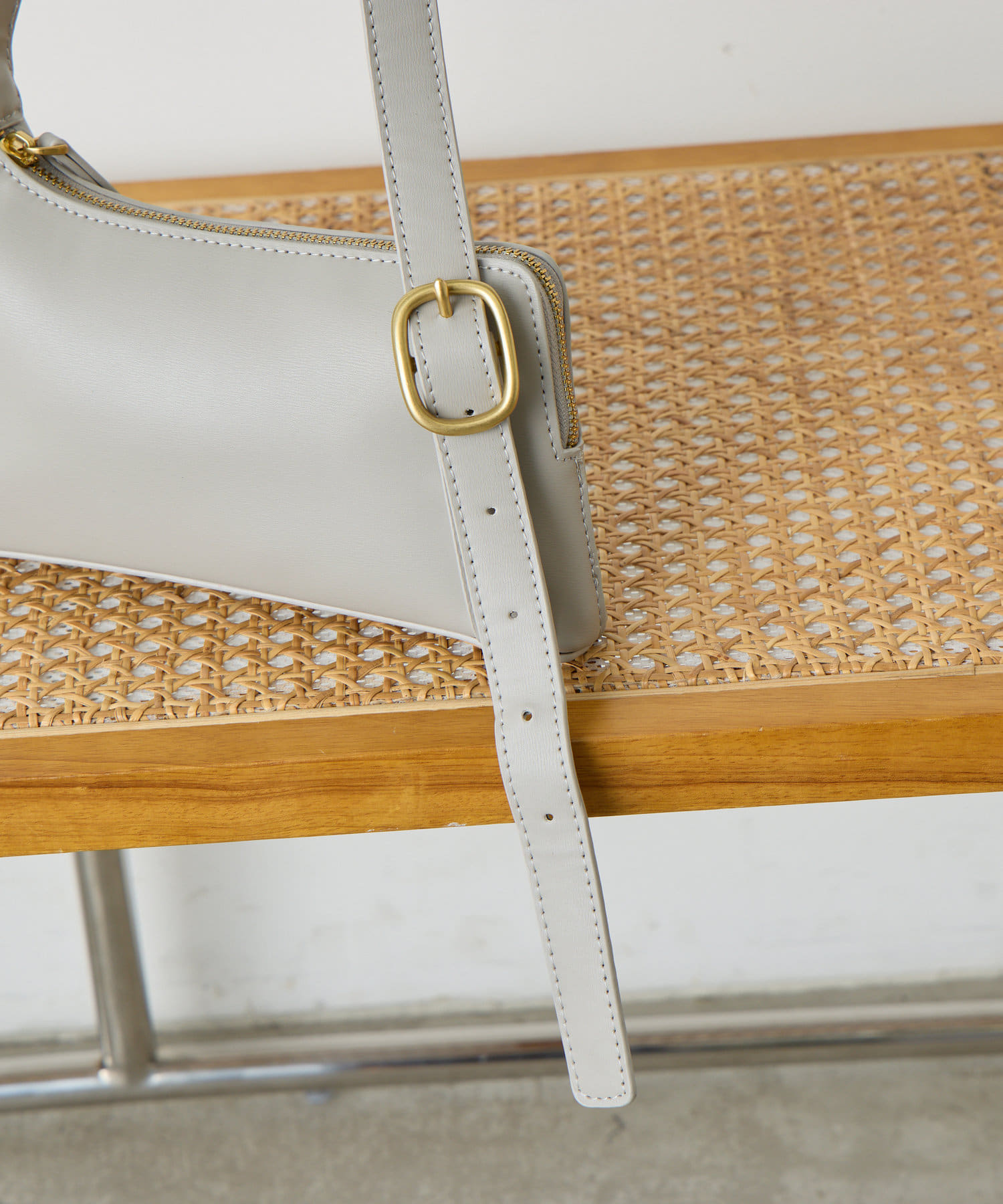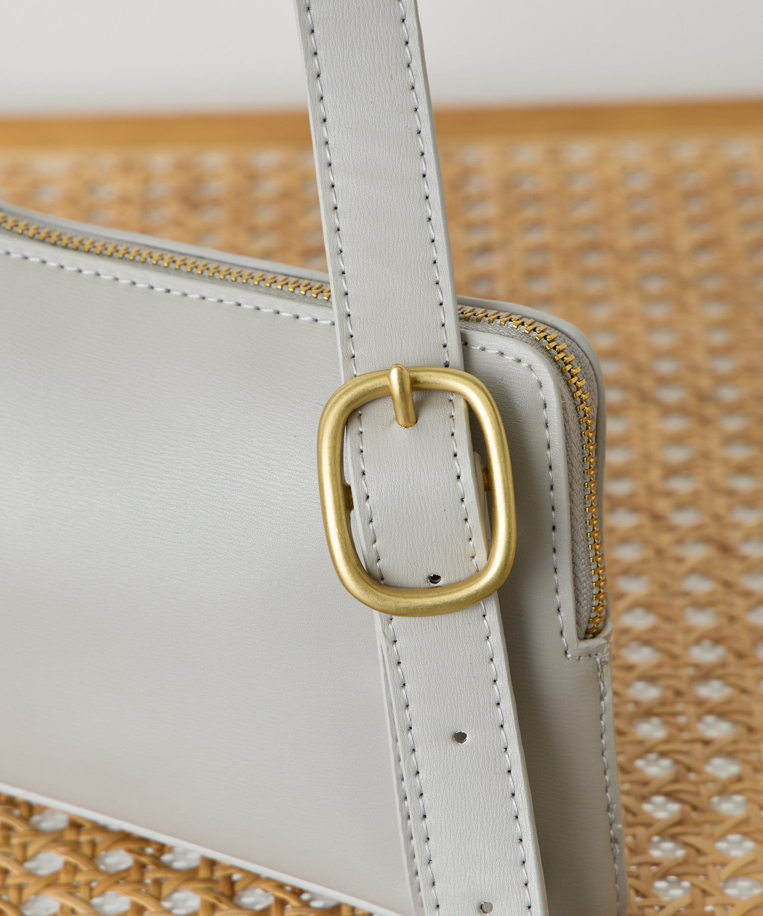 ・ゴールドの金具がアクセントのミニマルデザインのショルダーバッグ。