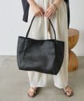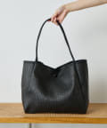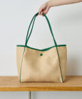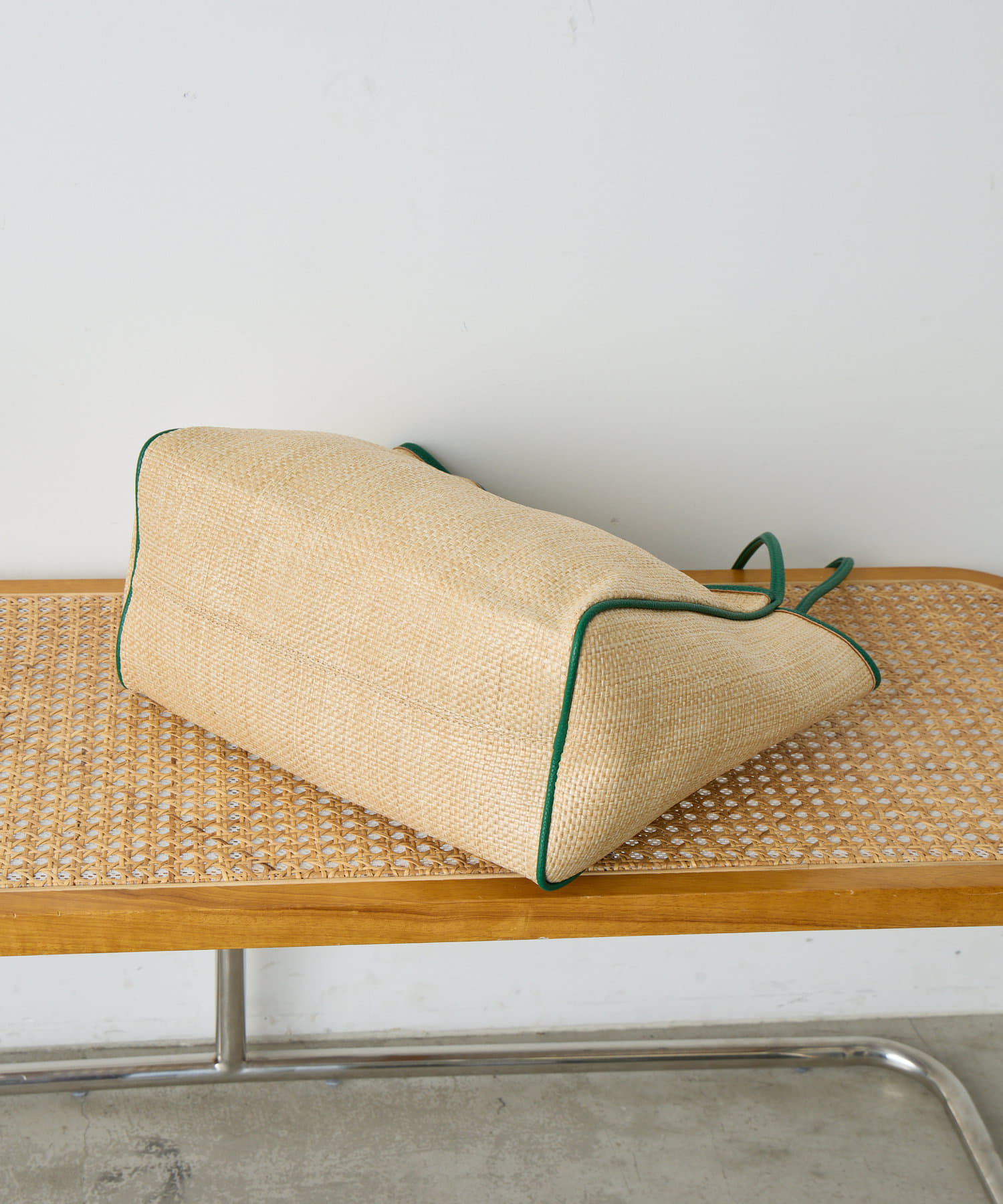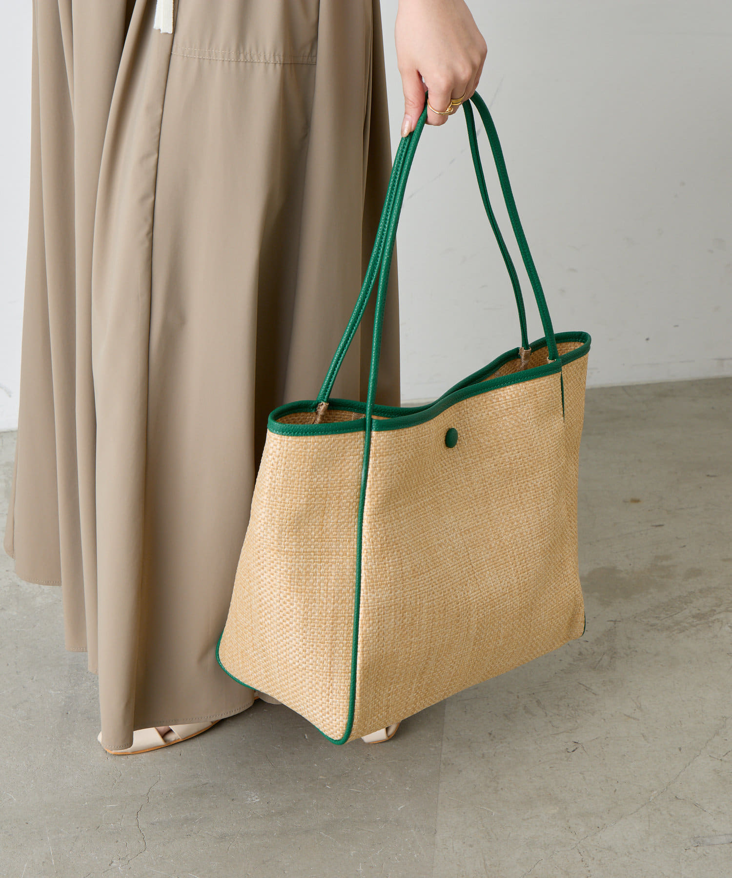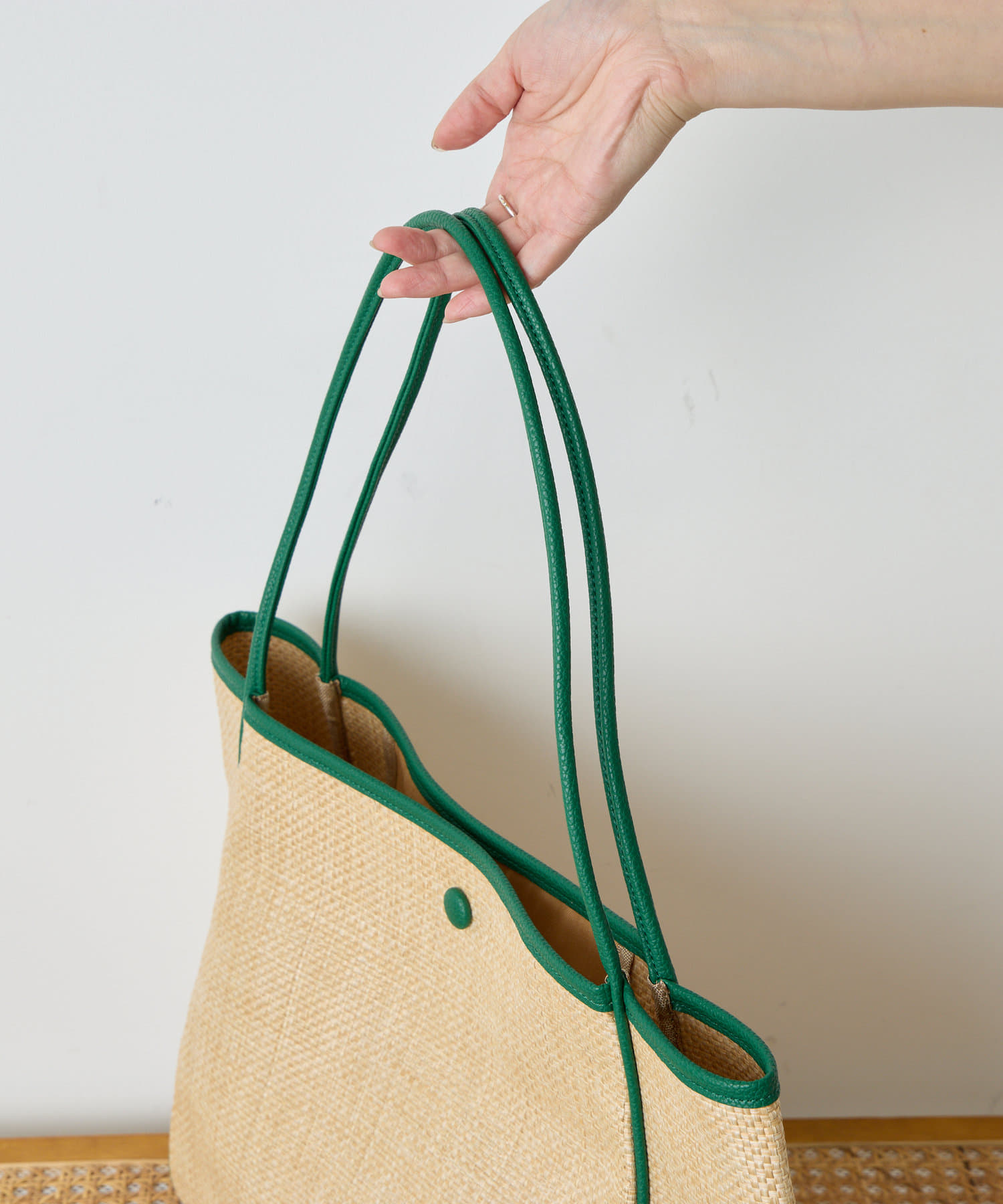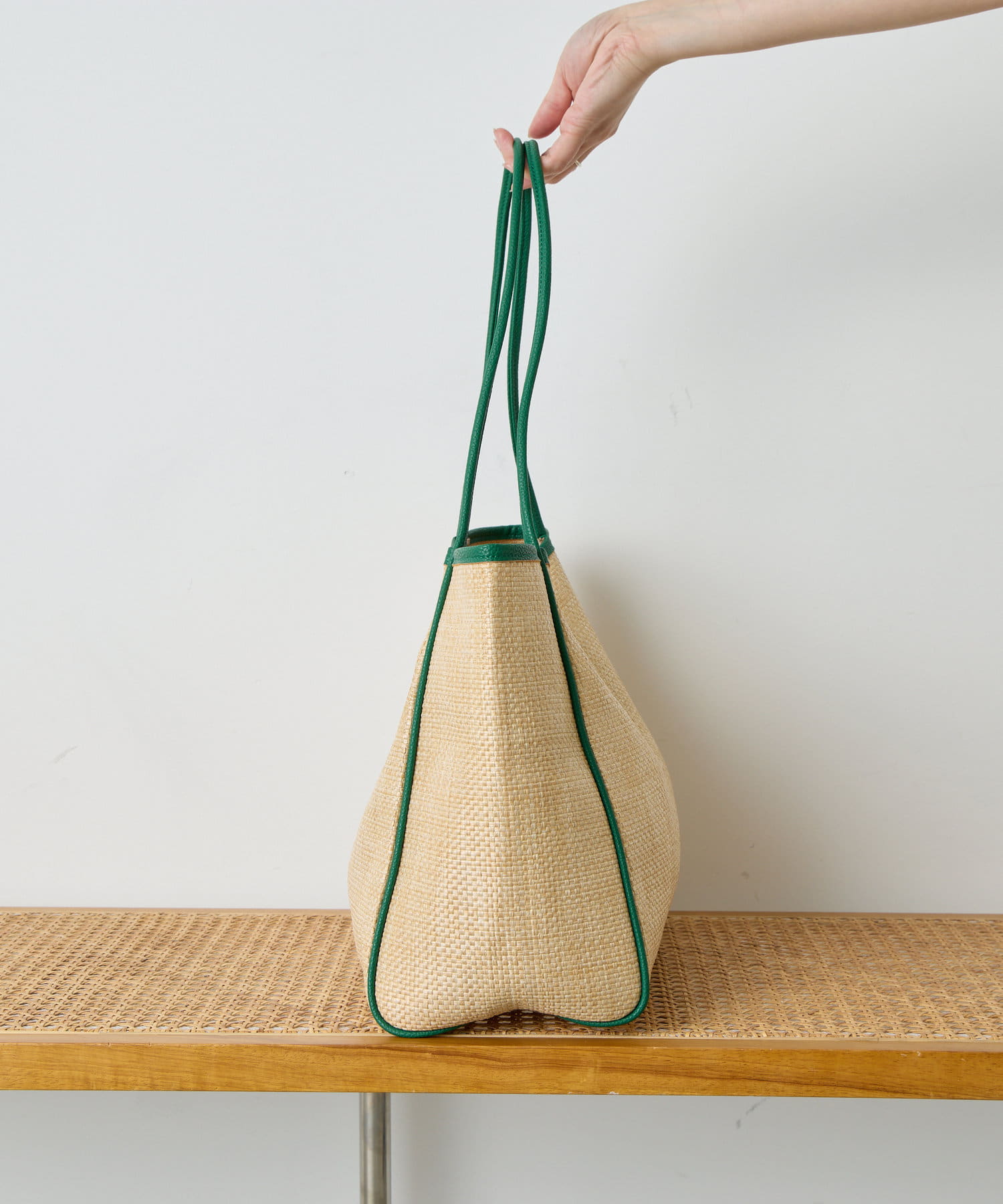 ・上品な艶感のあるラフィア素材で、カジュアル過ぎない大人の女性のためのトートバッグ。