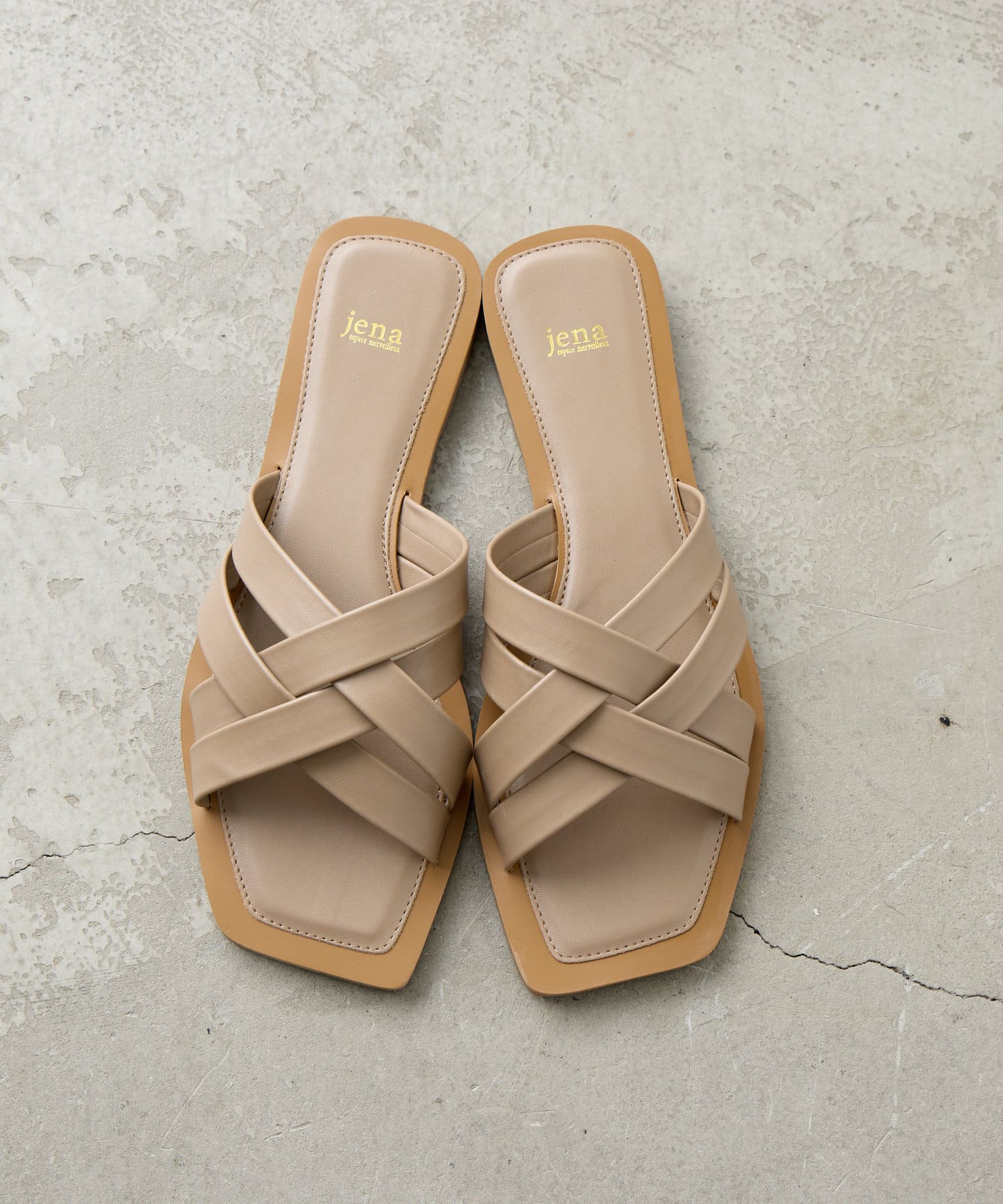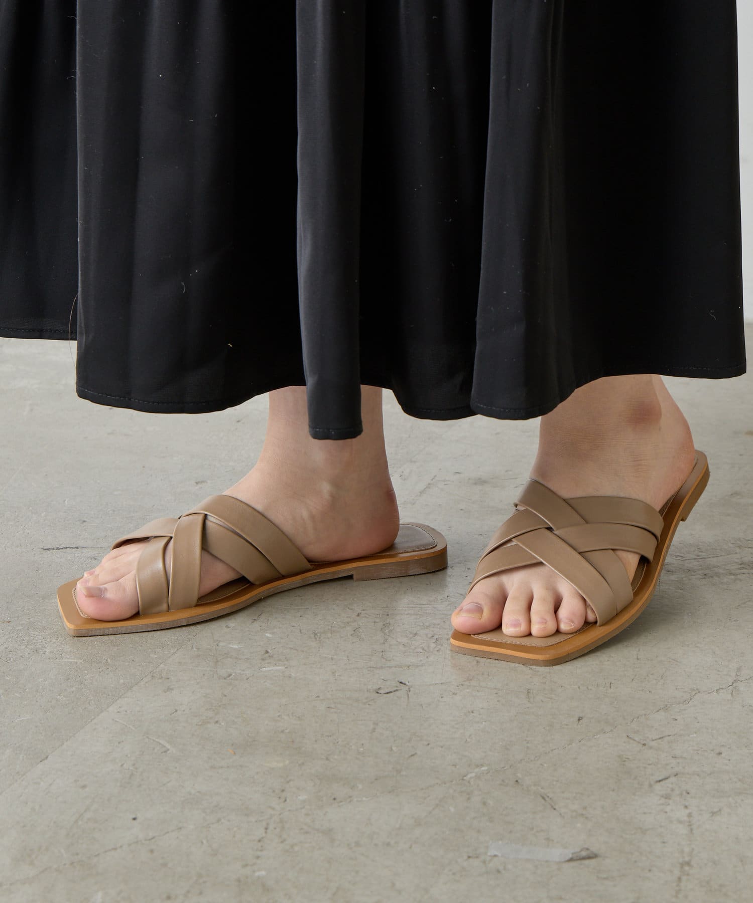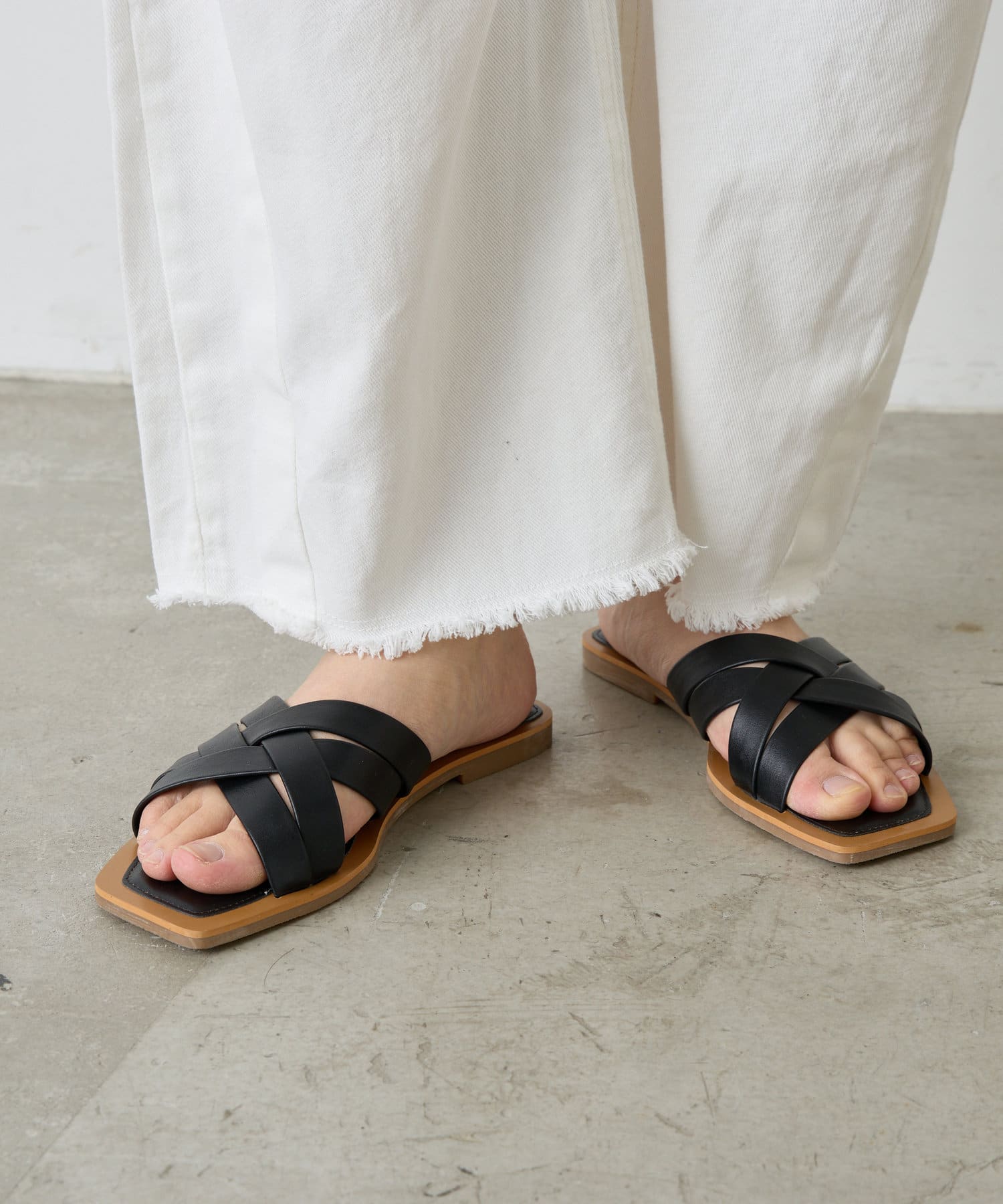 クロス編みが大人っぽい、シンプルなフラットサンダル。