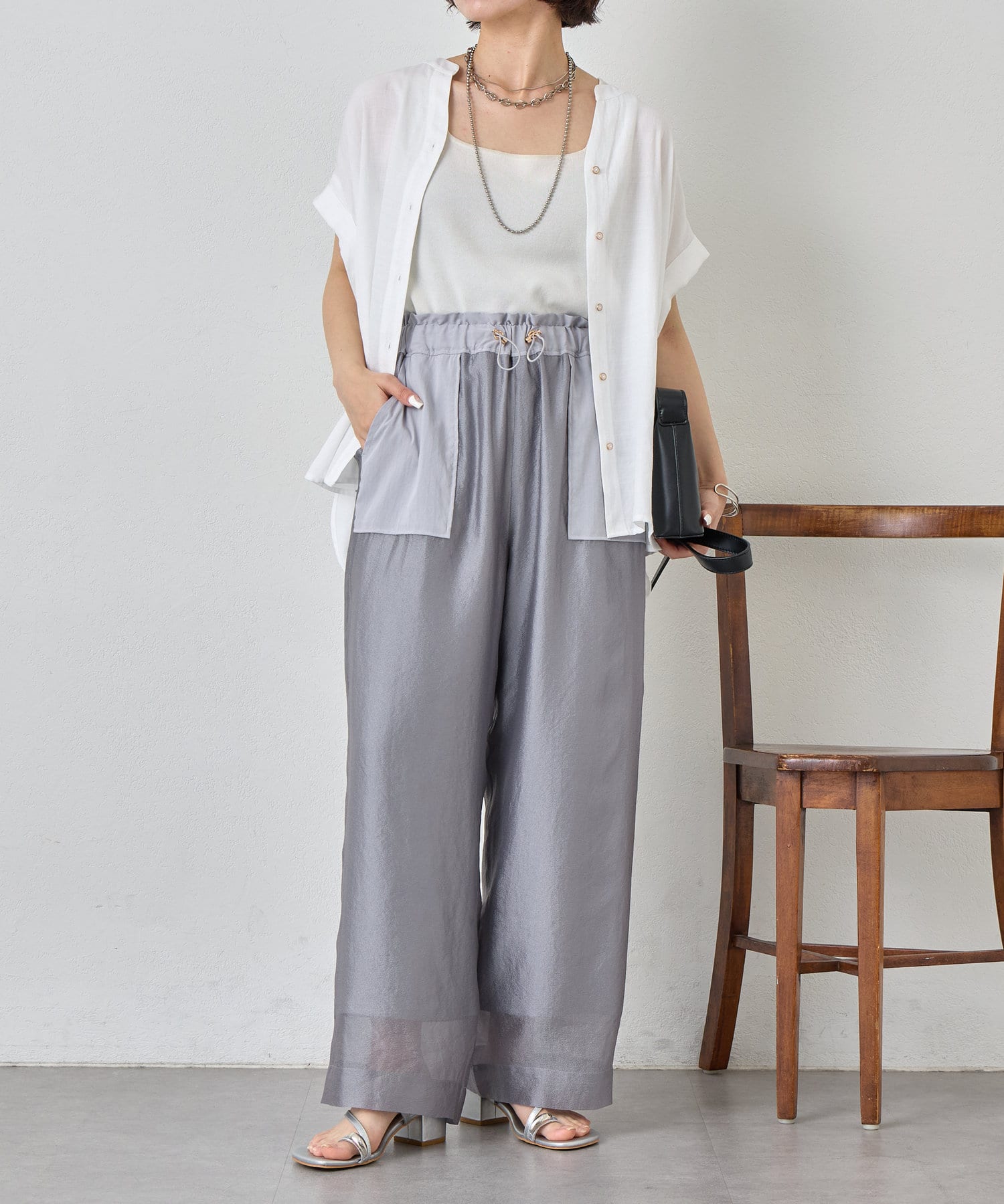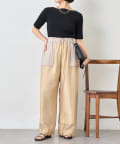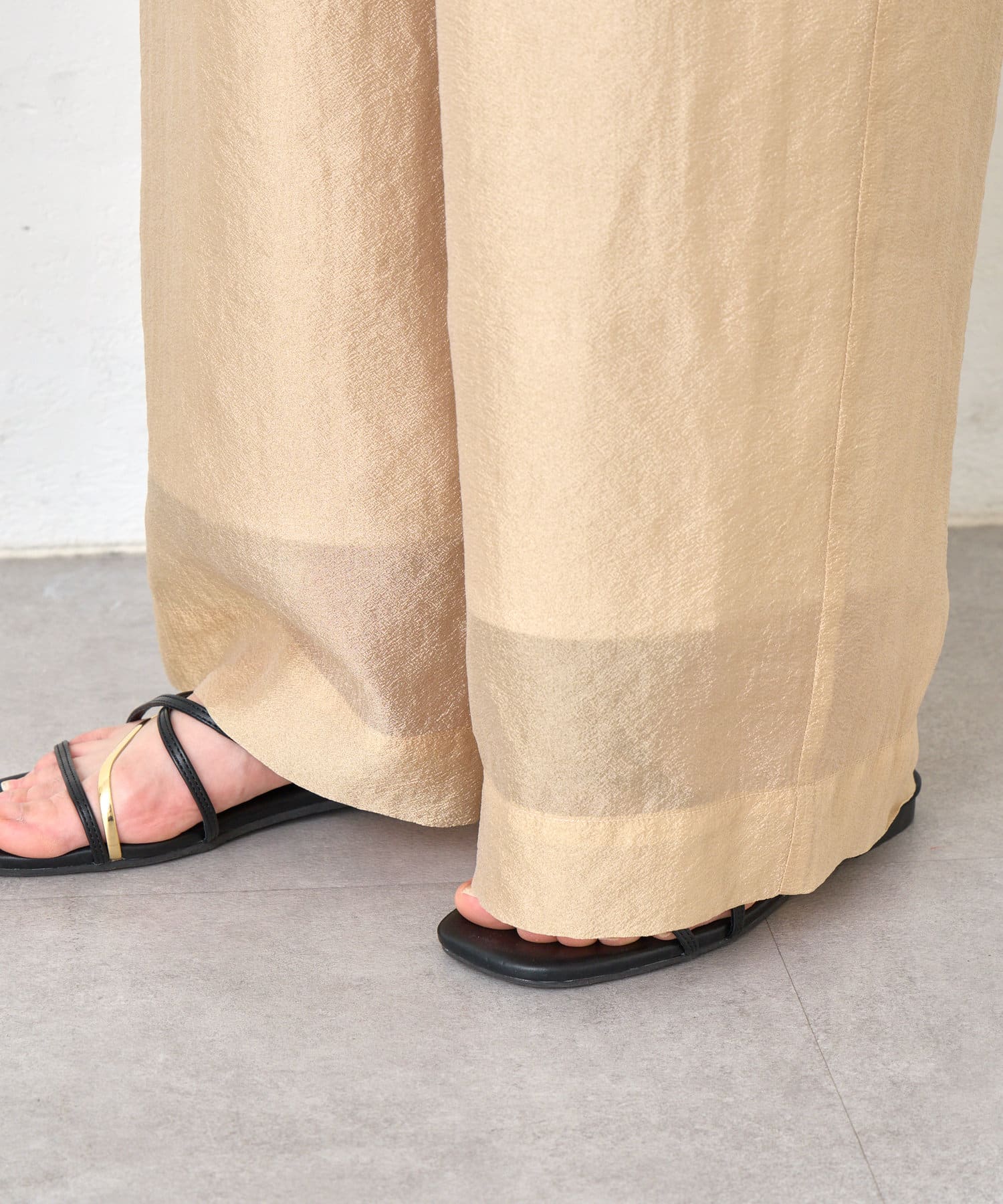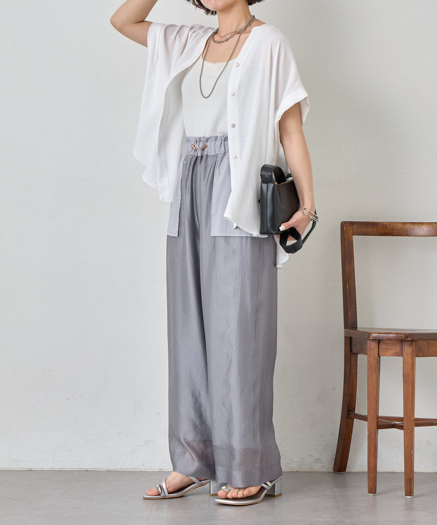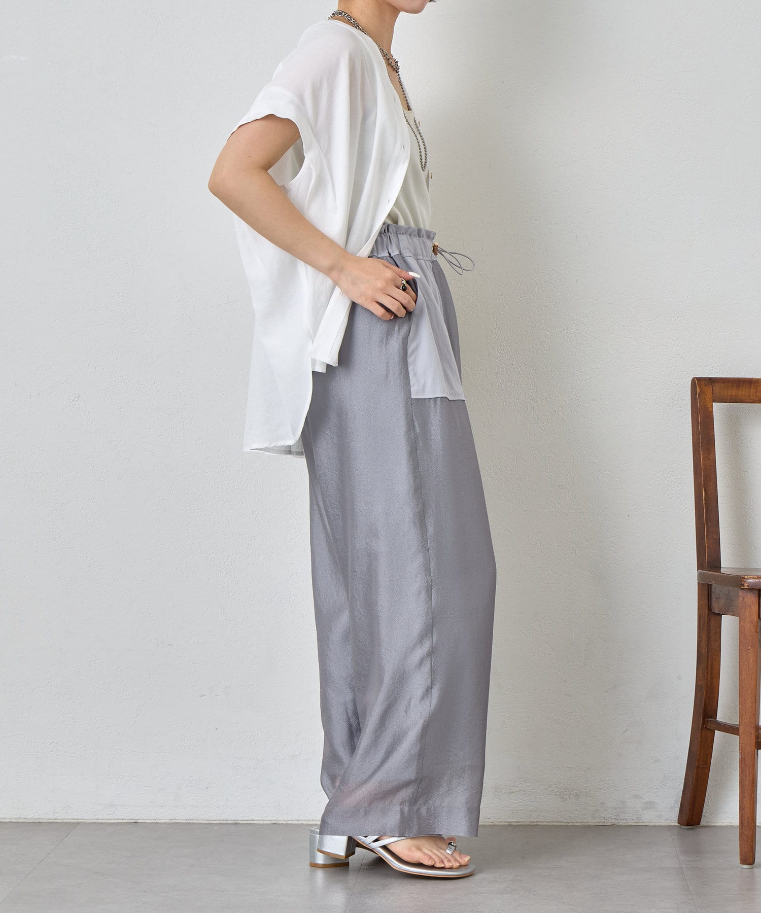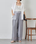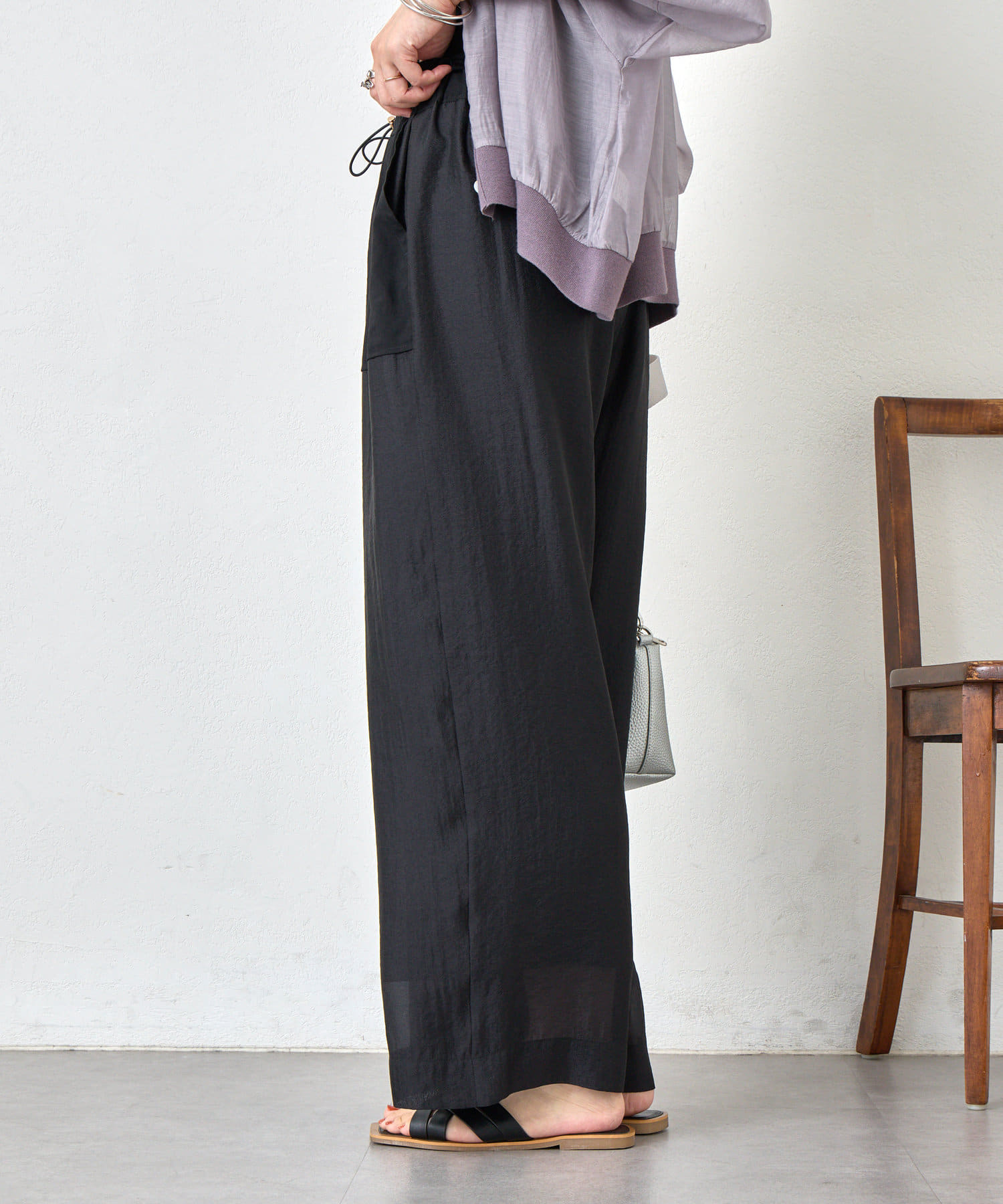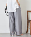・光沢感のある生地とゆったりとしたシルエットで、上品なこなれ感のあるスタイリングを叶えるワイドパンツ。