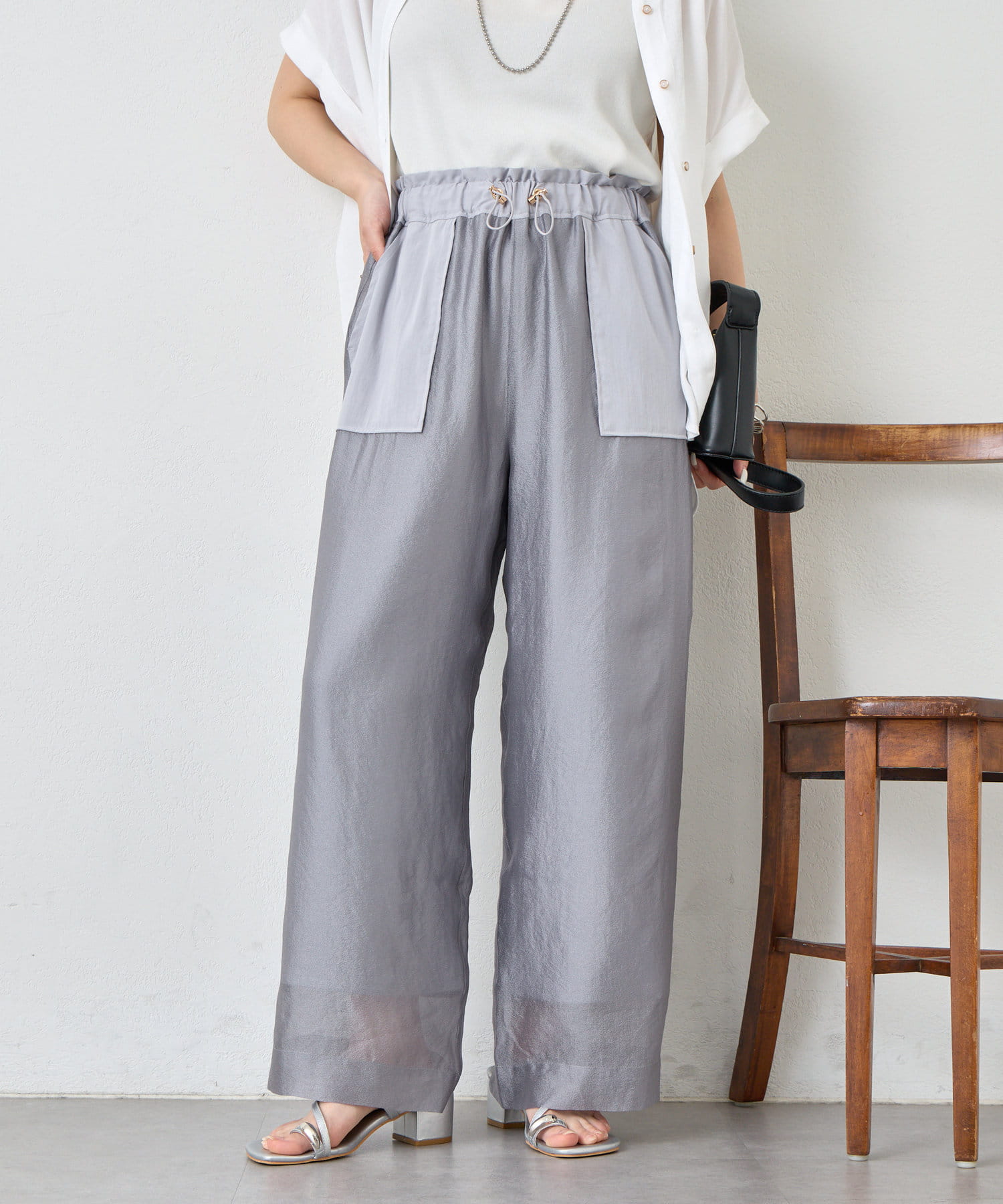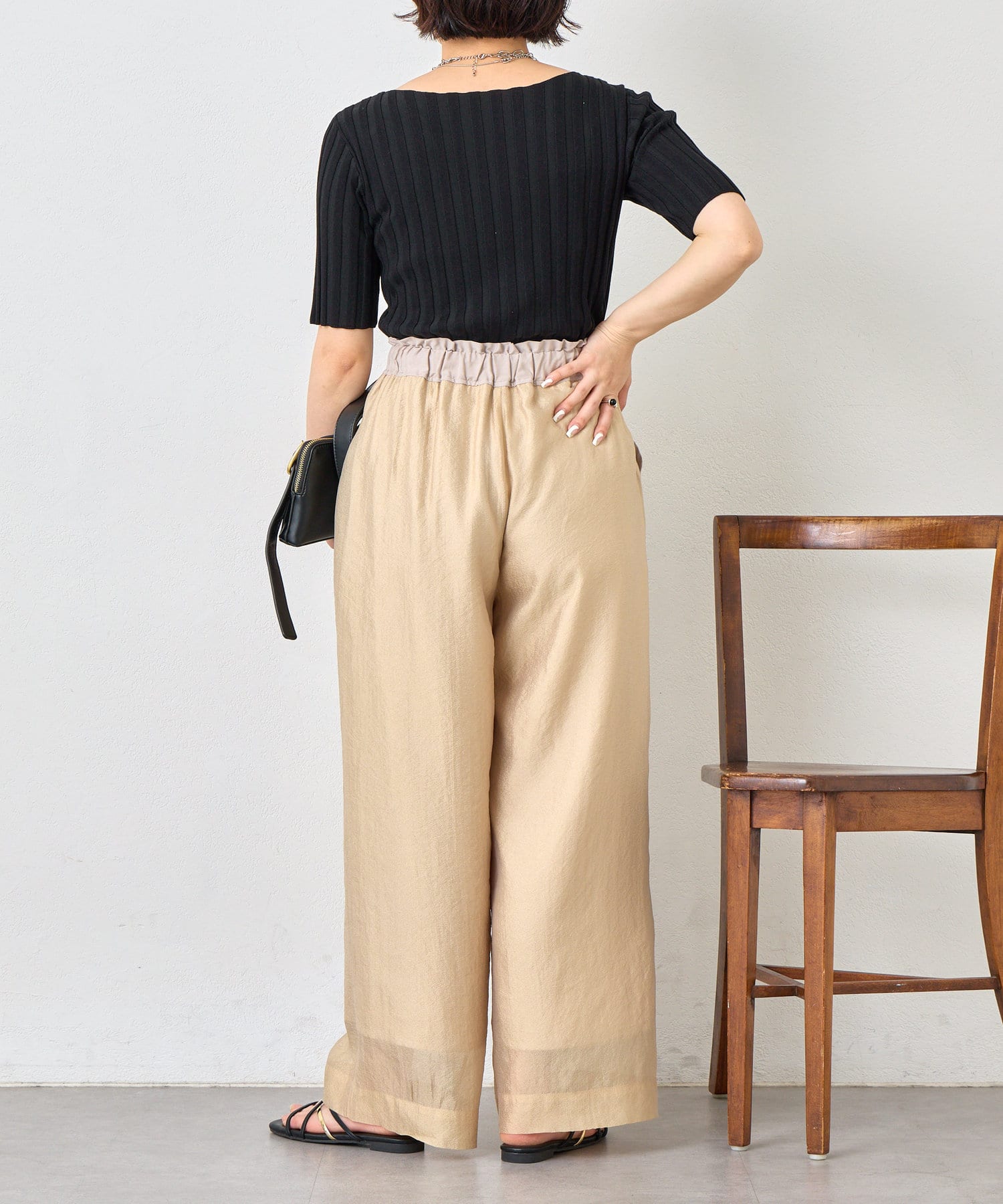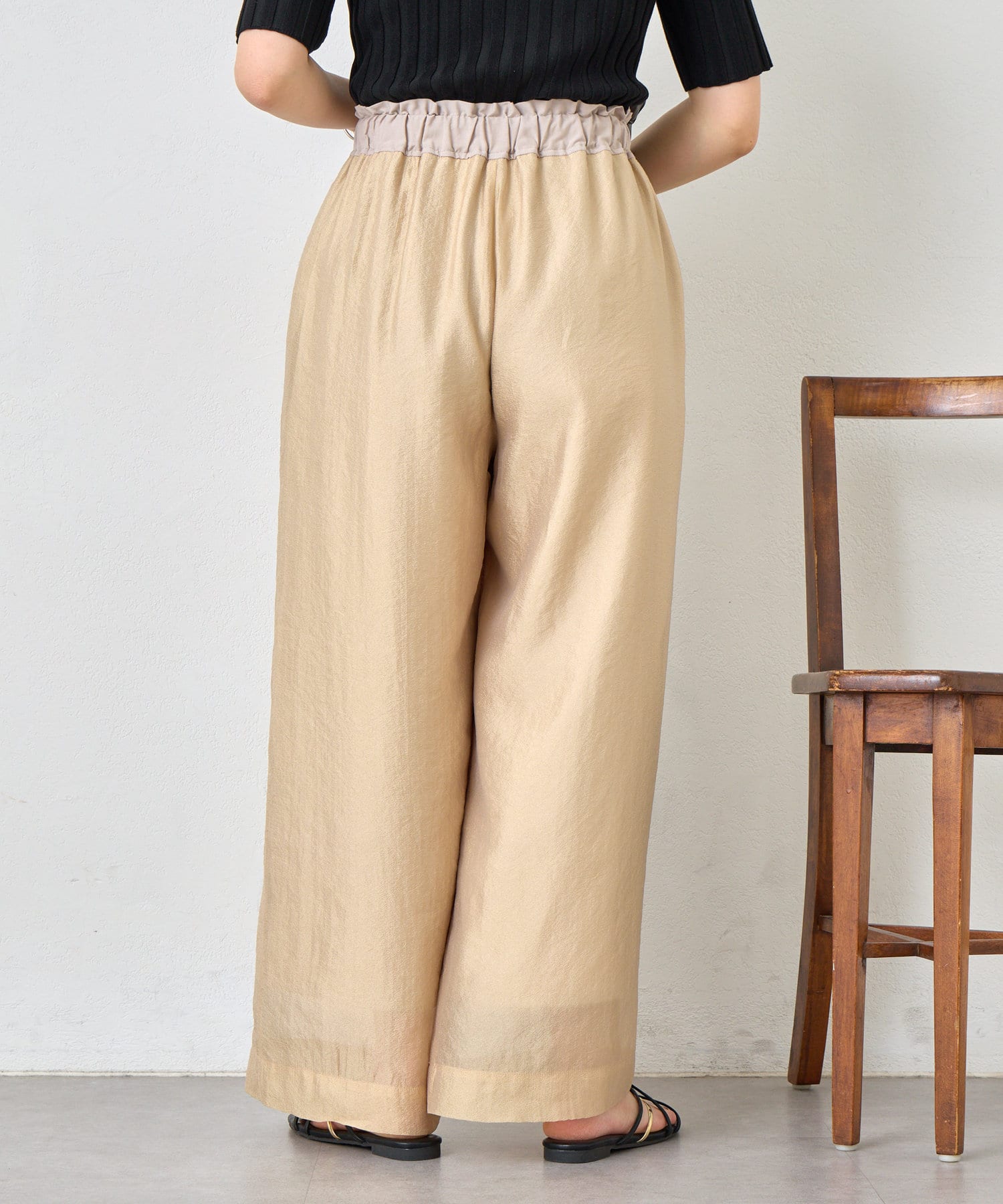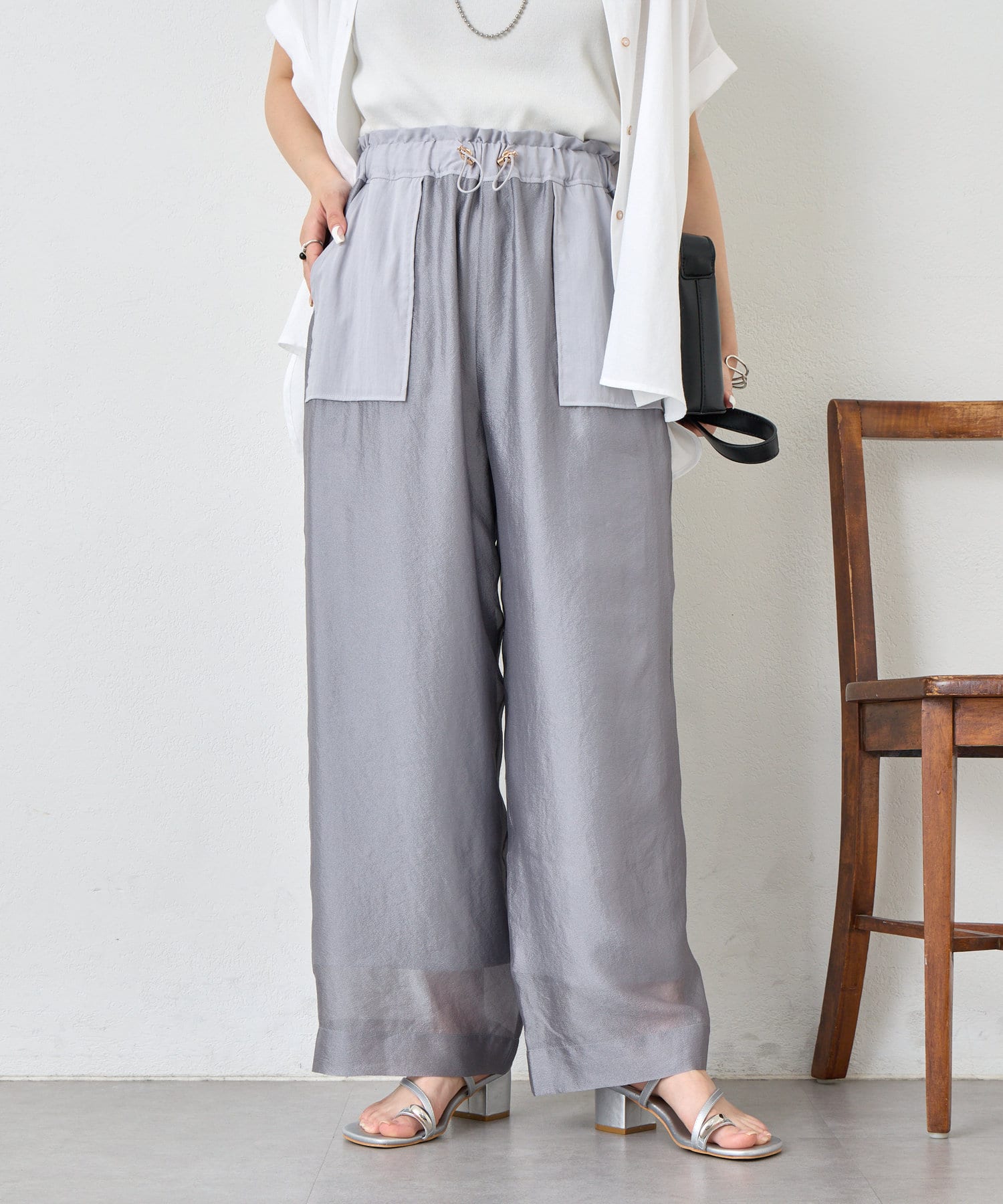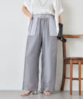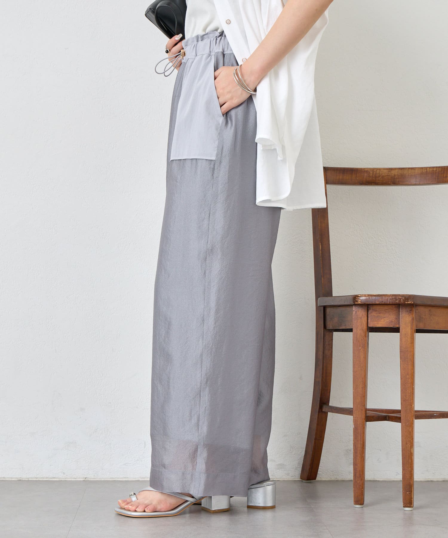 ・光沢感のある生地とゆったりとしたシルエットで、上品なこなれ感のあるスタイリングを叶えるワイドパンツ。