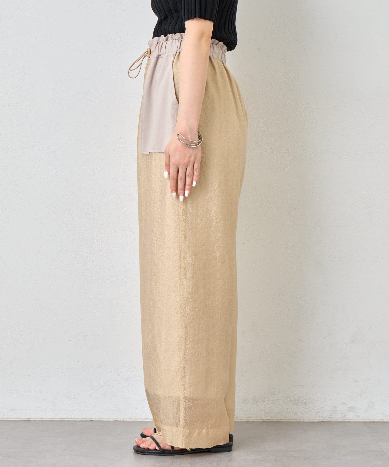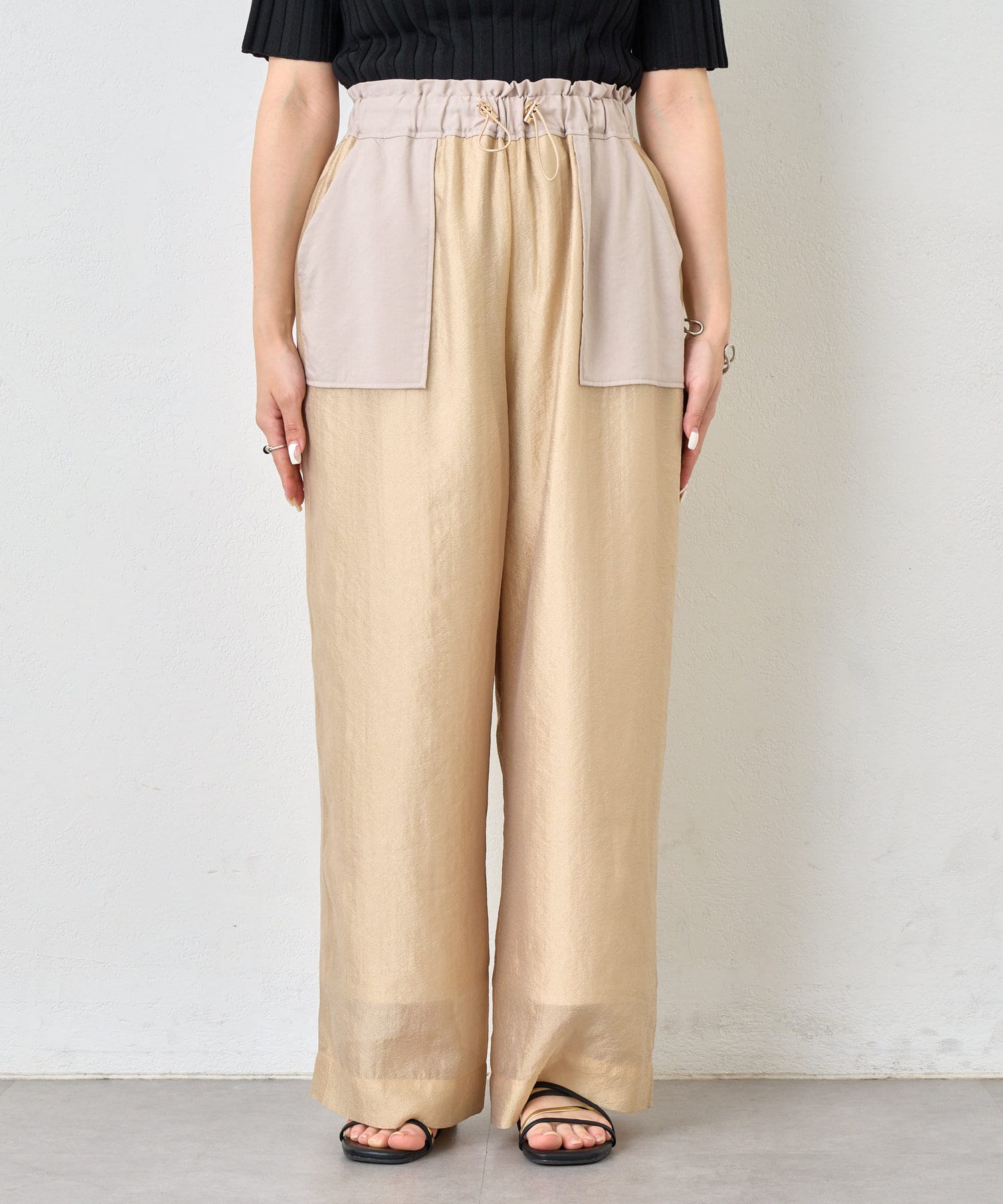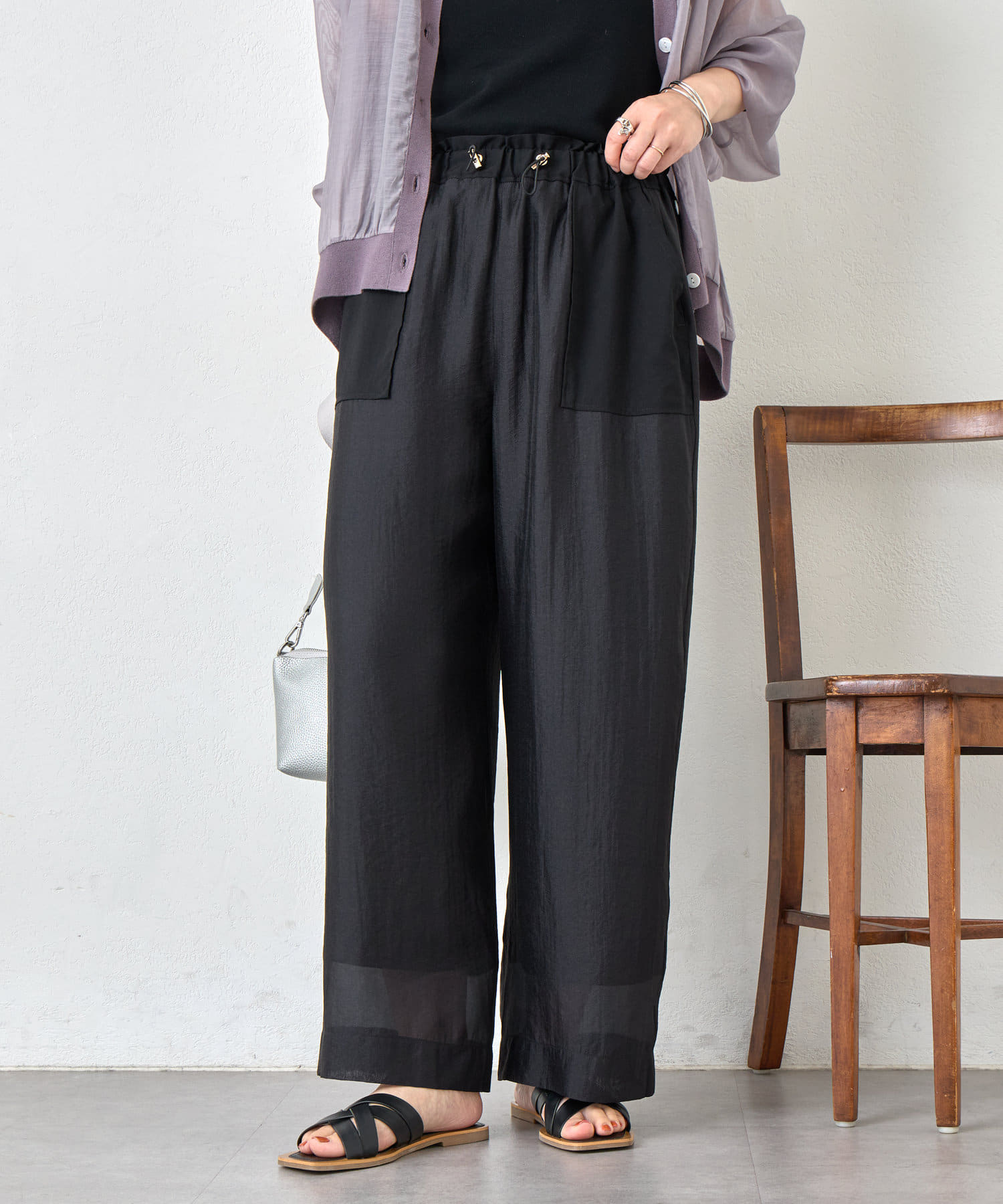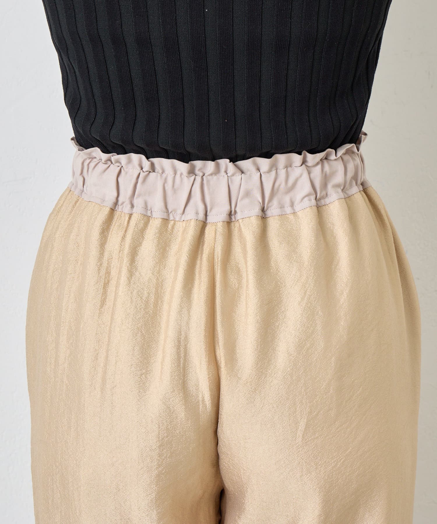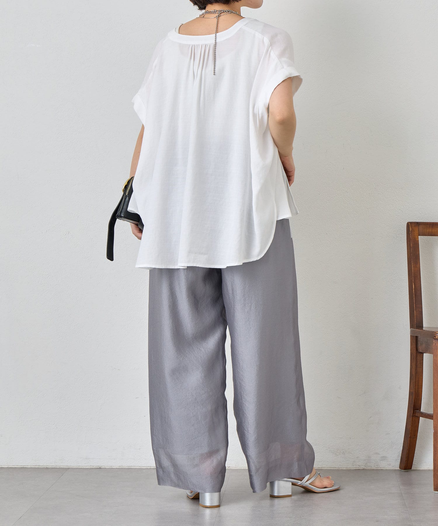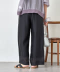 ・光沢感のある生地とゆったりとしたシルエットで、上品なこなれ感のあるスタイリングを叶えるワイドパンツ。